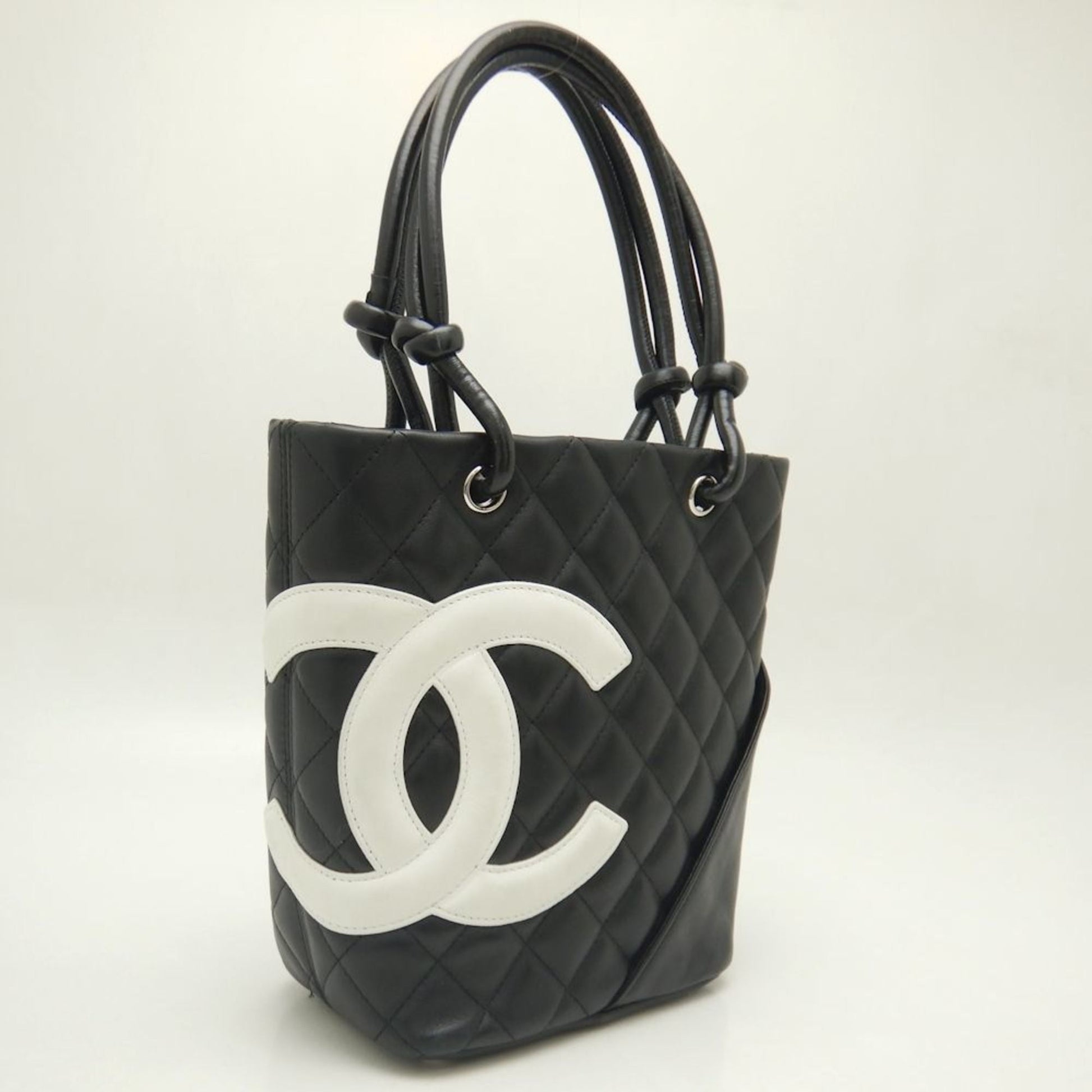 CHANEL Small Tote A25166 Bag Cambon Line Calfskin Black White 251875