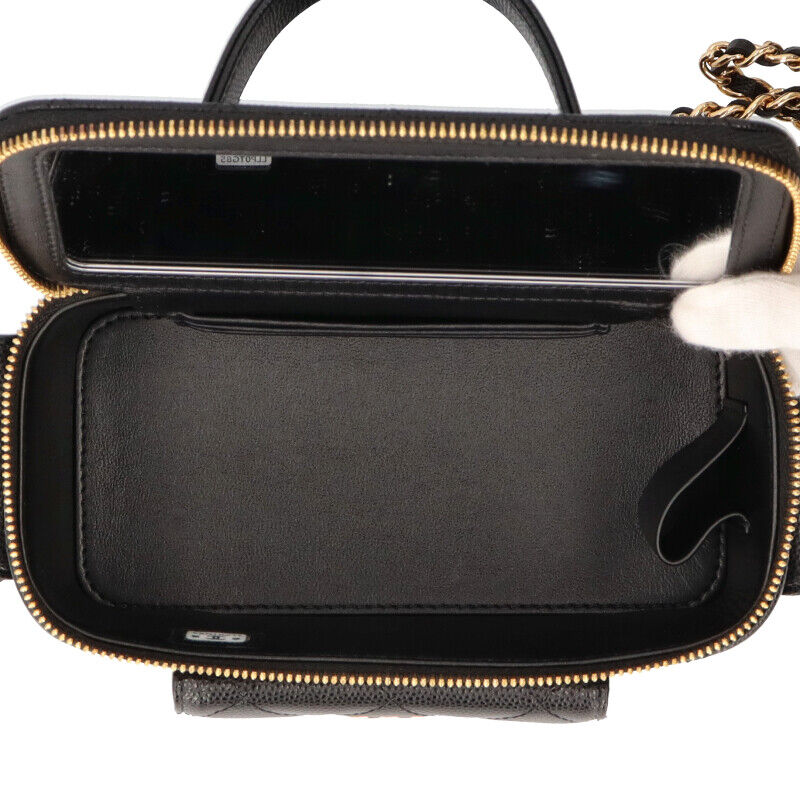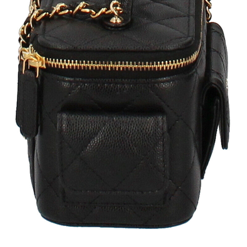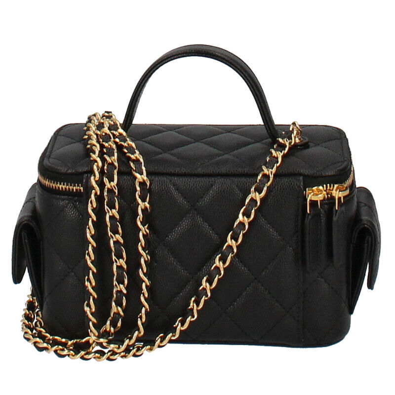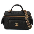 Introducing the iconic Chanel Small Vanity Shoulder Bag in luxurious Caviar skin. This sophisticated accessory is the epitome of timeless elegance, designed for the modern woman on-the-go. Crafted with meticulous attention to detail, the black hue exudes sophistication, making it a versatile piece for any outfit or occasion.
