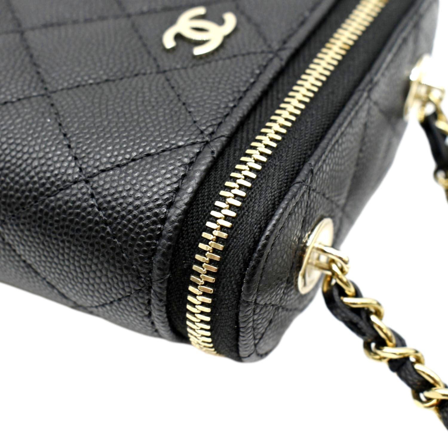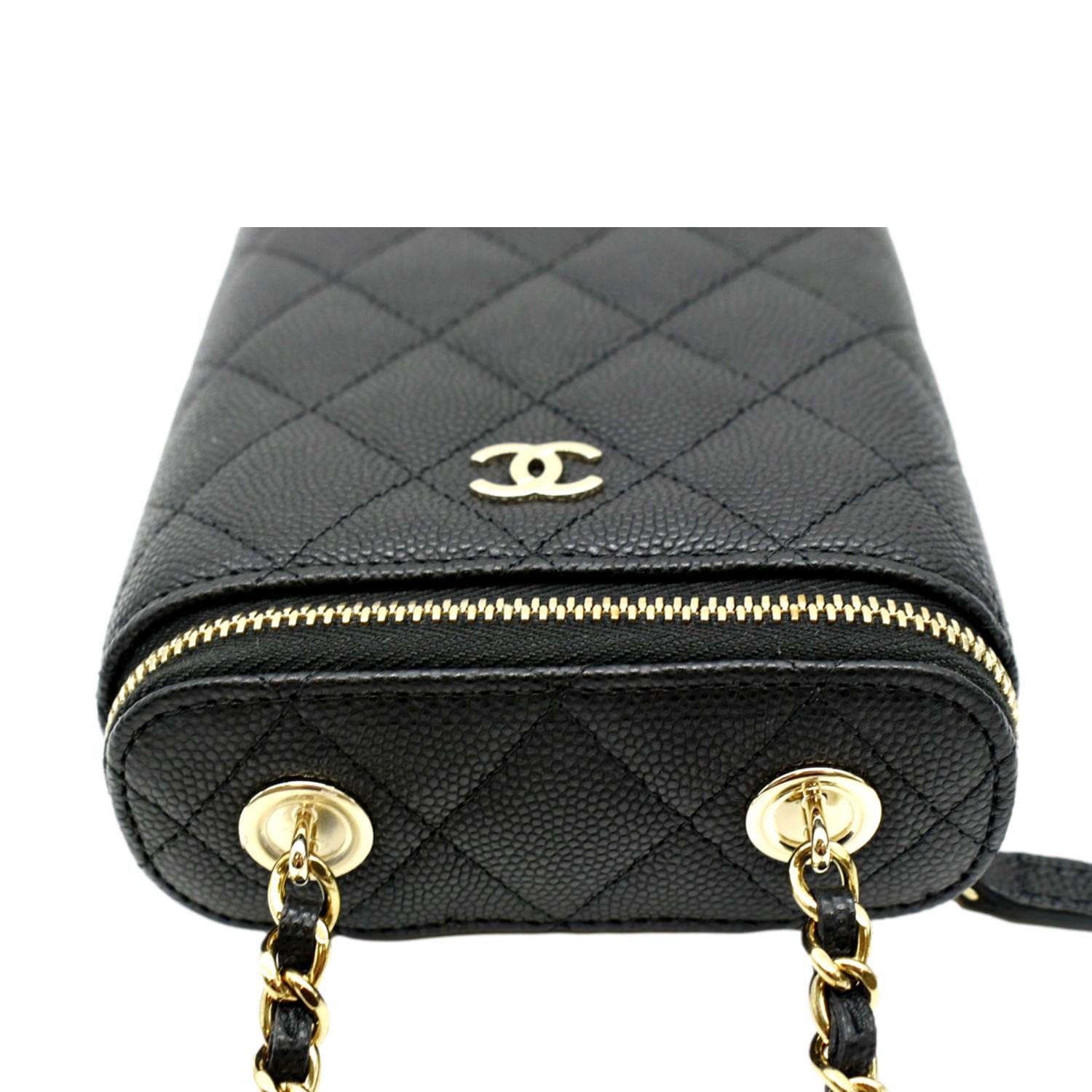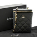 CHANEL Small Vertical Caviar Quilted Leather Chain Vanity Case Crossbody Black