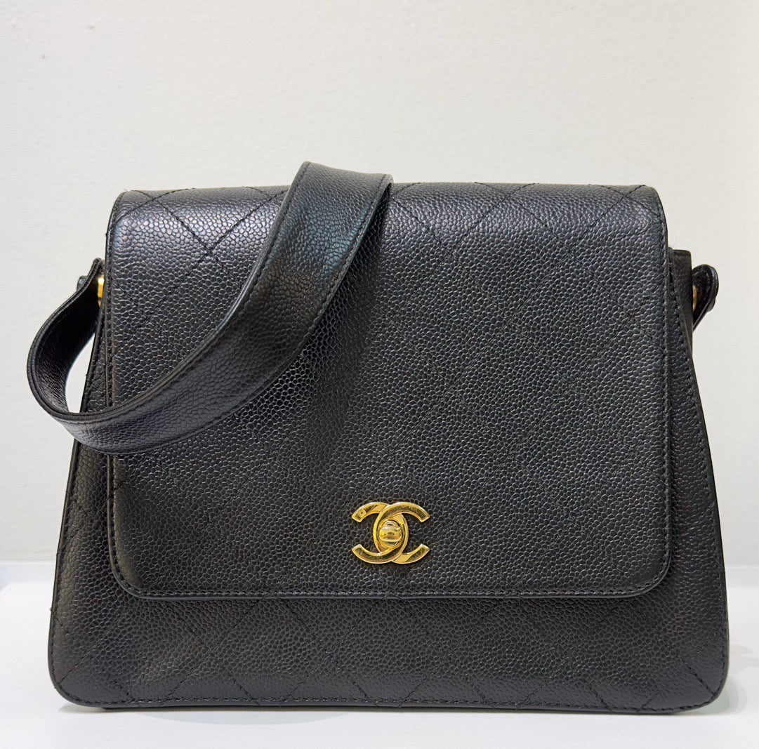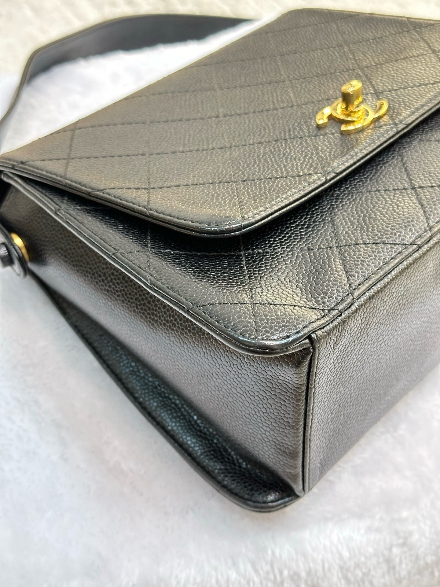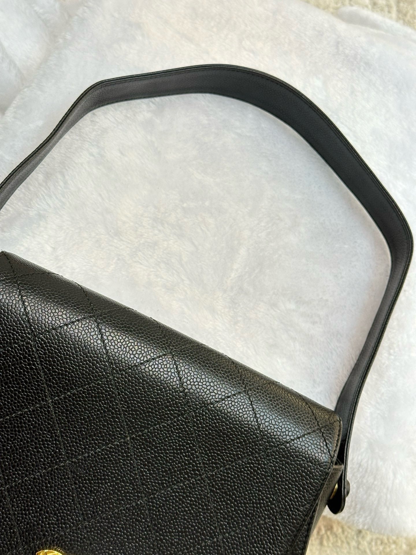 Chanel Small Vintage CC Stitched Caviar Flap Shoulder Bag
