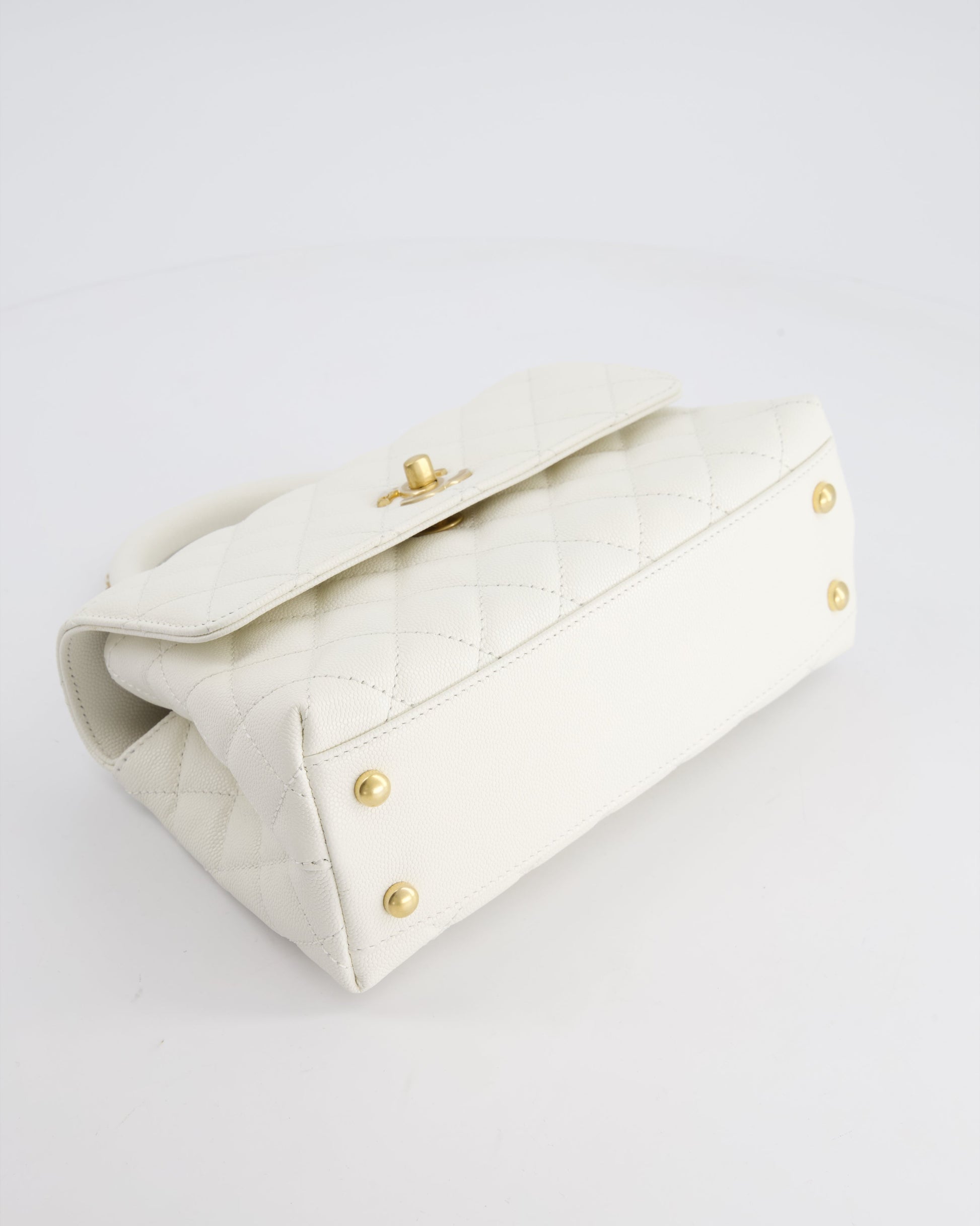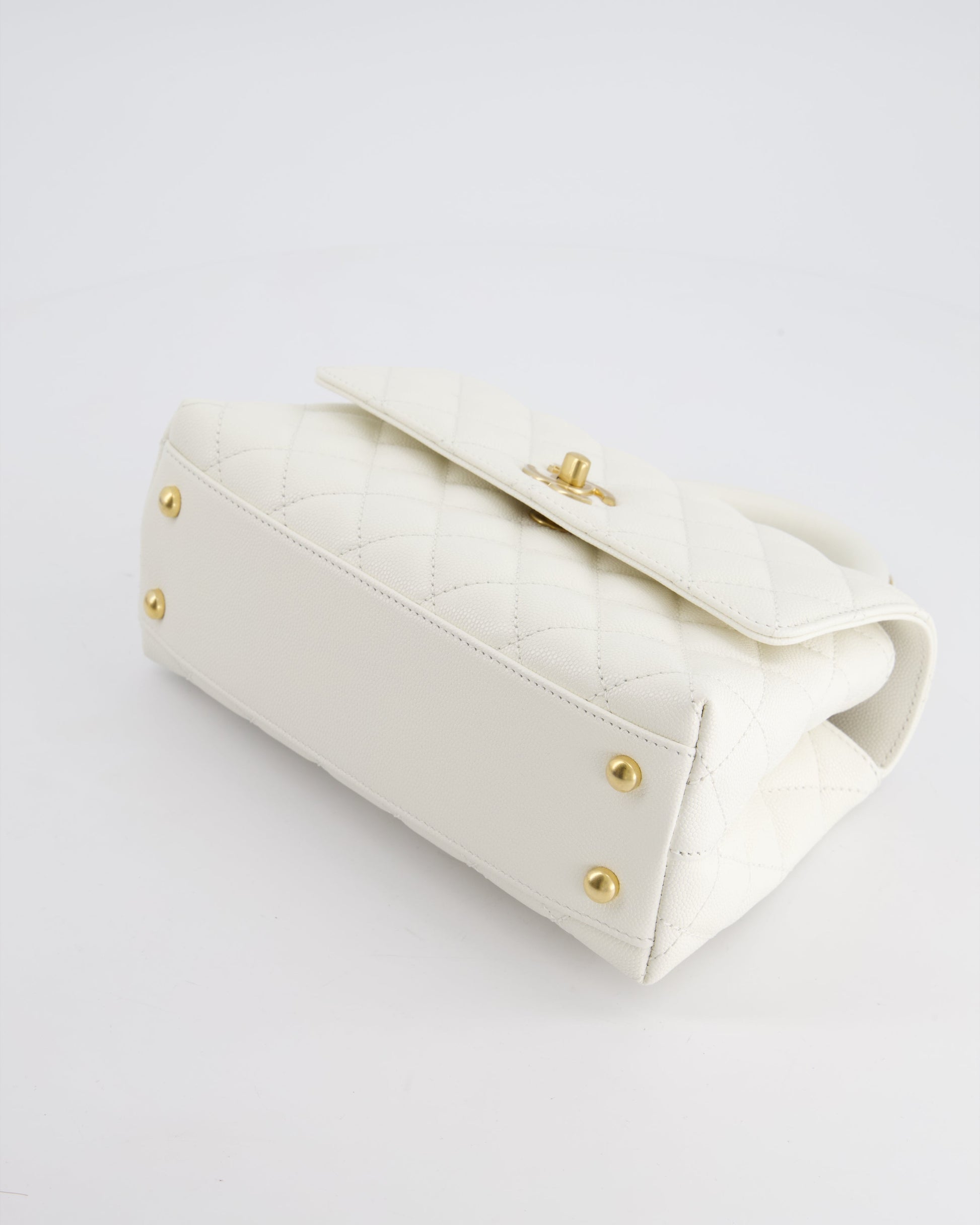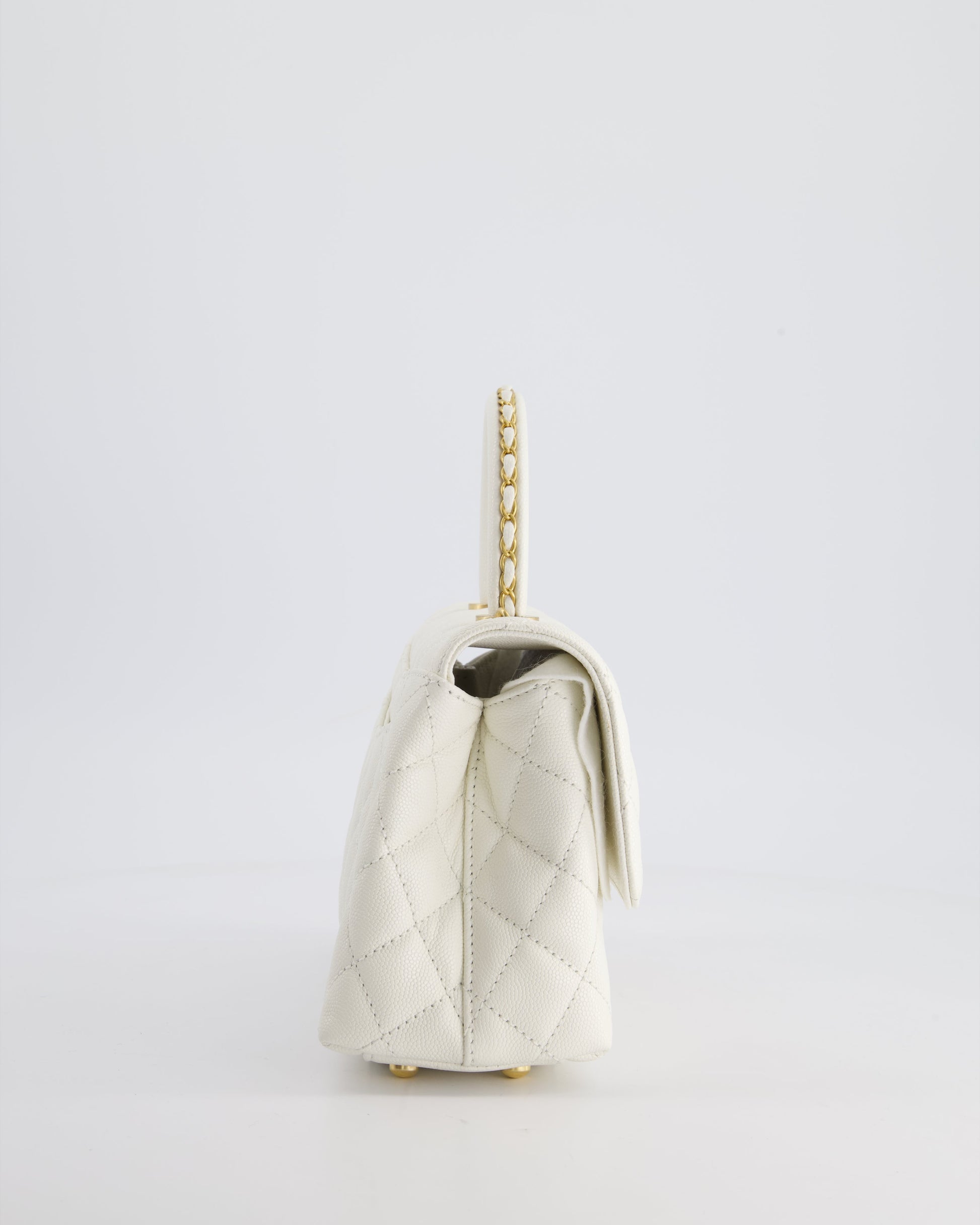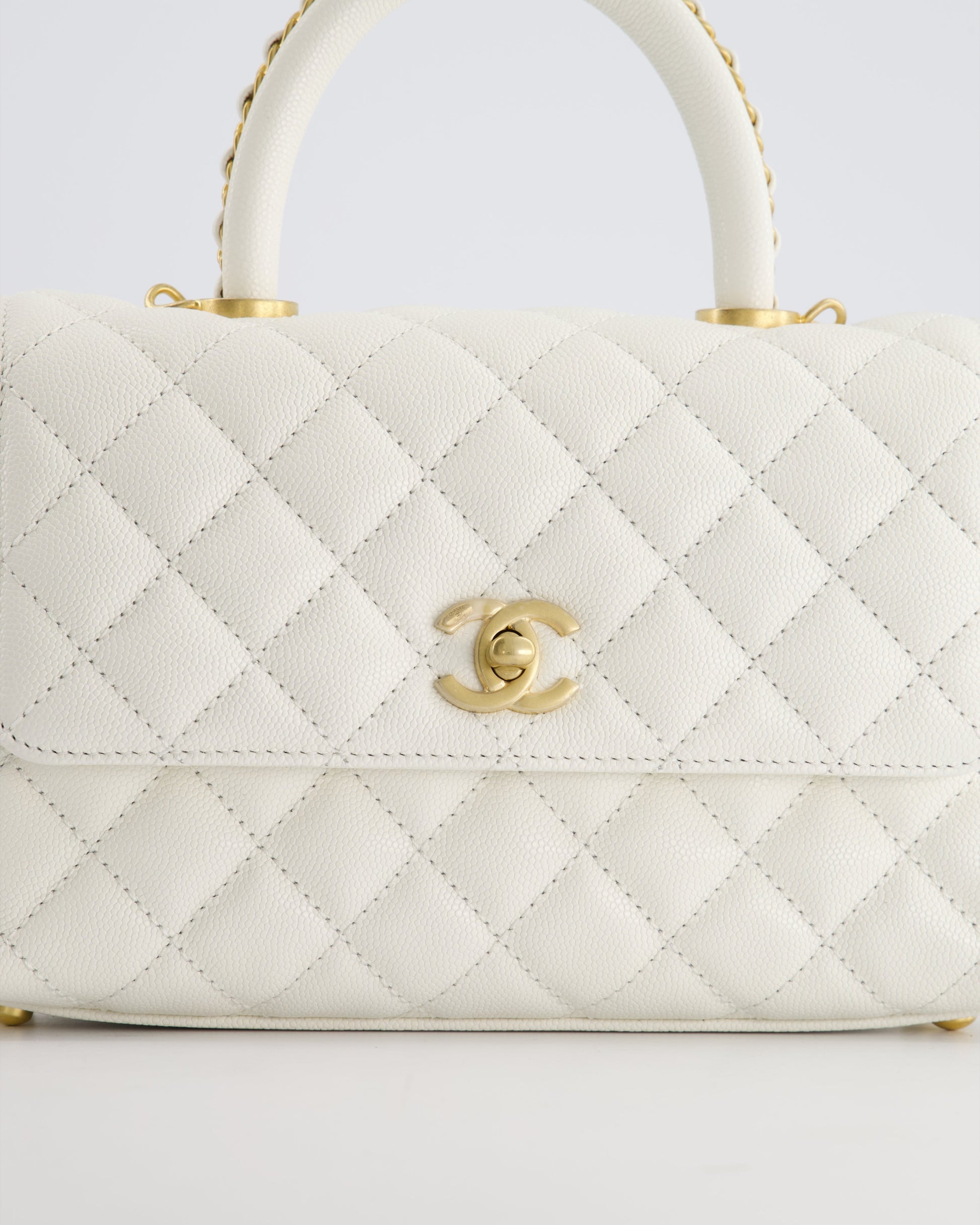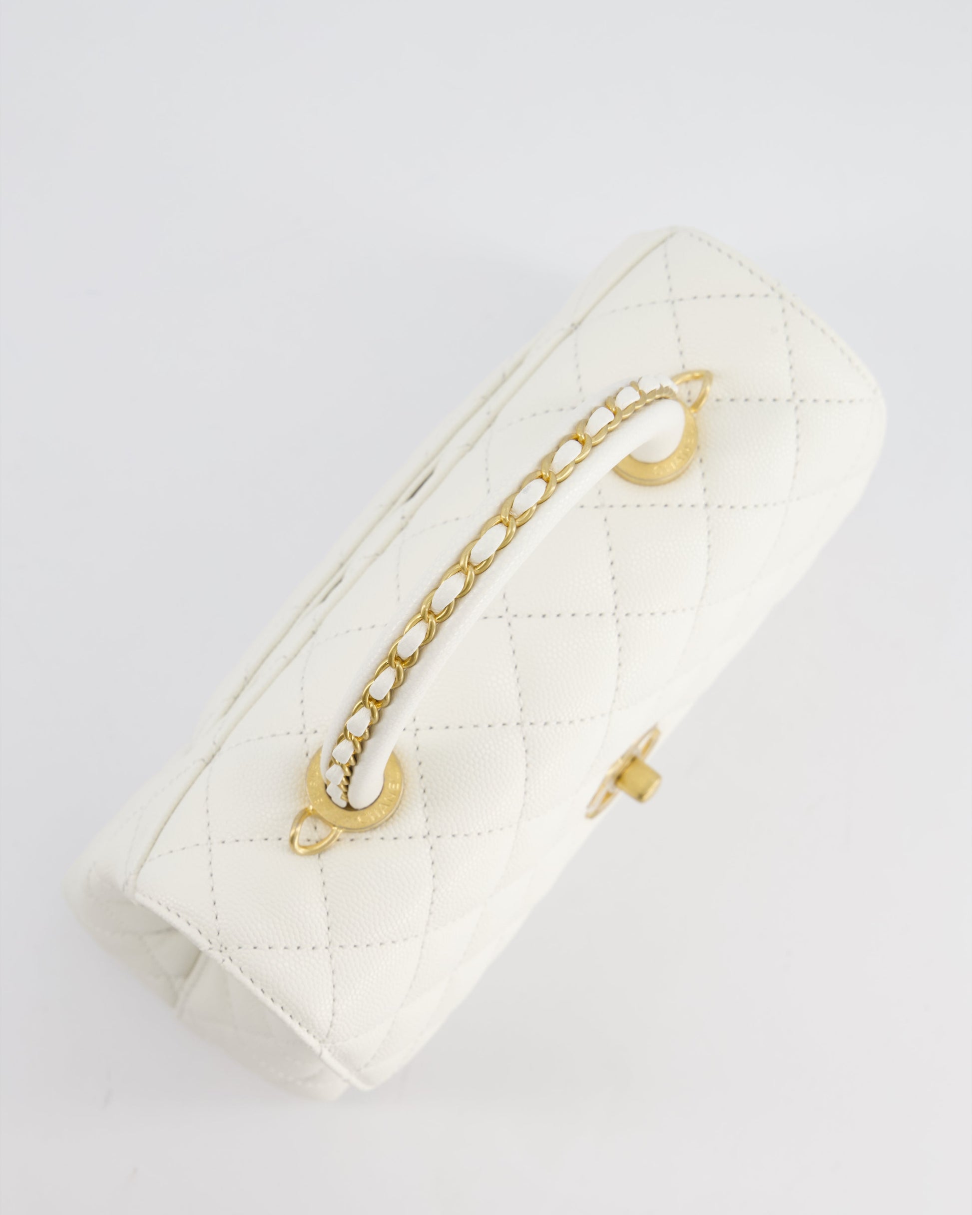 Chanel Small White Caviar Quilted Coco Flap Bag with Brushed Gold Hardware and Chain Detail Handle