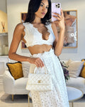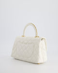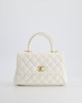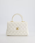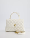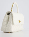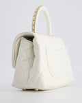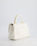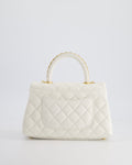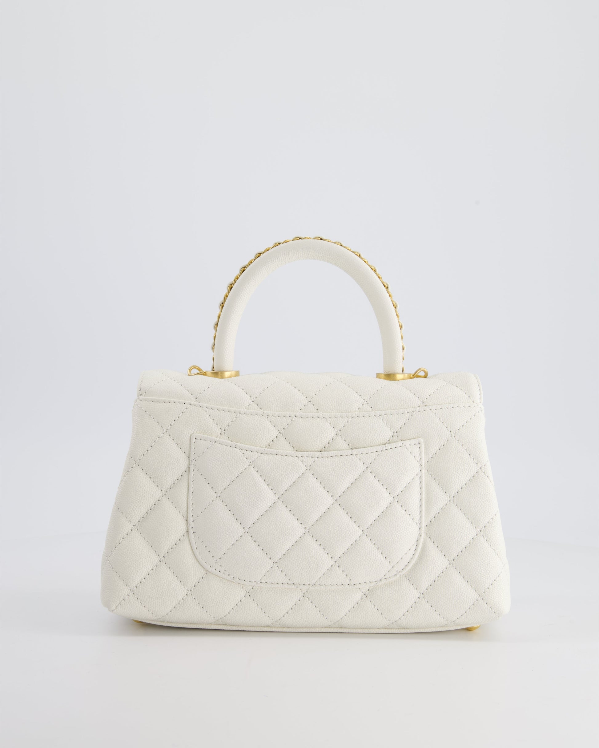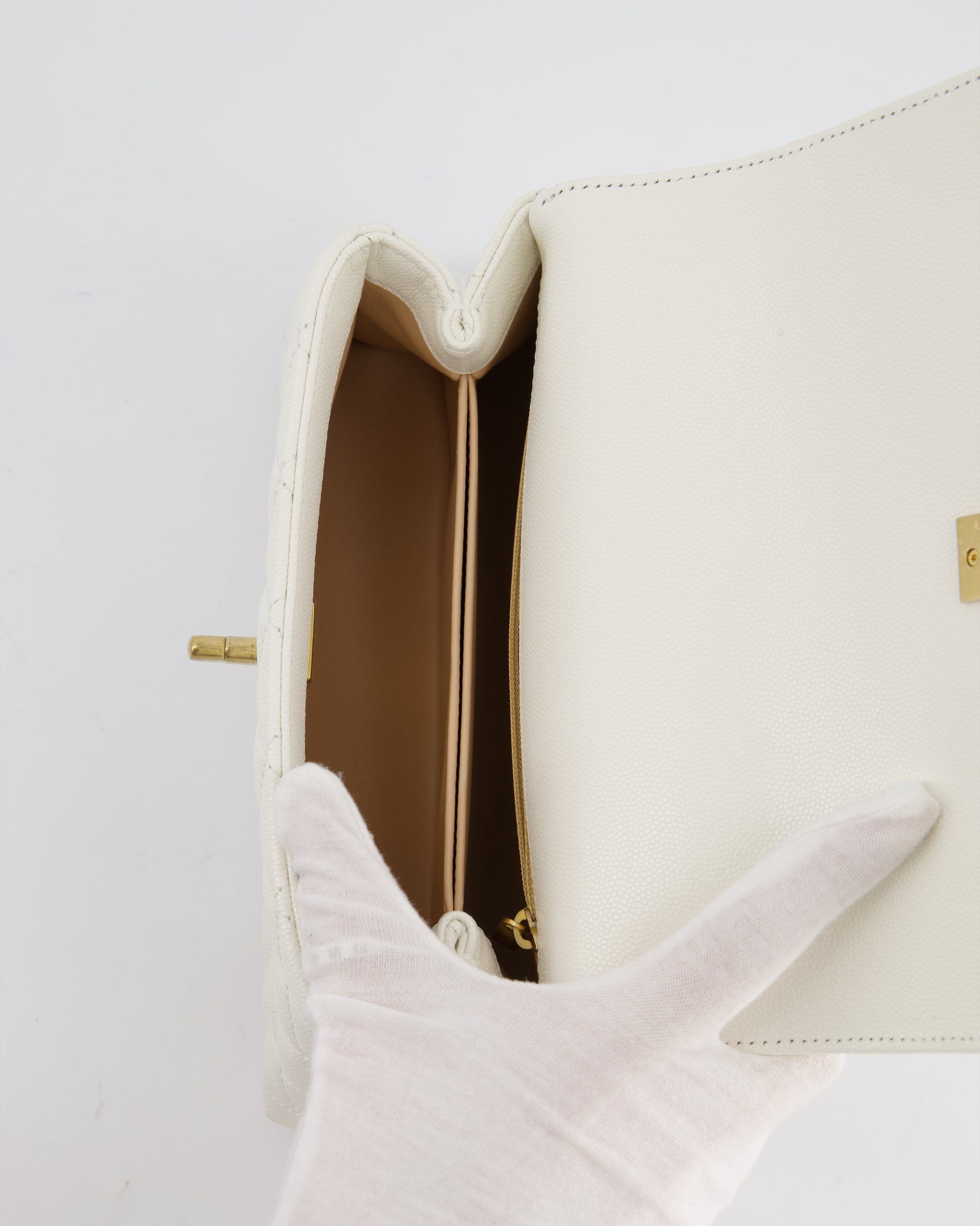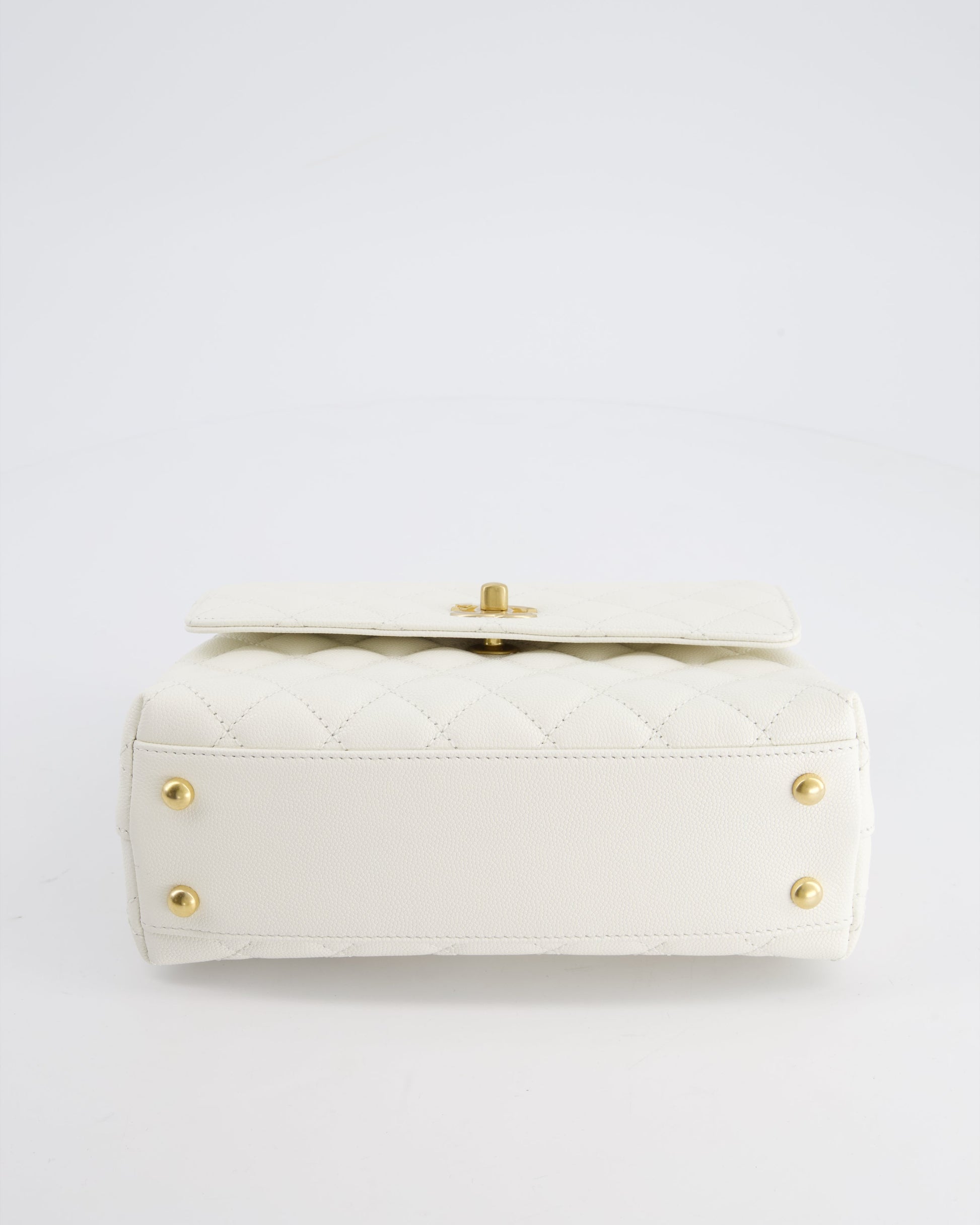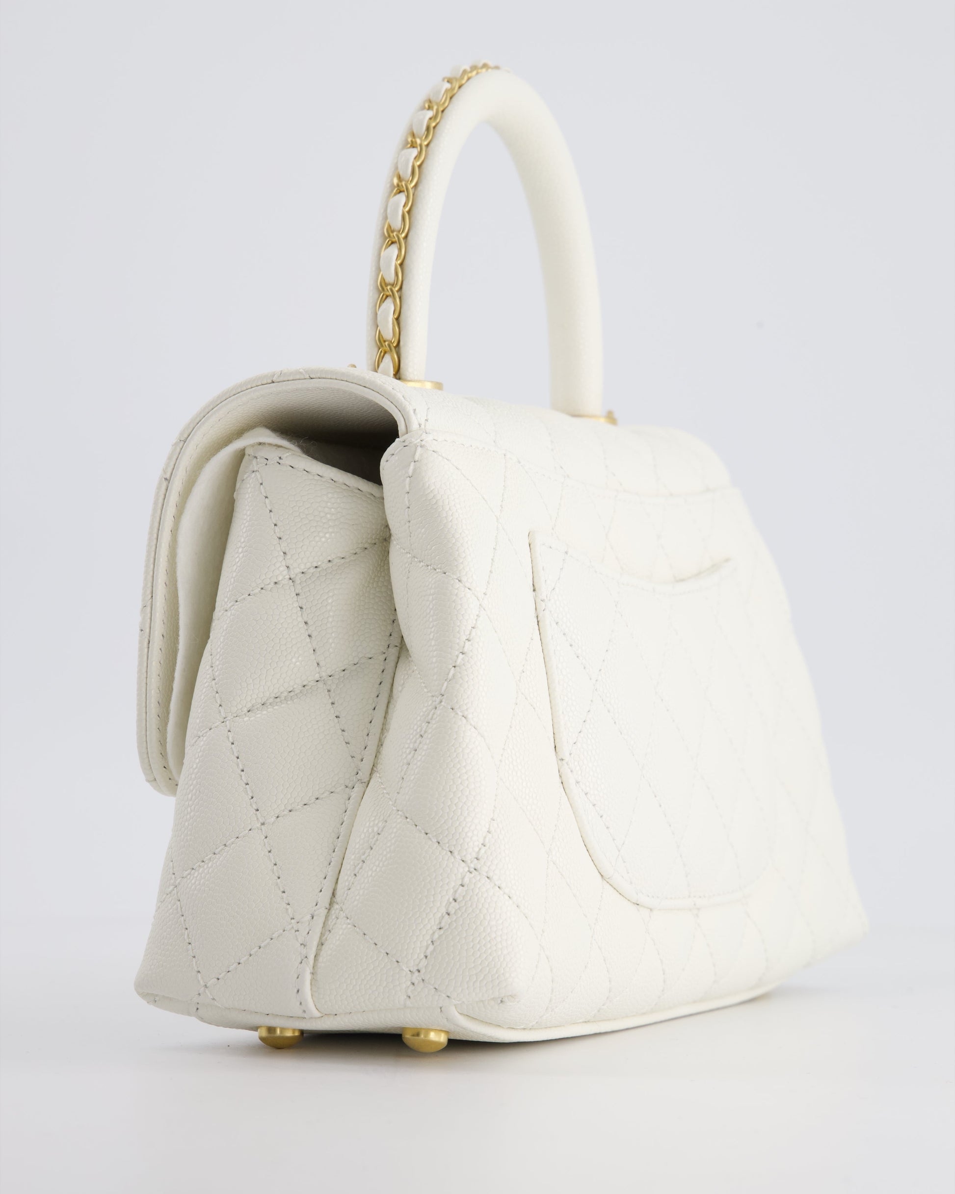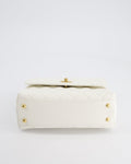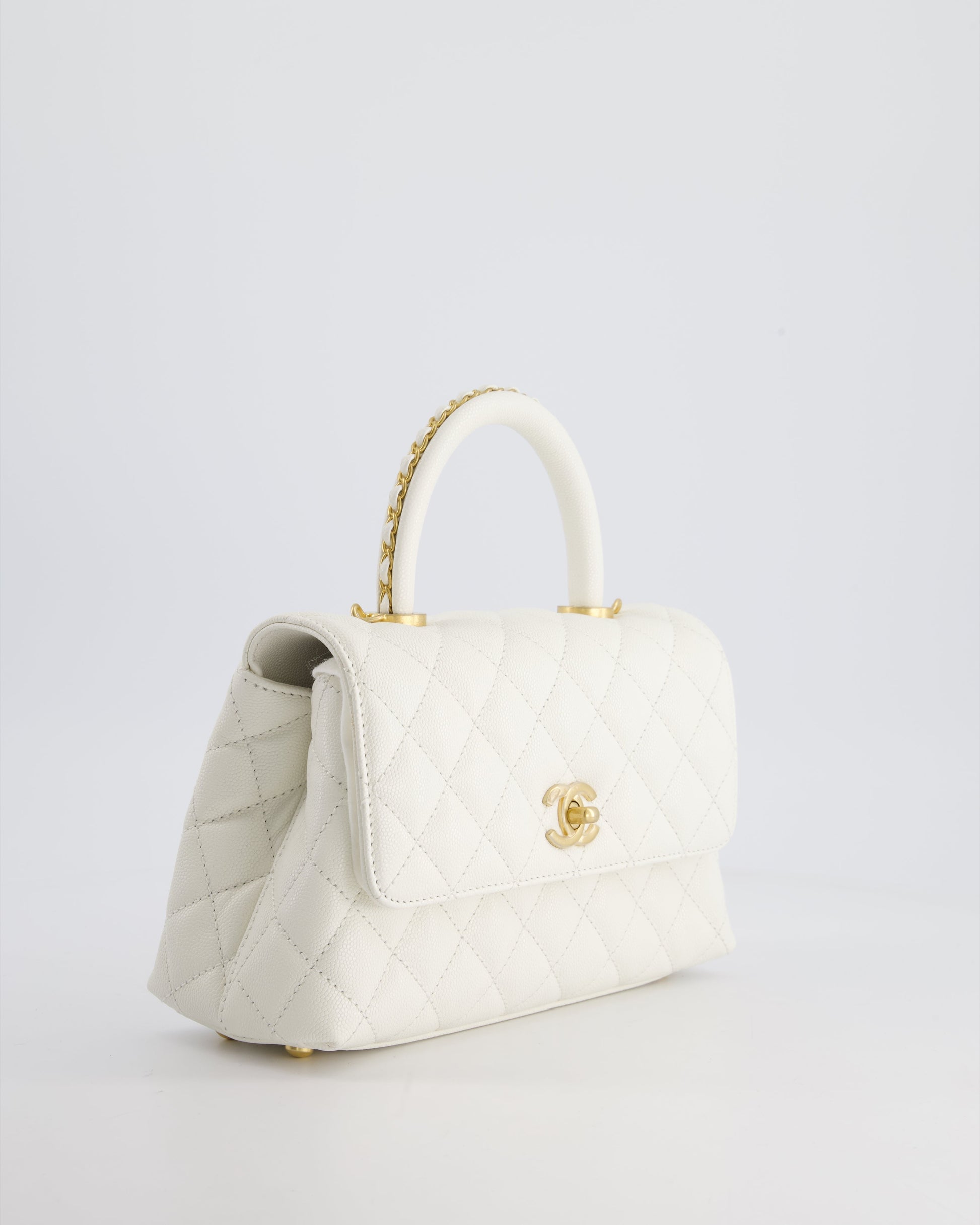 Chanel Small White Caviar Quilted Coco Flap Bag with Brushed Gold Hardware and Chain Detail Handle