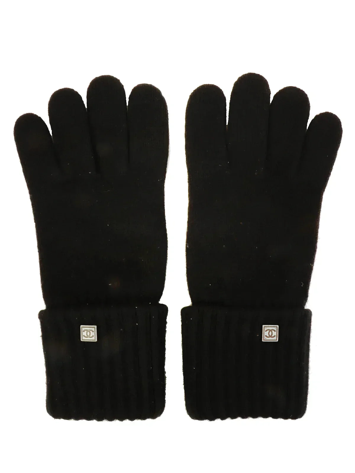 CHANEL Sport Line Cashmere Cc Mark Plate Gloves Black