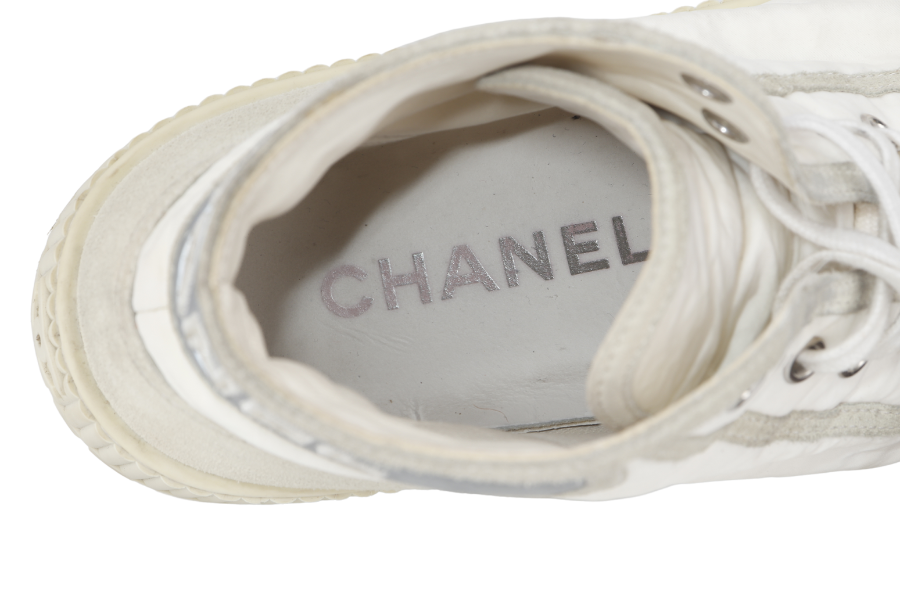 CHANEL SPORTS STREET STYLE HANDMADE LOGO SNEAKERS WHITE SIZE 41 WITH DUST COVER
