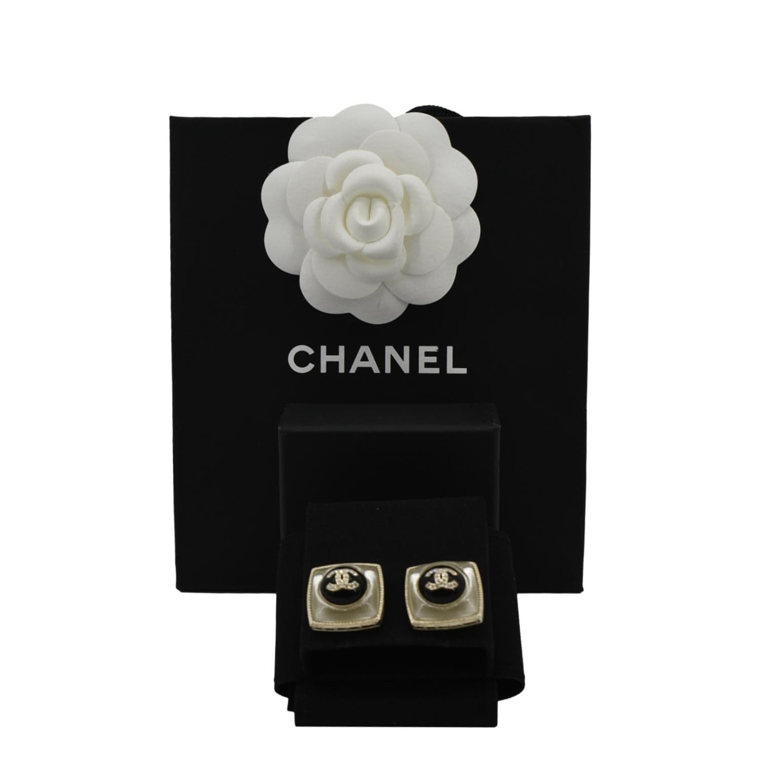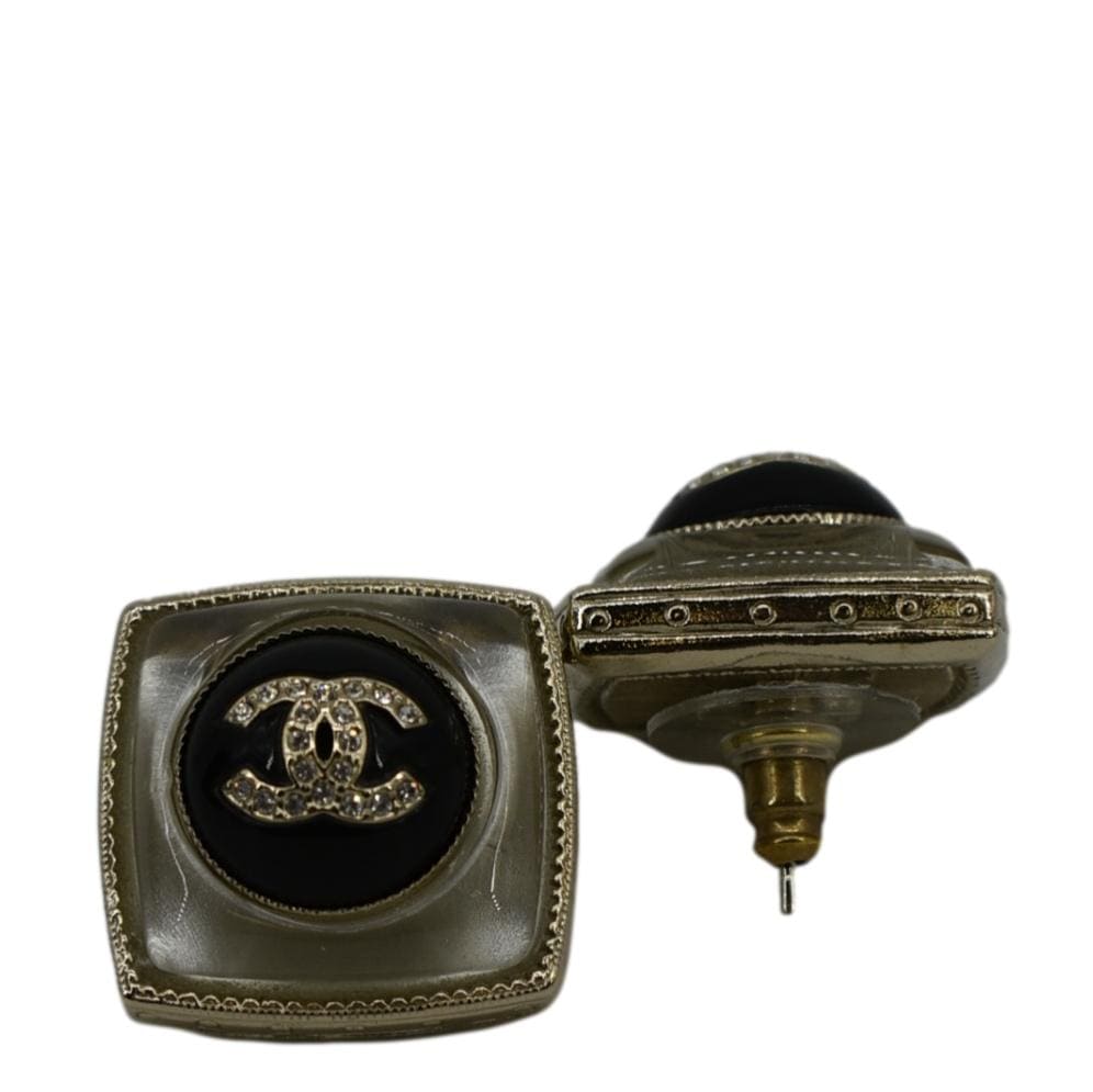 CHANEL Square Clip-on Metal Glass Pearl Strass Earrings Black