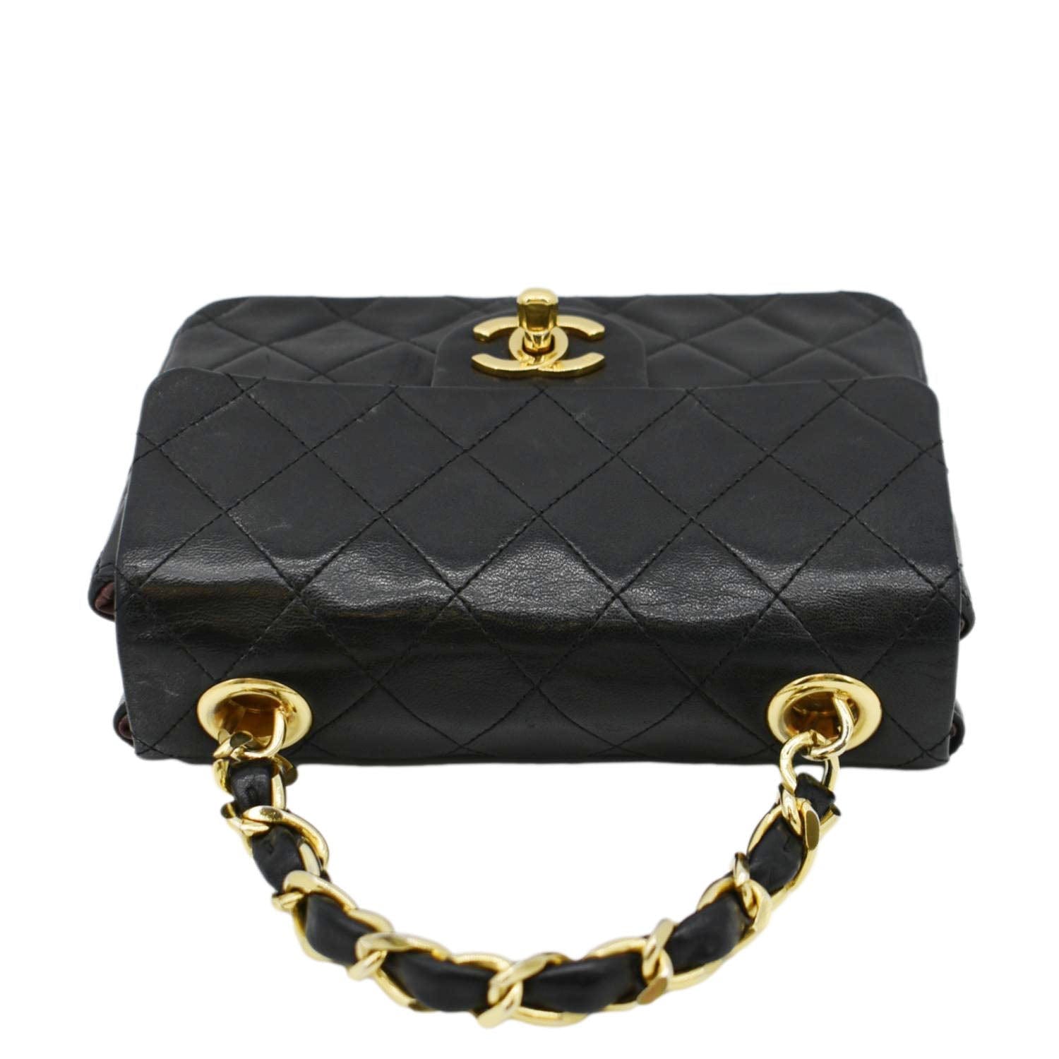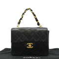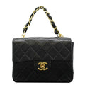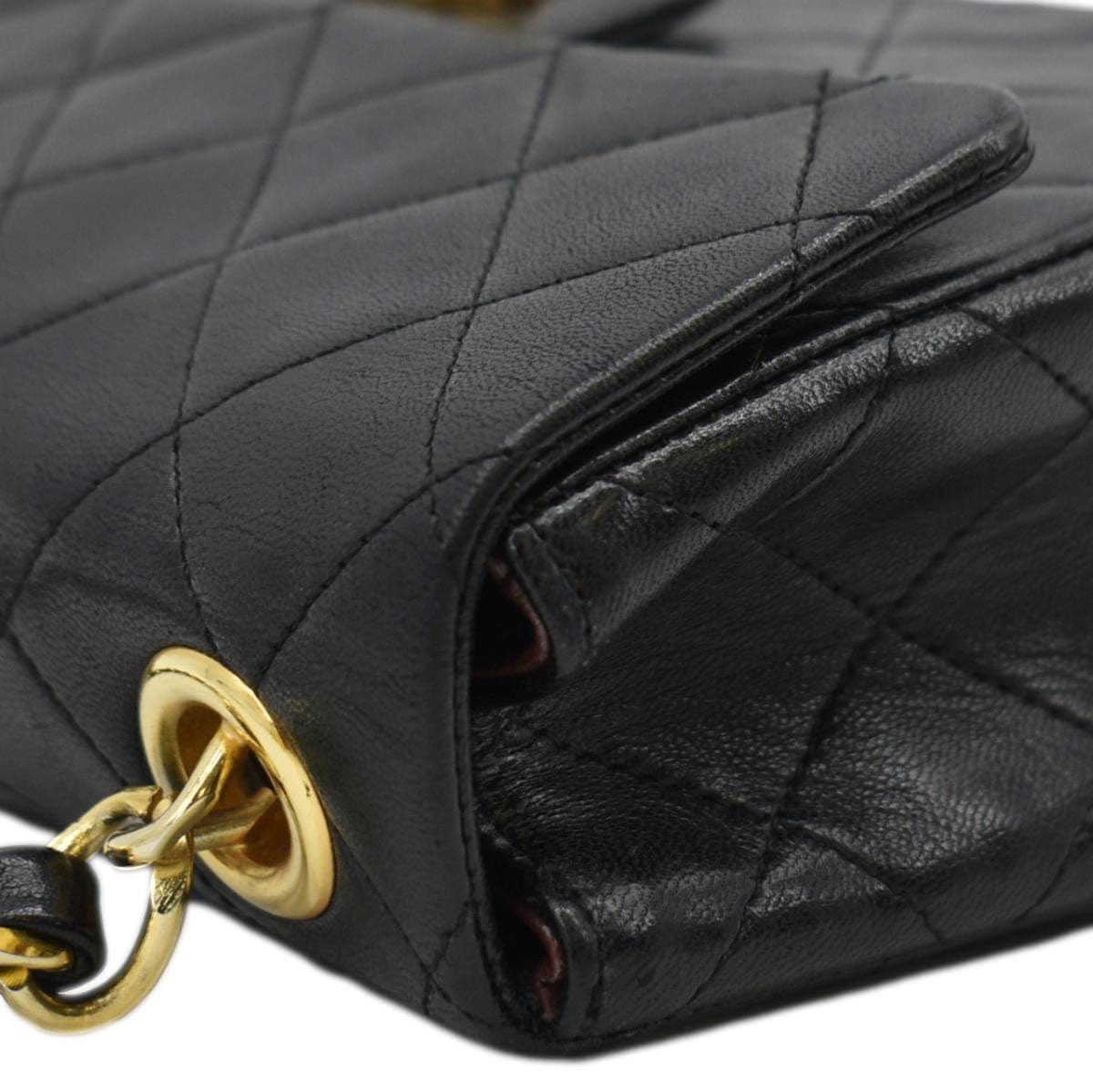 CHANEL Quilted Leather Square Mini Flap Shoulder Bag Black