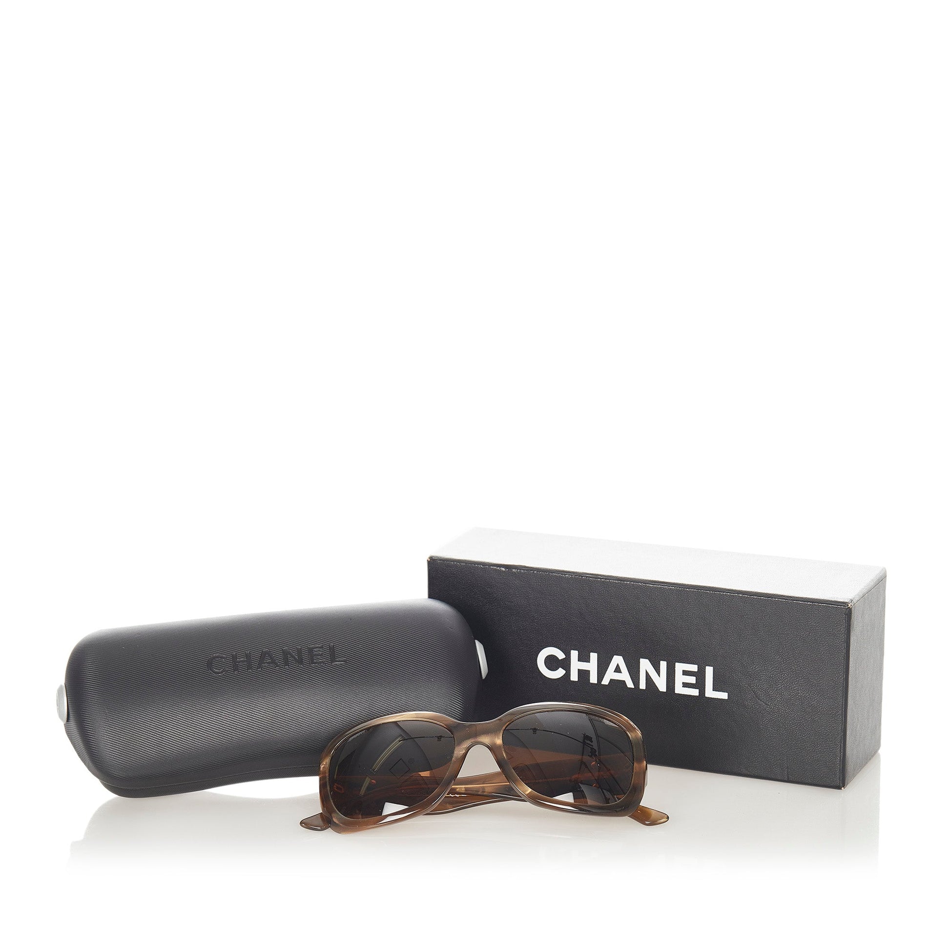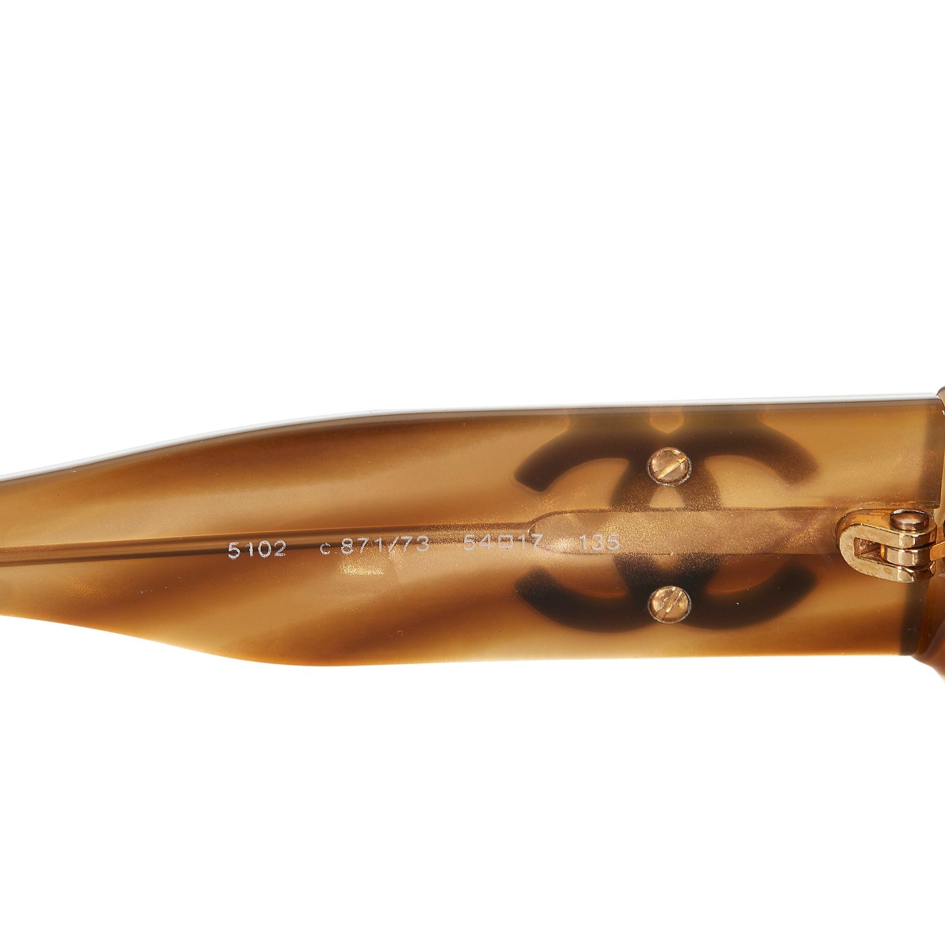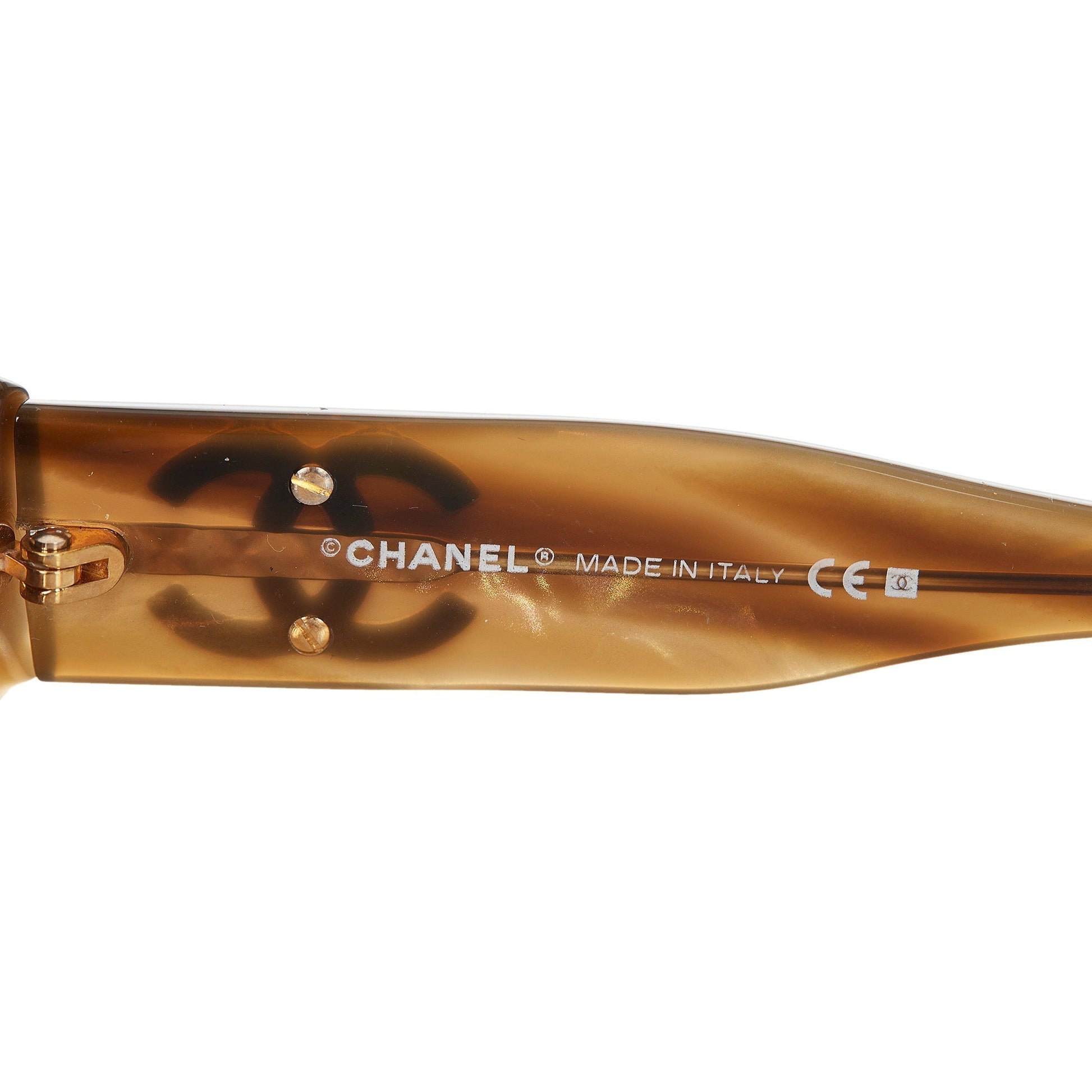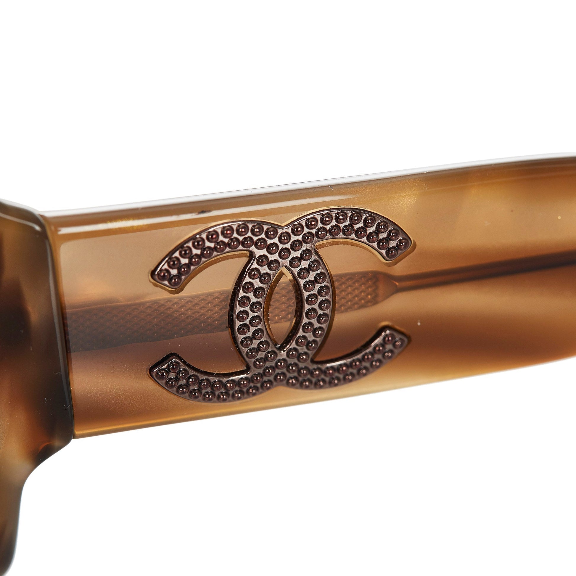 Chanel Square Tinted Sunglasses Brown. These sunglasses feature an acetate body and tinted lenses.