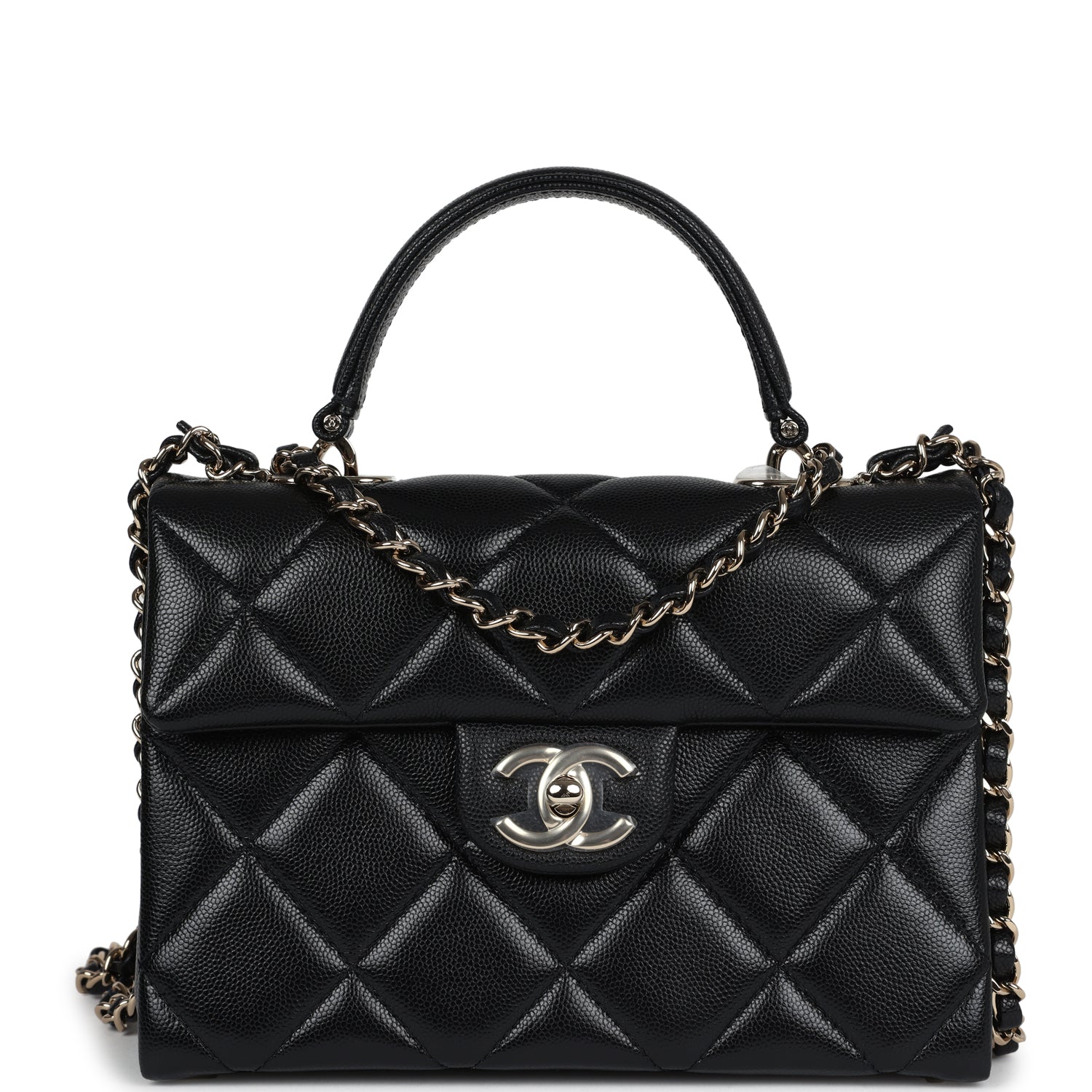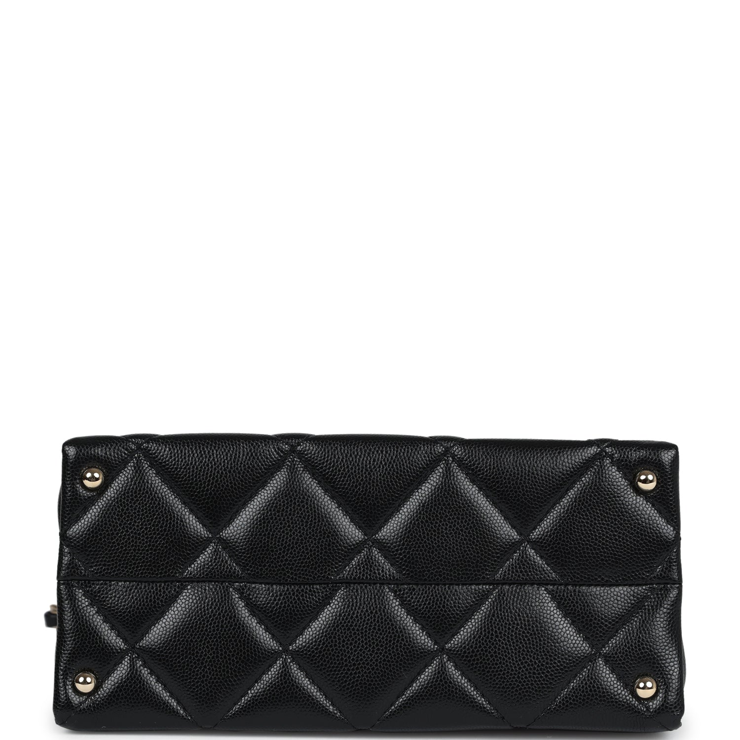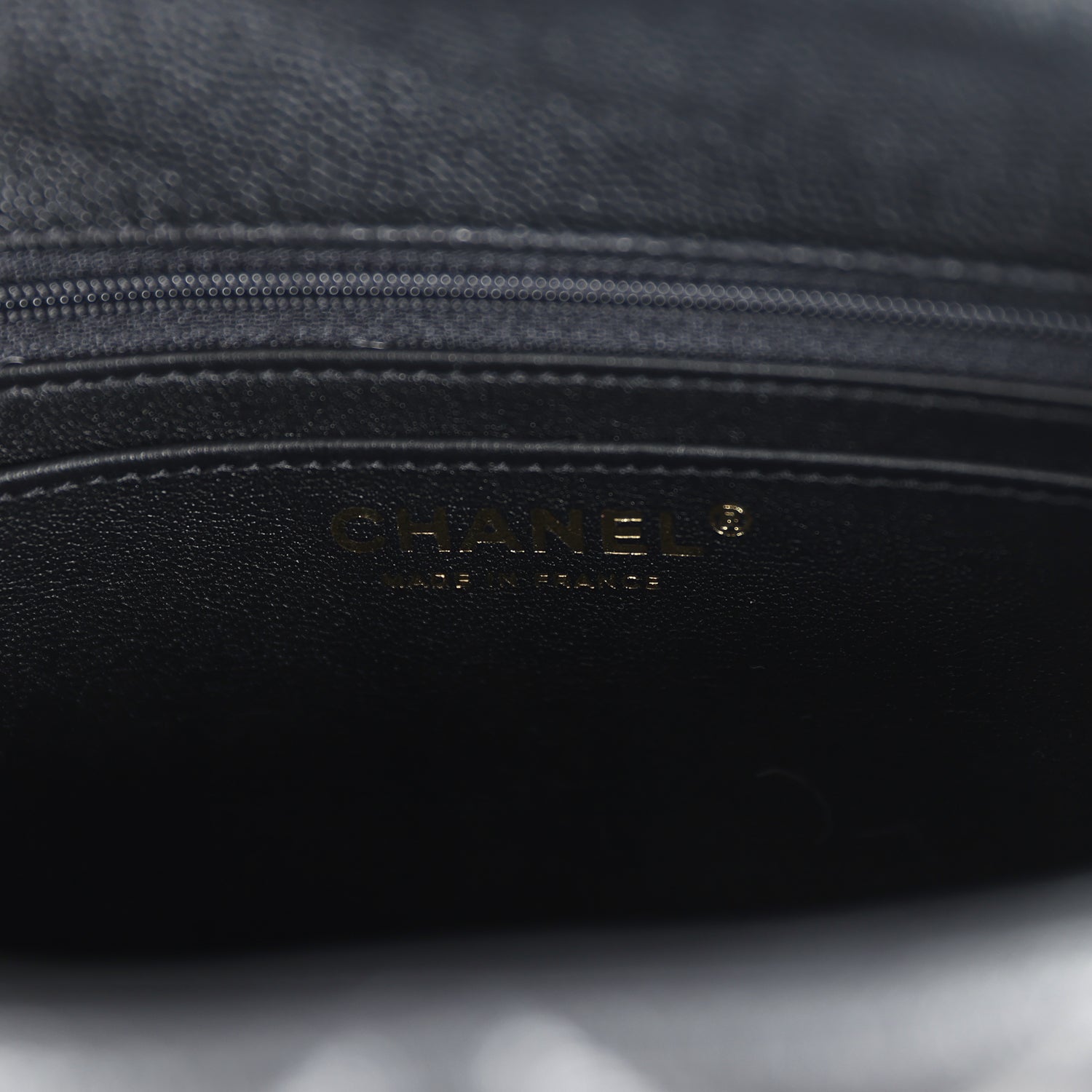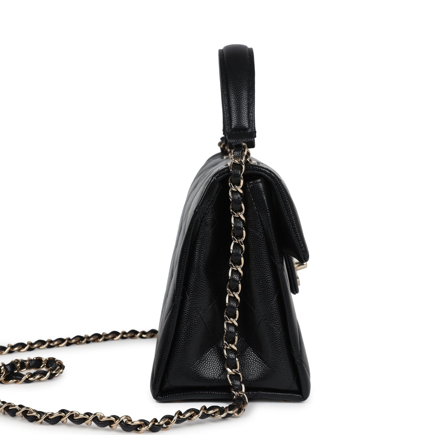 Chanel Small Square Top Handle Flap Bag Black Caviar Light Gold Hardware