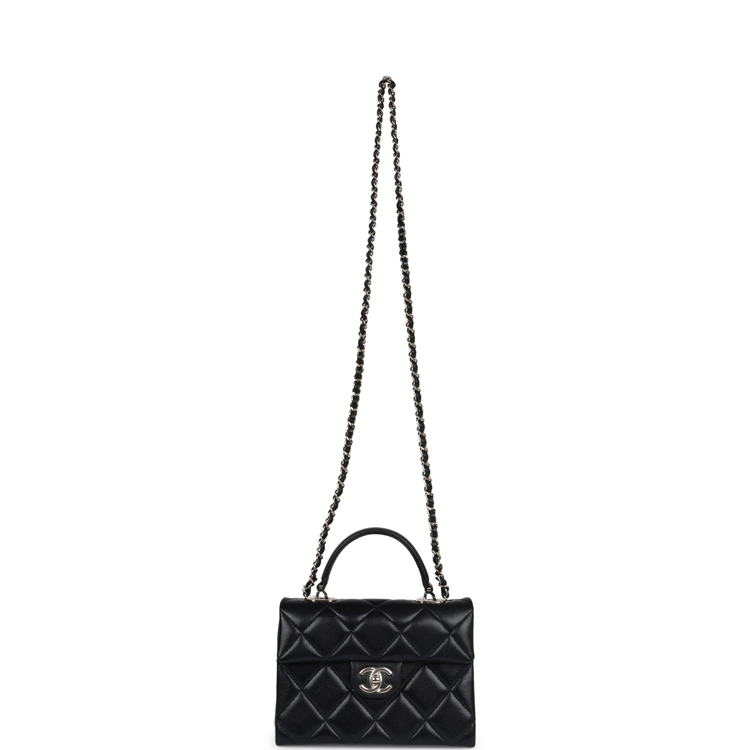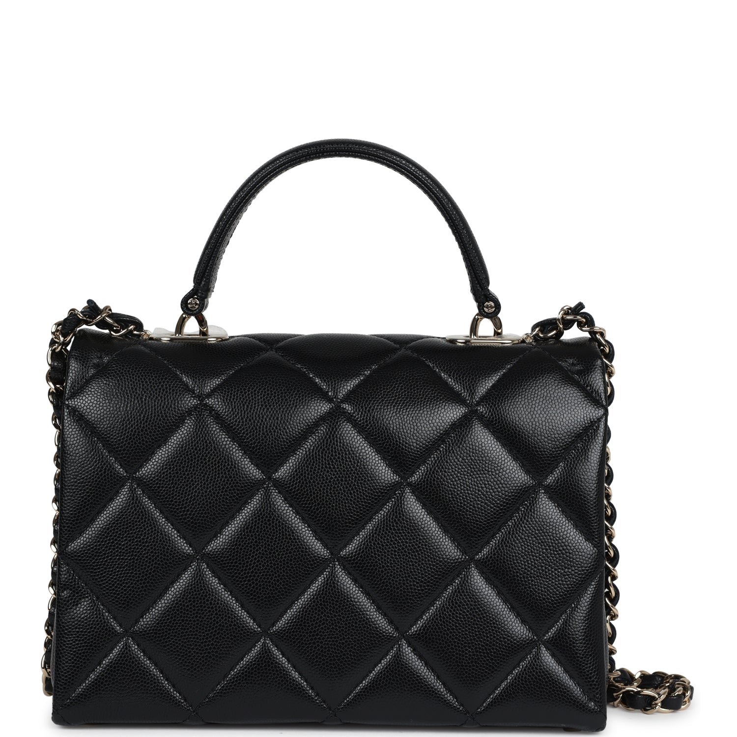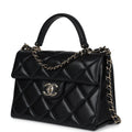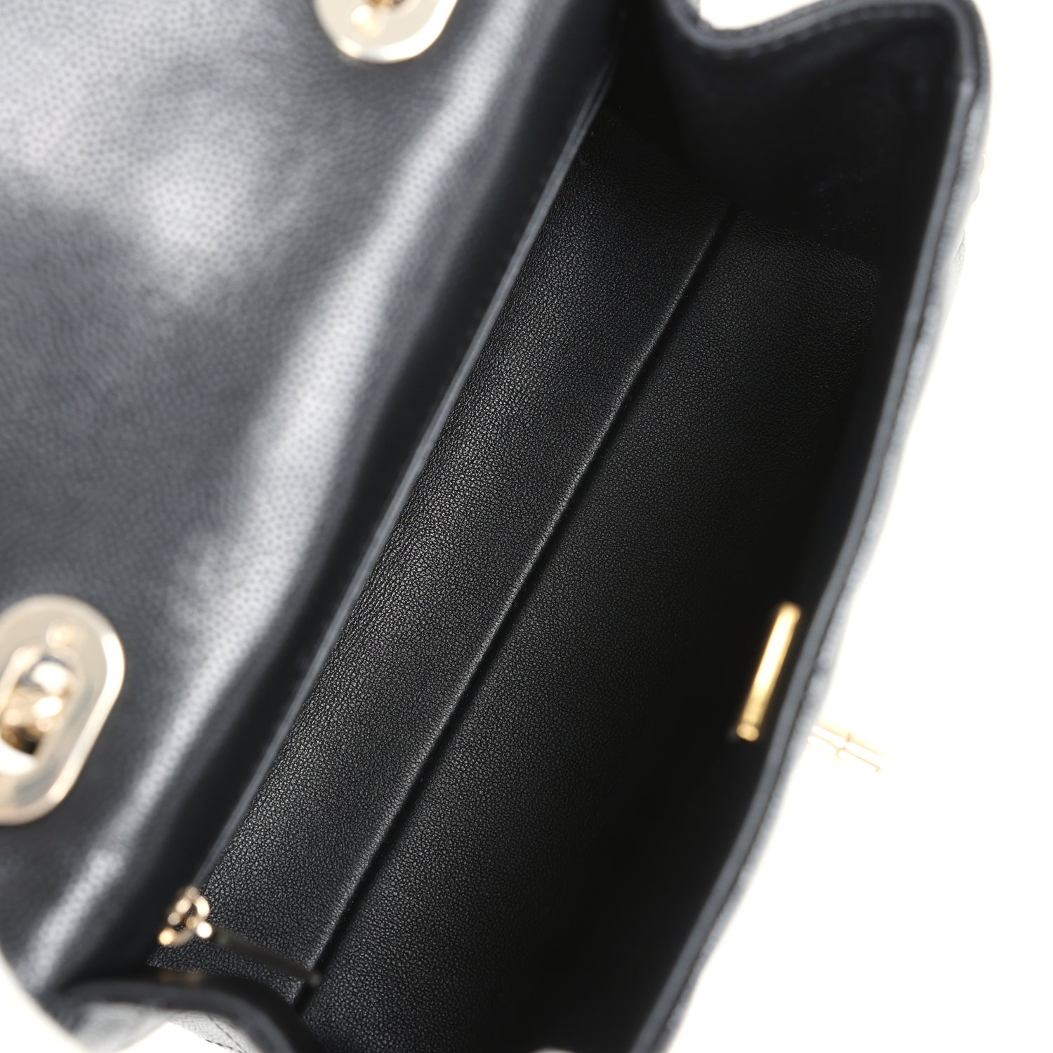 Chanel Small Square Top Handle Flap Bag Black Caviar Light Gold Hardware