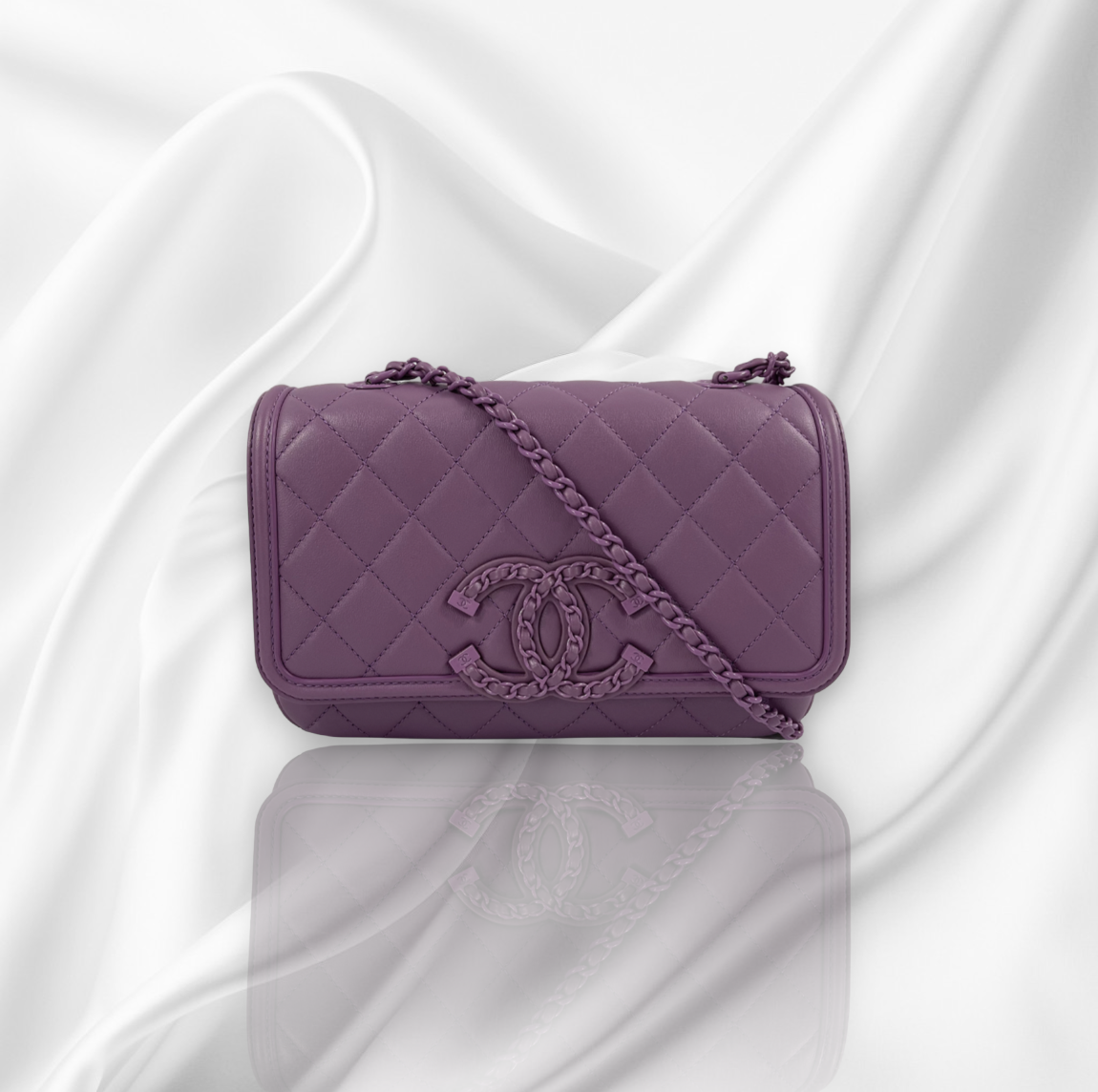 Introducing the Chanel Purple SS21 Classic Quilted Flap Bag - a captivating accessory that exudes elegance and charm. Crafted from luxurious lambskin leather, this gem showcases Chanel's renowned craftsmanship. The regal purple hue and iconic quilted pattern make it a statement piece that adds a touch of sophistication to any outfit. Complete with the signature interlocking CC logo and a versatile gold chain-link strap, this Chanel bag is a true symbol of prestige. Don't miss the opportunity to own this exquisite piece, embodying timeless style and luxury.