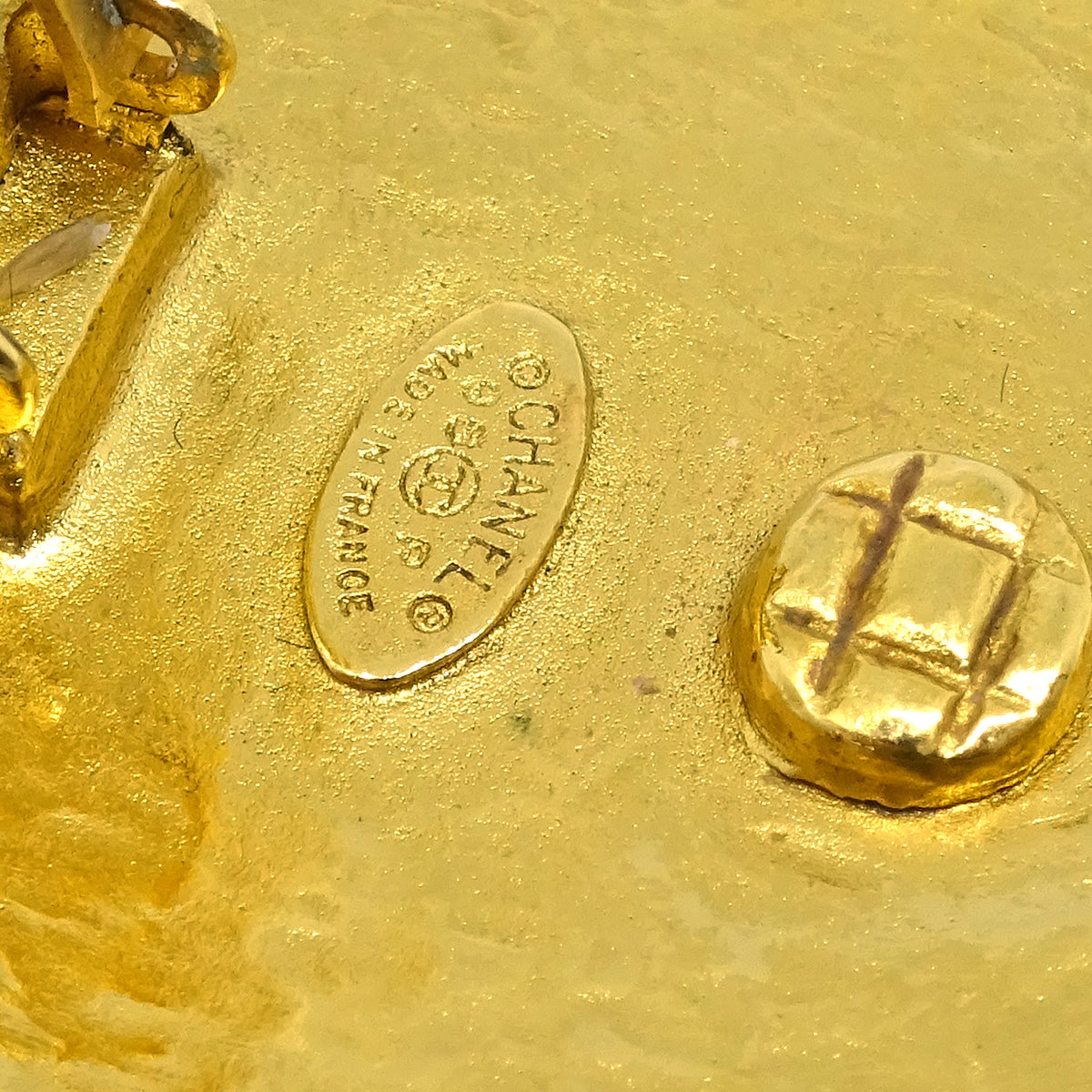 Chanel Stone Button Earrings Clip-On Orange 96P