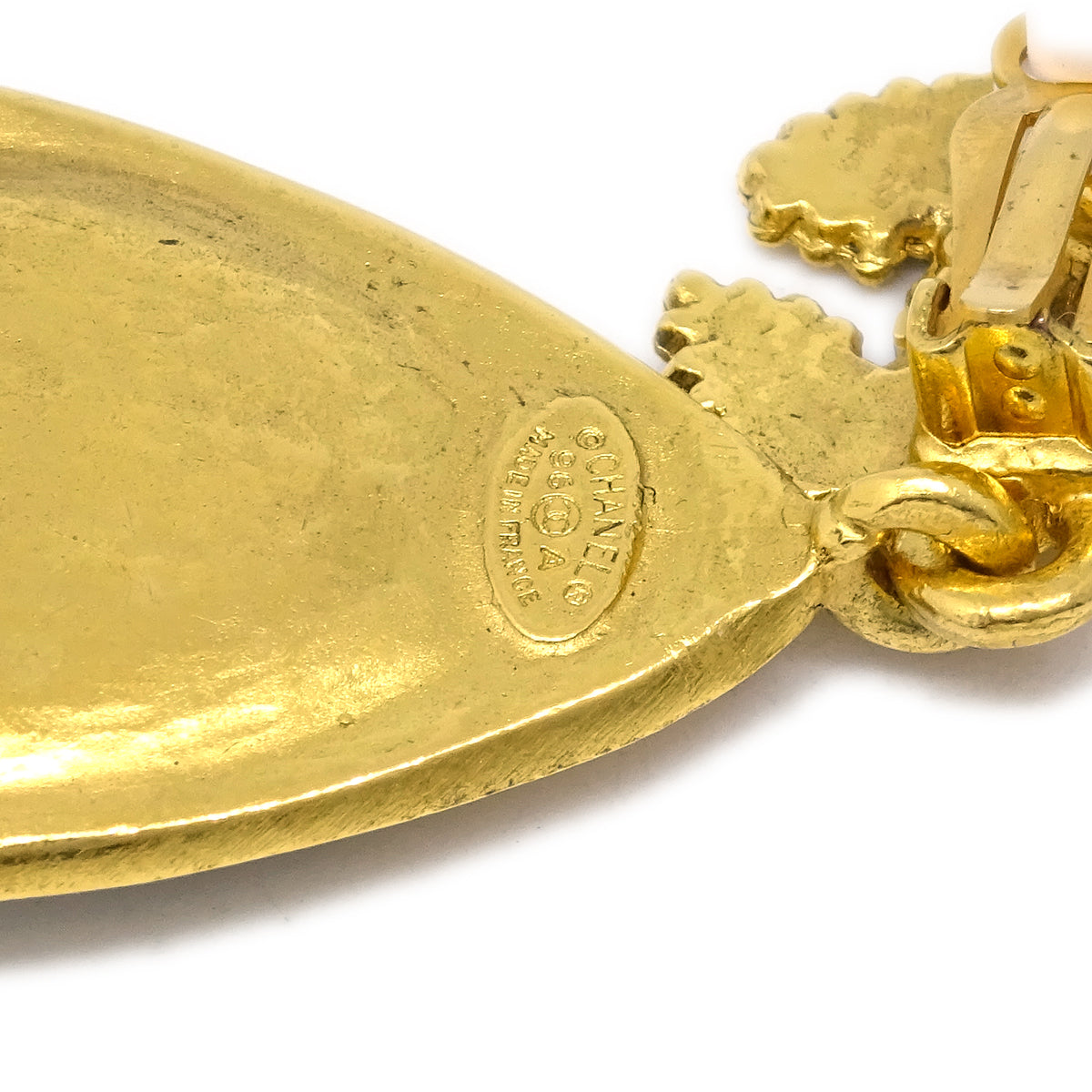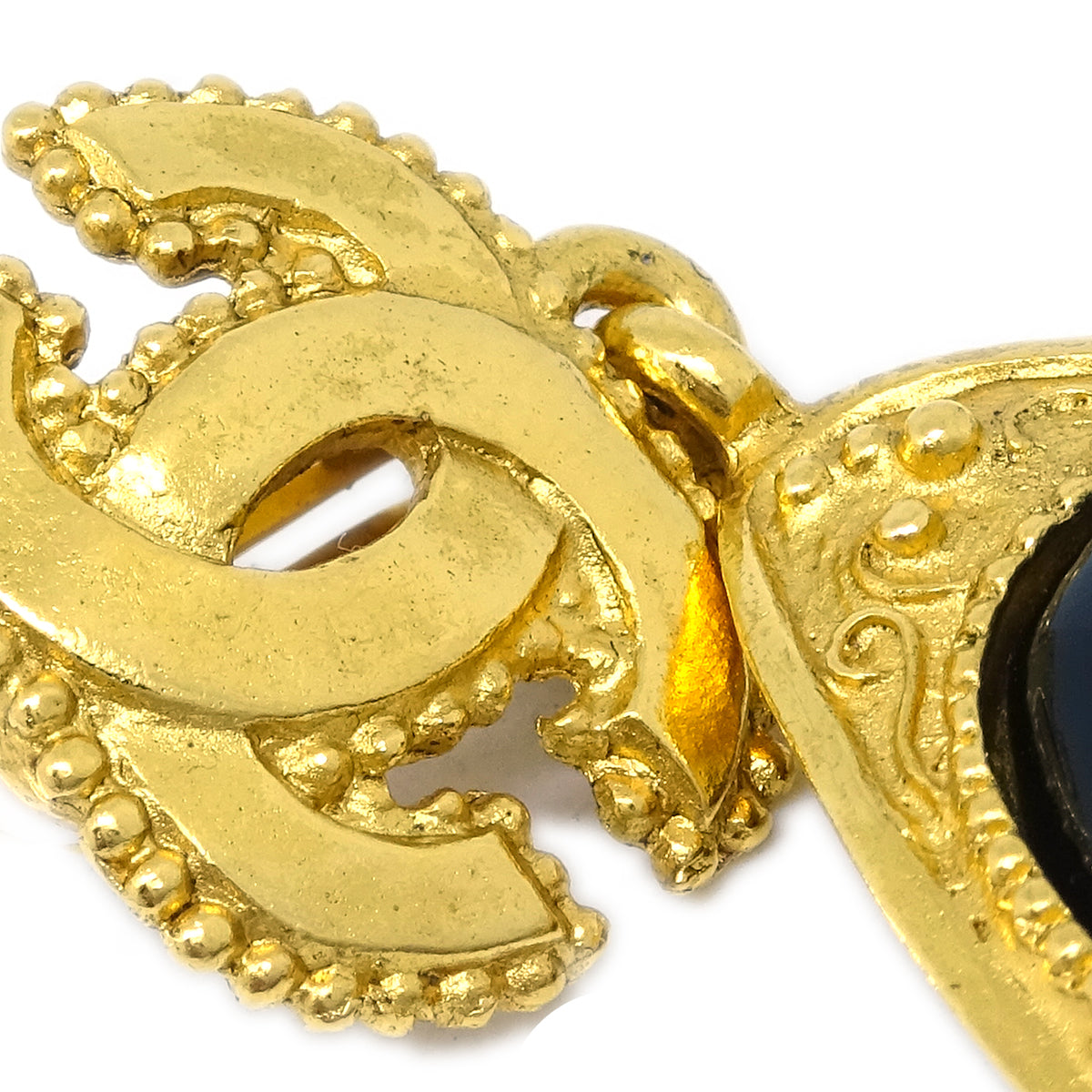 Chanel Stone Dangle Earrings Clip-On Gold Black 96A