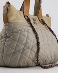 Chanel Grey Nubuck Leather Portobello Tote Bag with Tan Leather Handle and Ruthenium Hardware