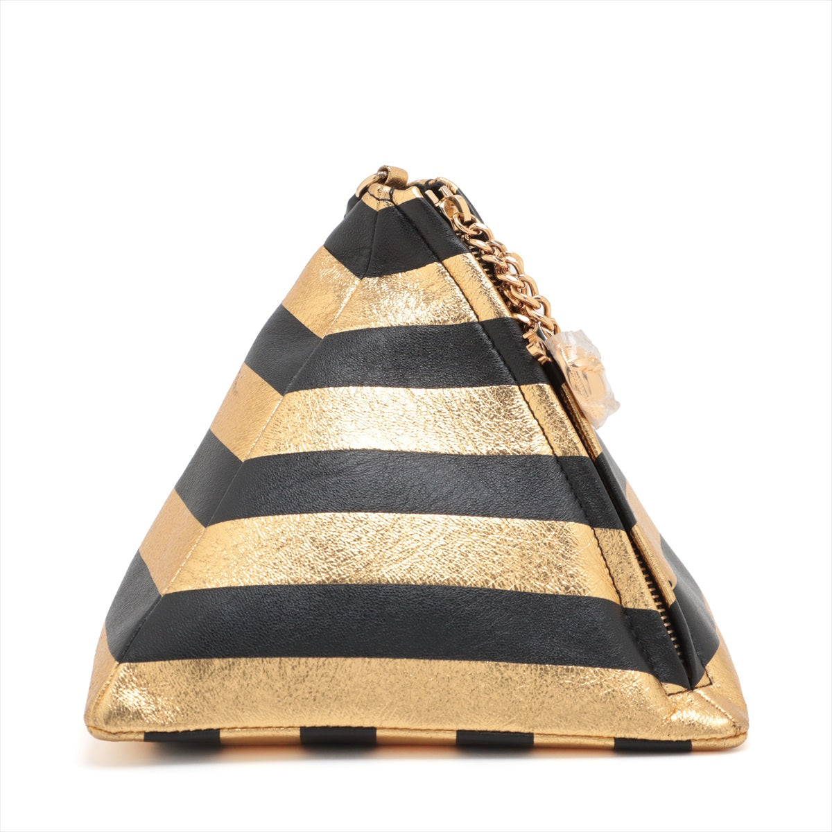 Chanel Strip Handbag Pyramid Black x G Gold Gold 28th