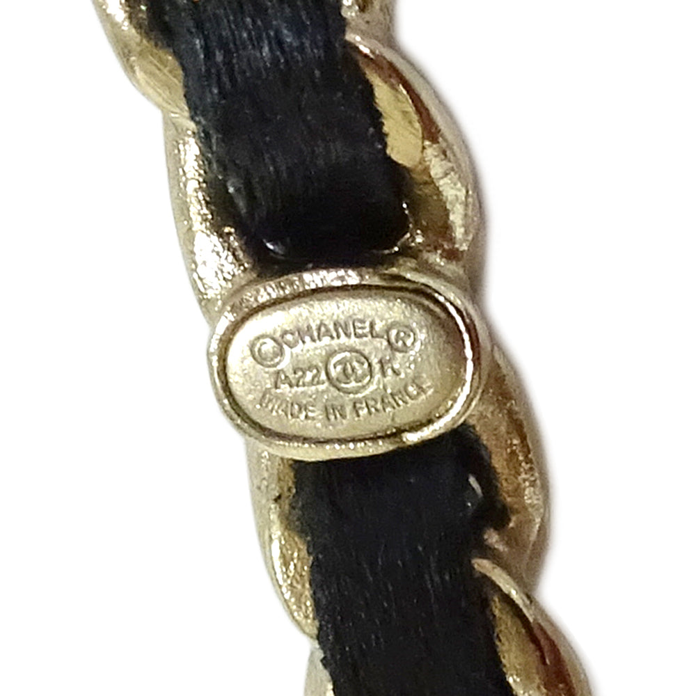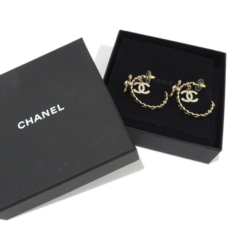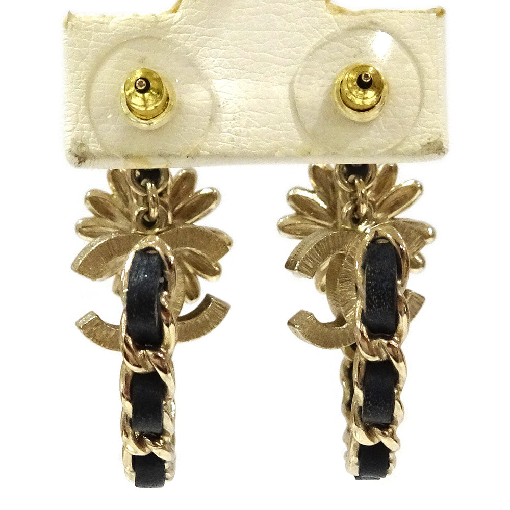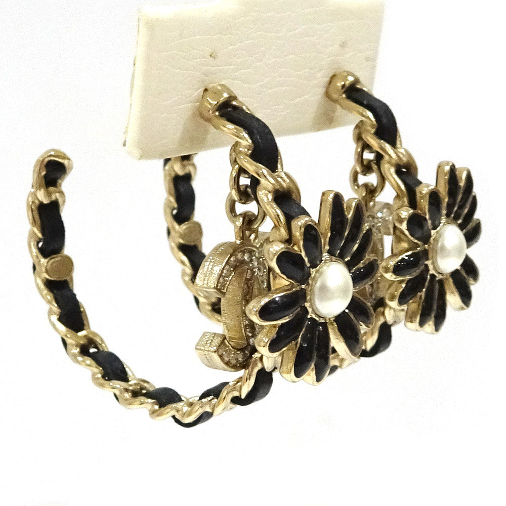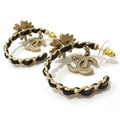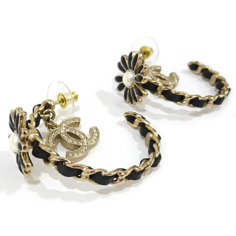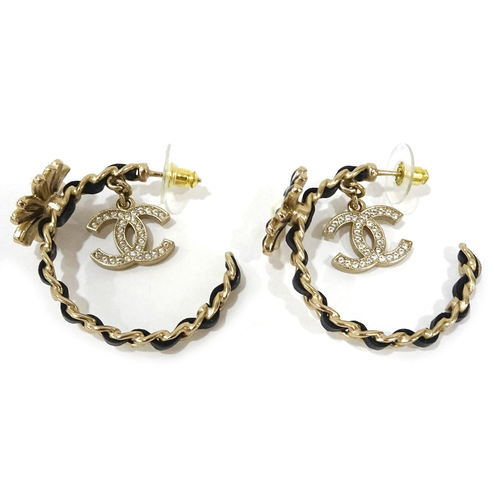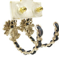Chanel Stud_Earrings Flower Motif Line Stone Coco G Black GP Leather AB9650 A22K Accessoires Small