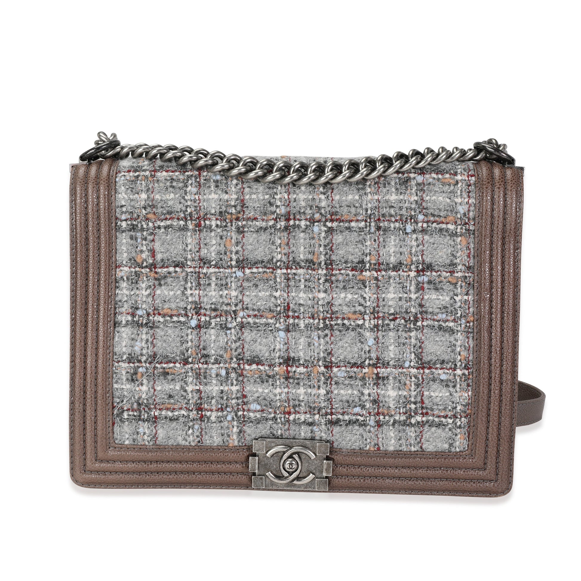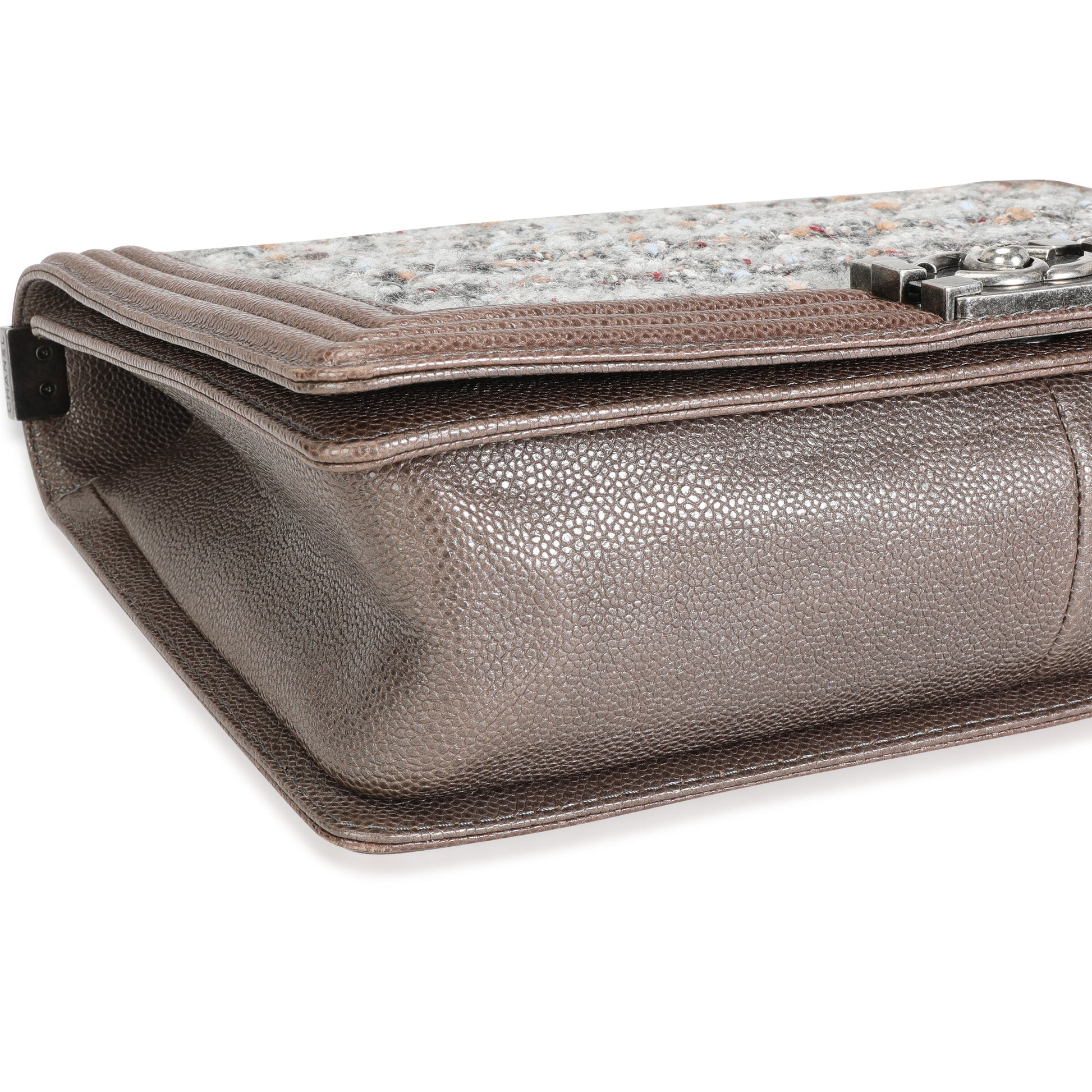 Listing Title: Chanel Taupe Caviar and Multicolor Tweed Large Boy Bag