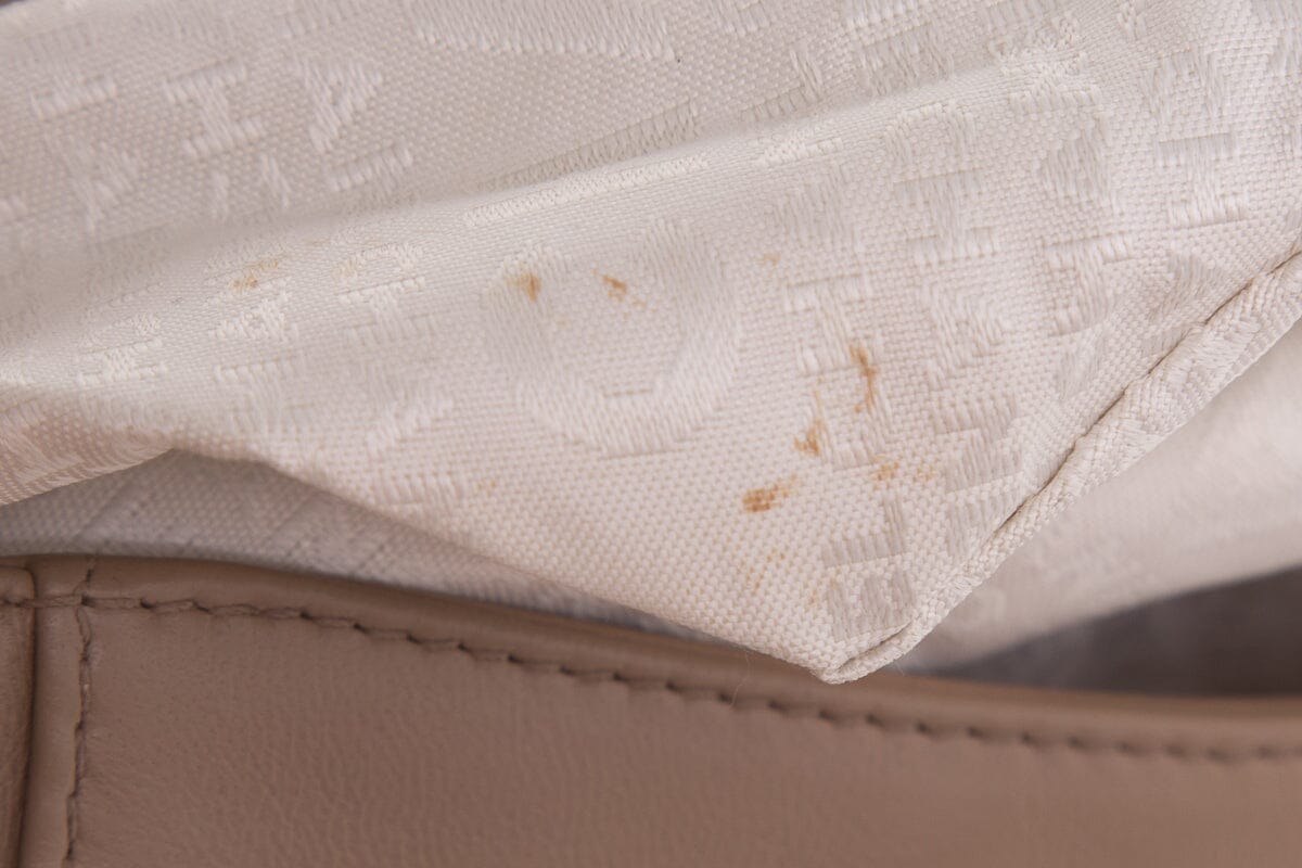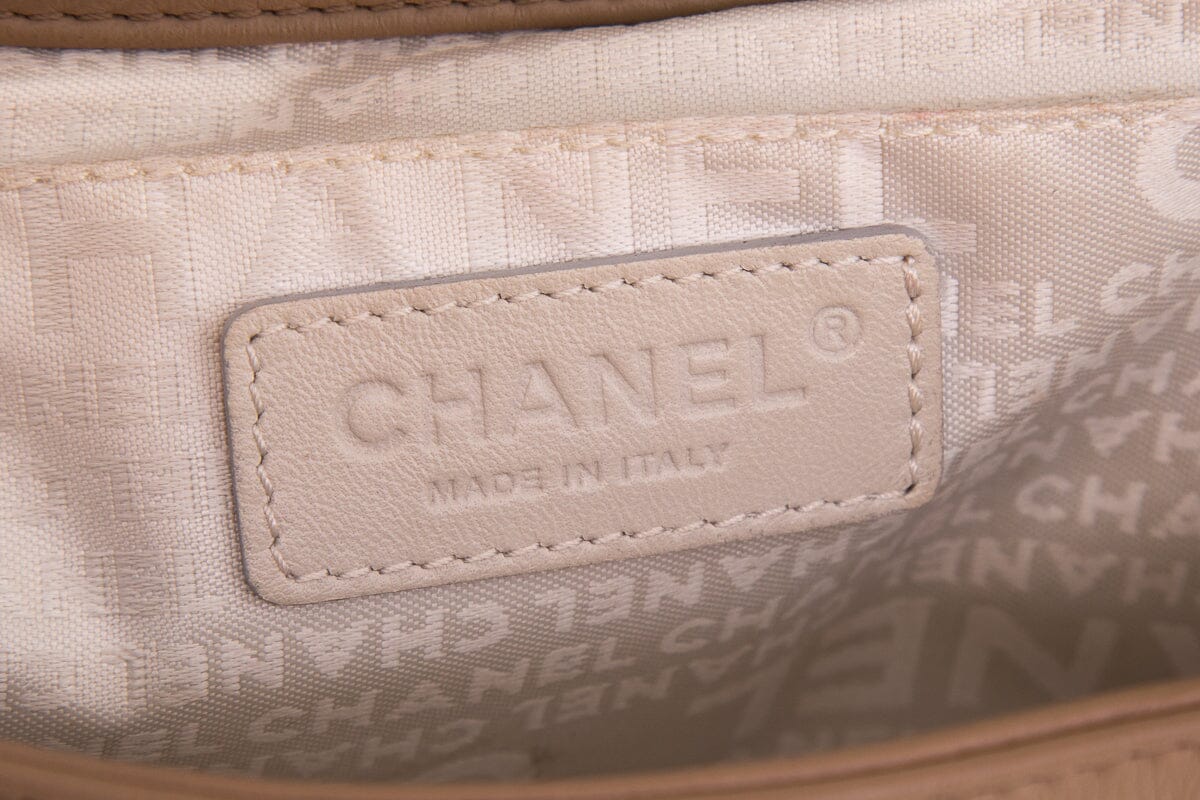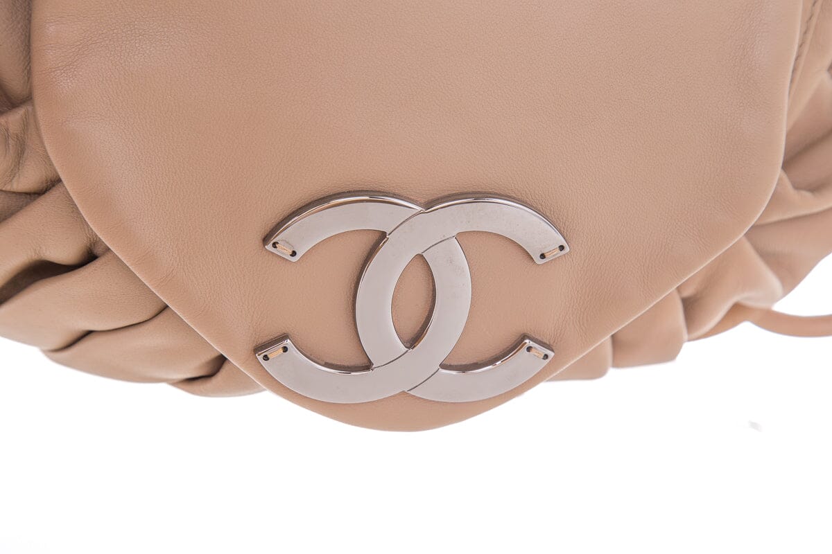 Chanel Taupe Accordion Pleat Lambskin Leather Shoulder Ba. This item is in very good condition; some scratching on hardware and marks on lining.
