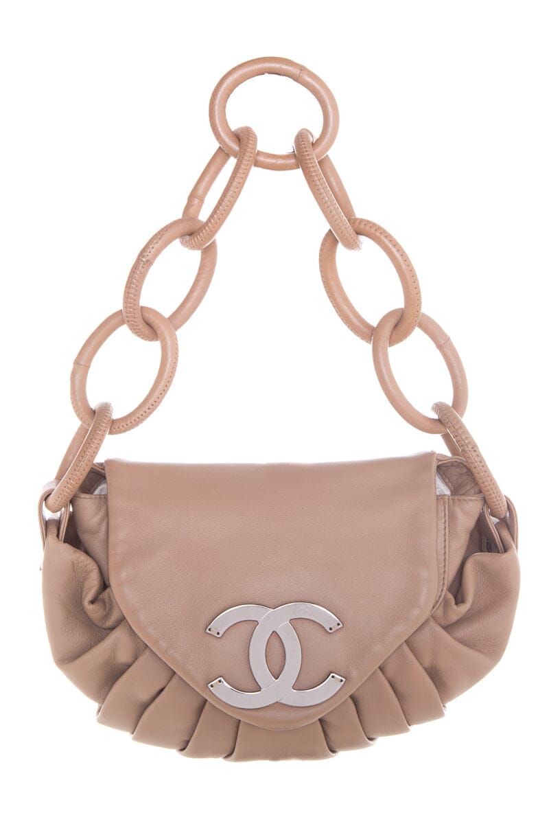 Chanel Taupe Limited Edition Accordion Pleat Lambskin Leather Shoulder Bag