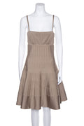 Chanel Taupe Silk Sleeveless Pleated Dress SZ 42
