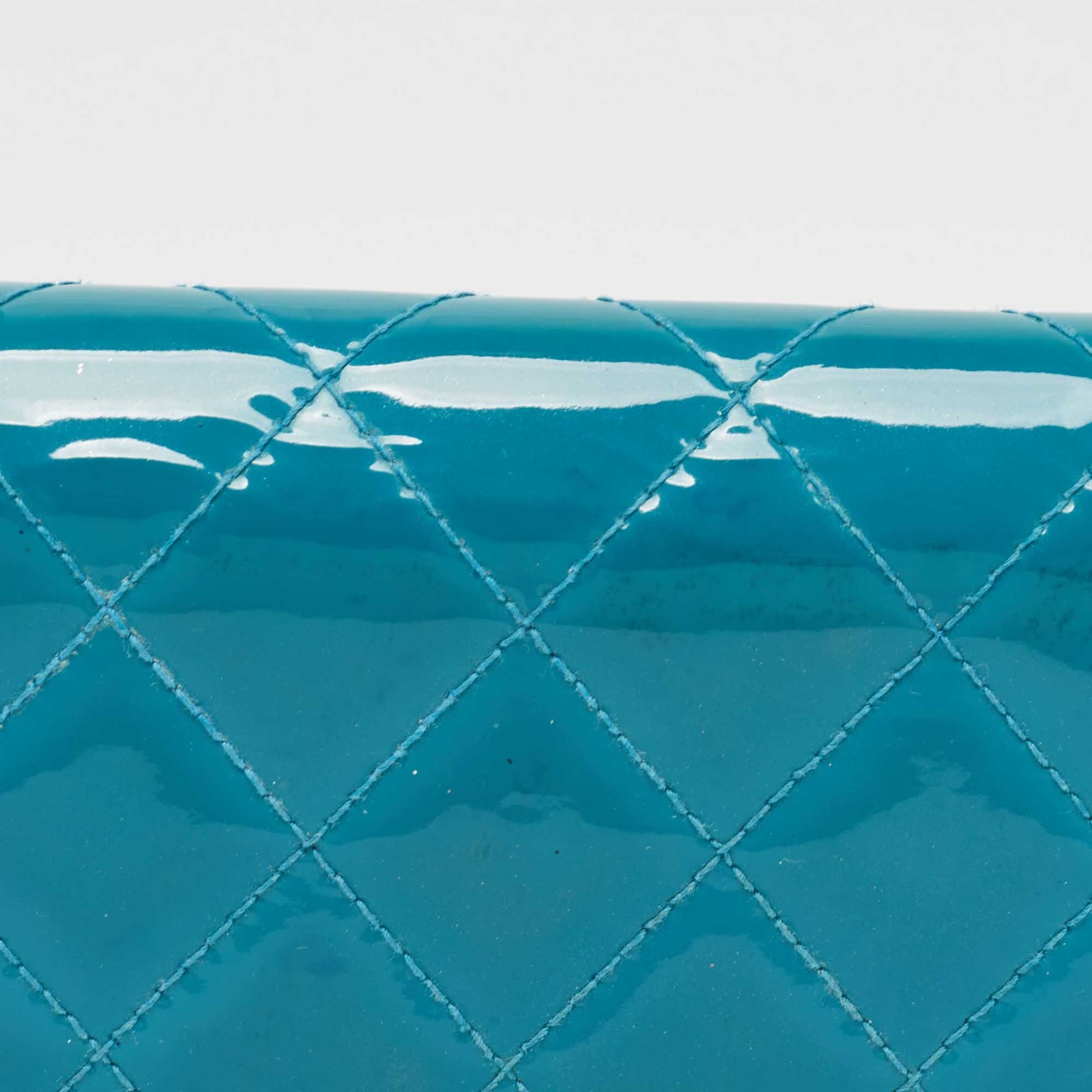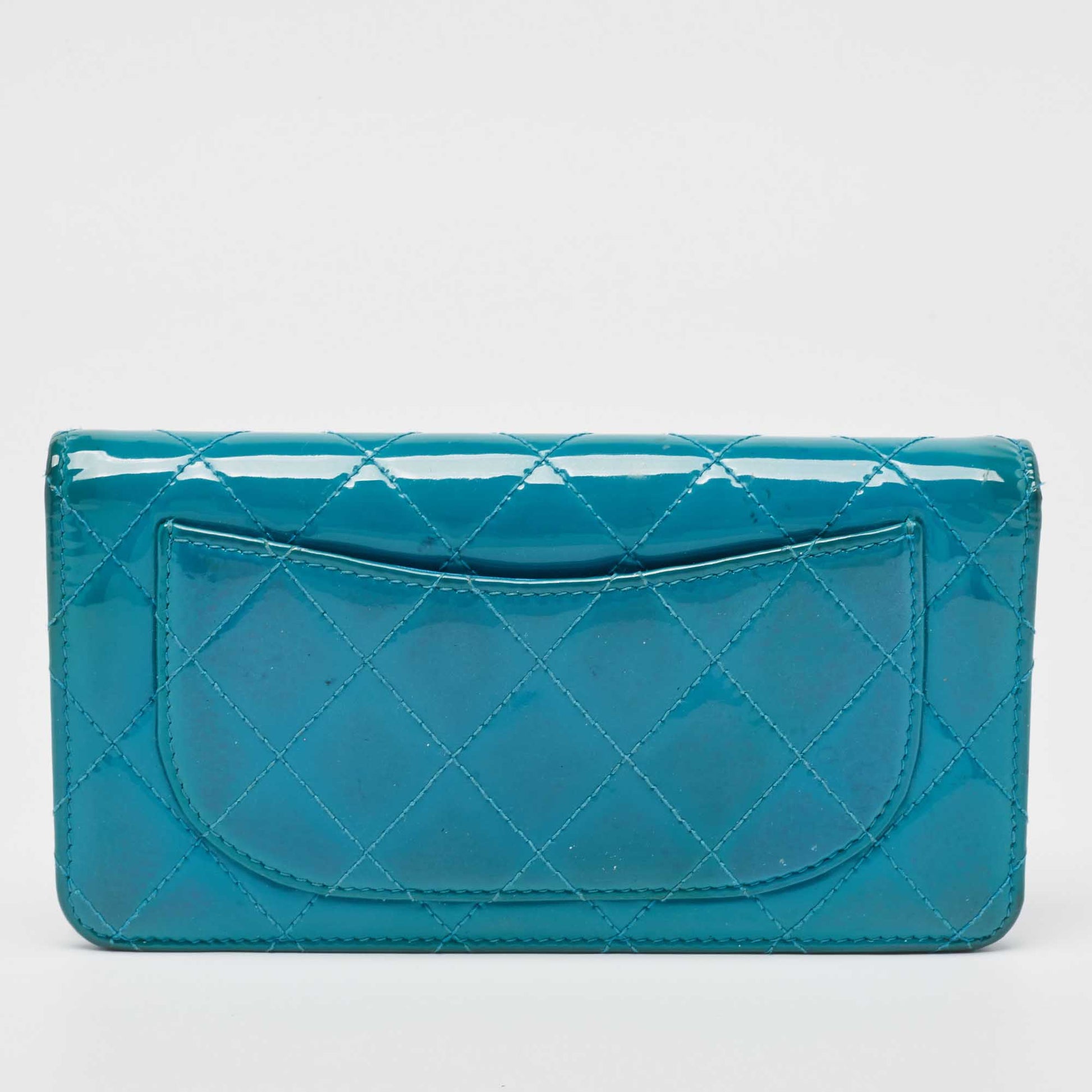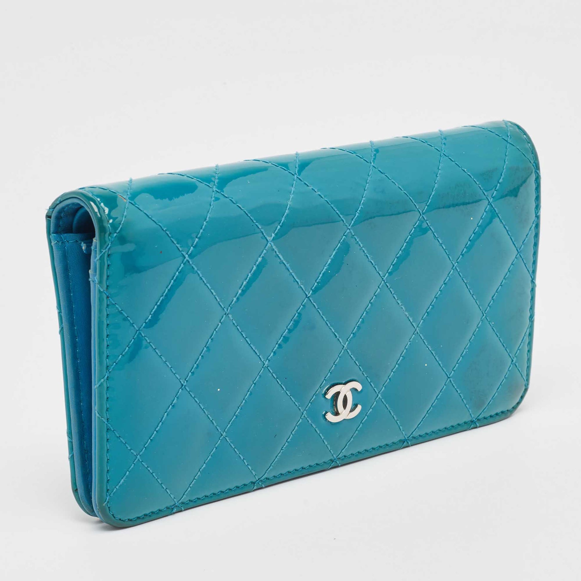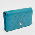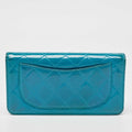CHANEL Teal Quilted Patent Leather L Yen Wallet