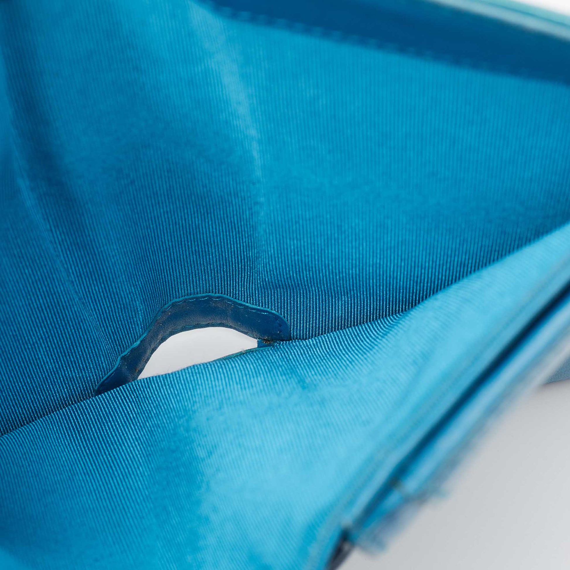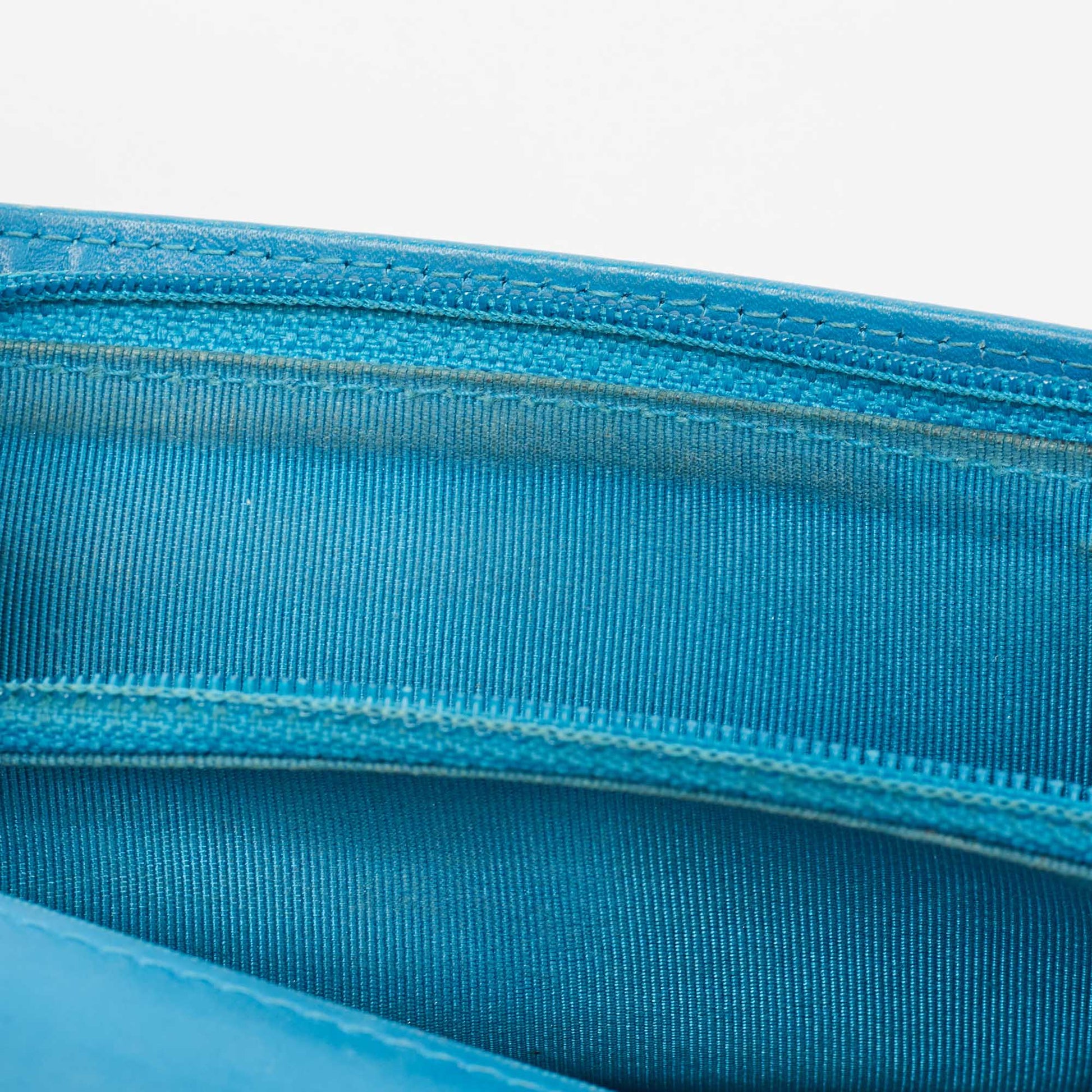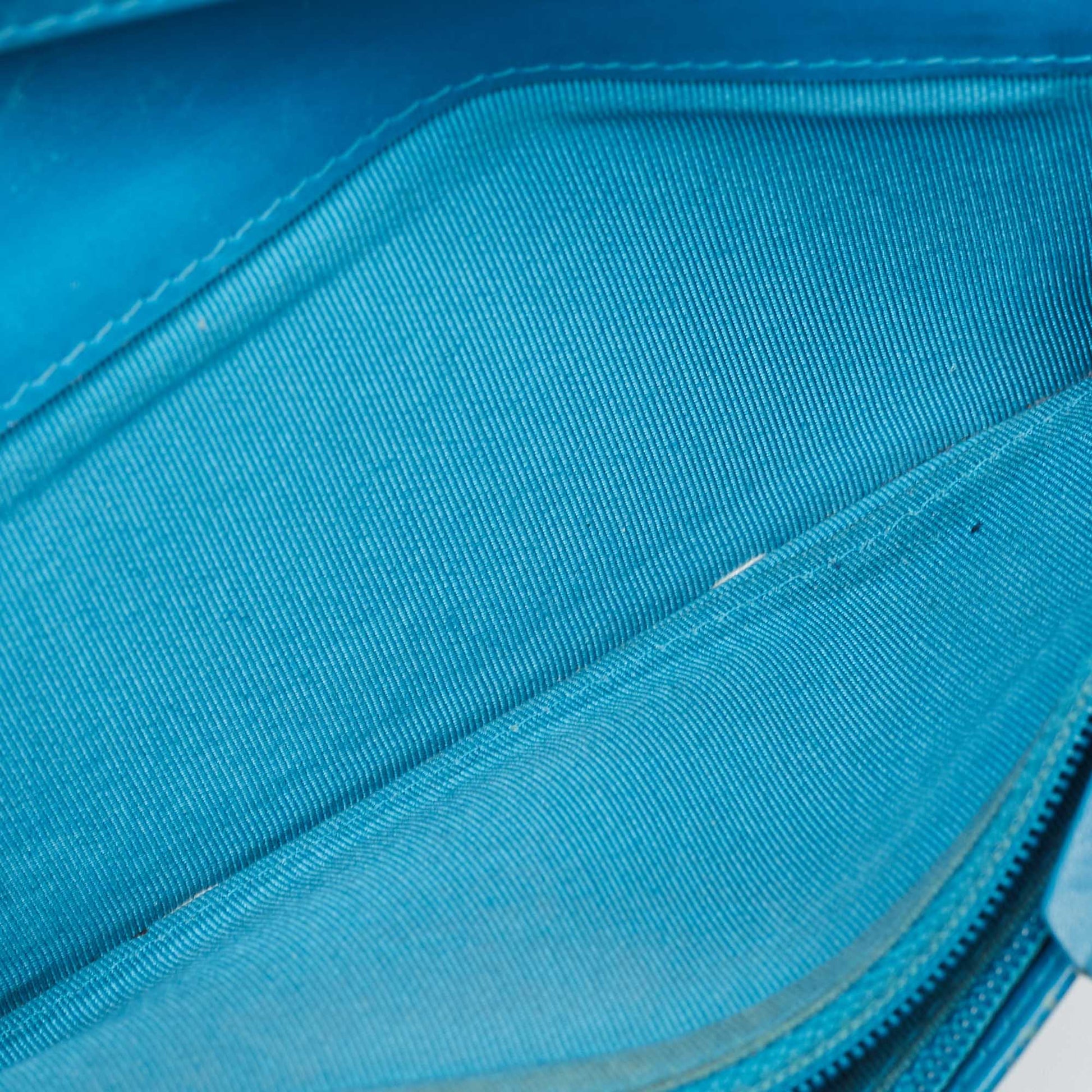 CHANEL Teal Quilted Patent Leather L Yen Wallet