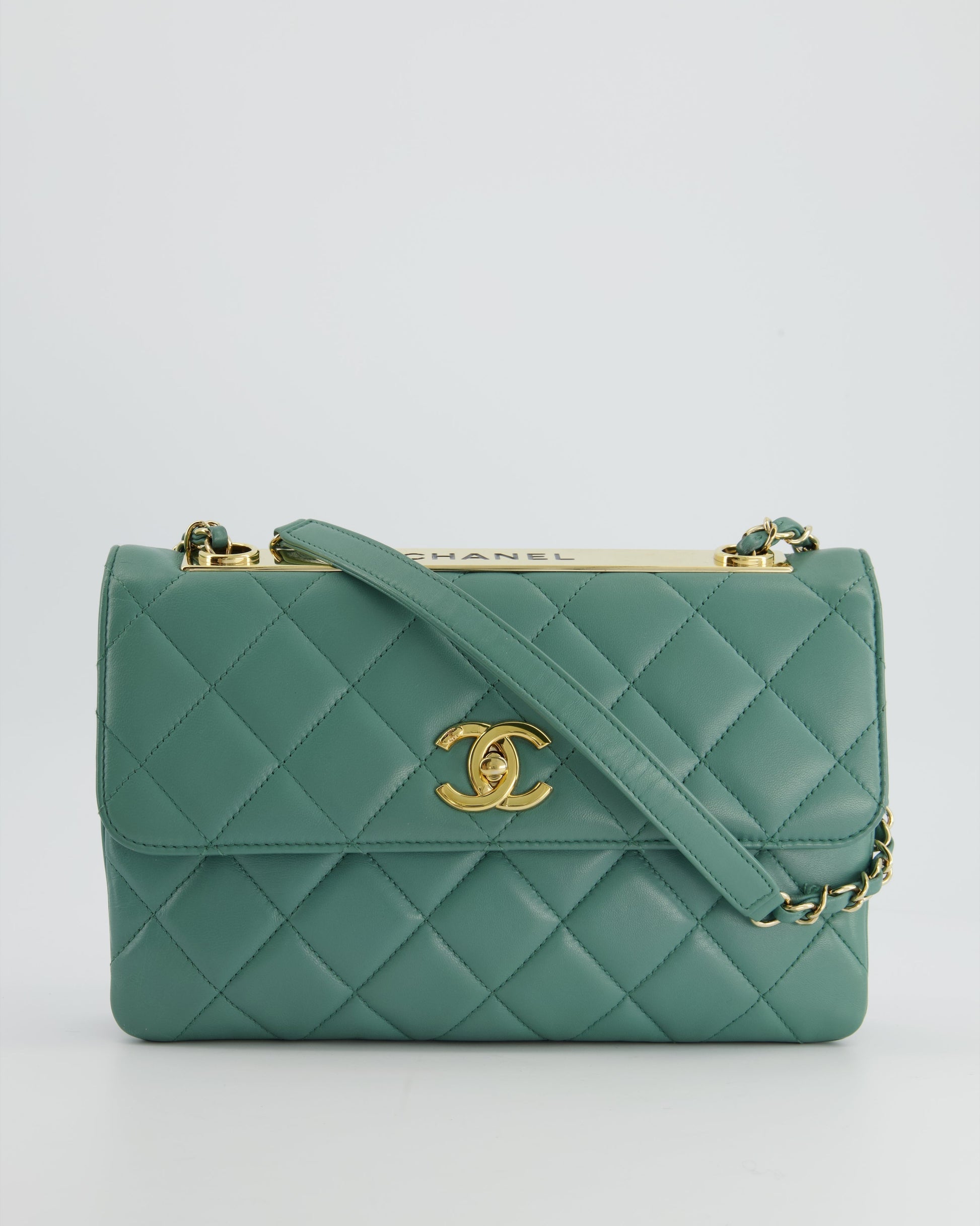Chanel Teal Trendy CC Shoulder Bag in Lambskin Leather with Gold Hardware