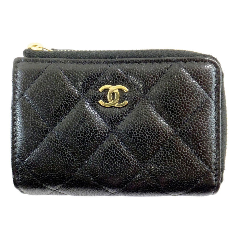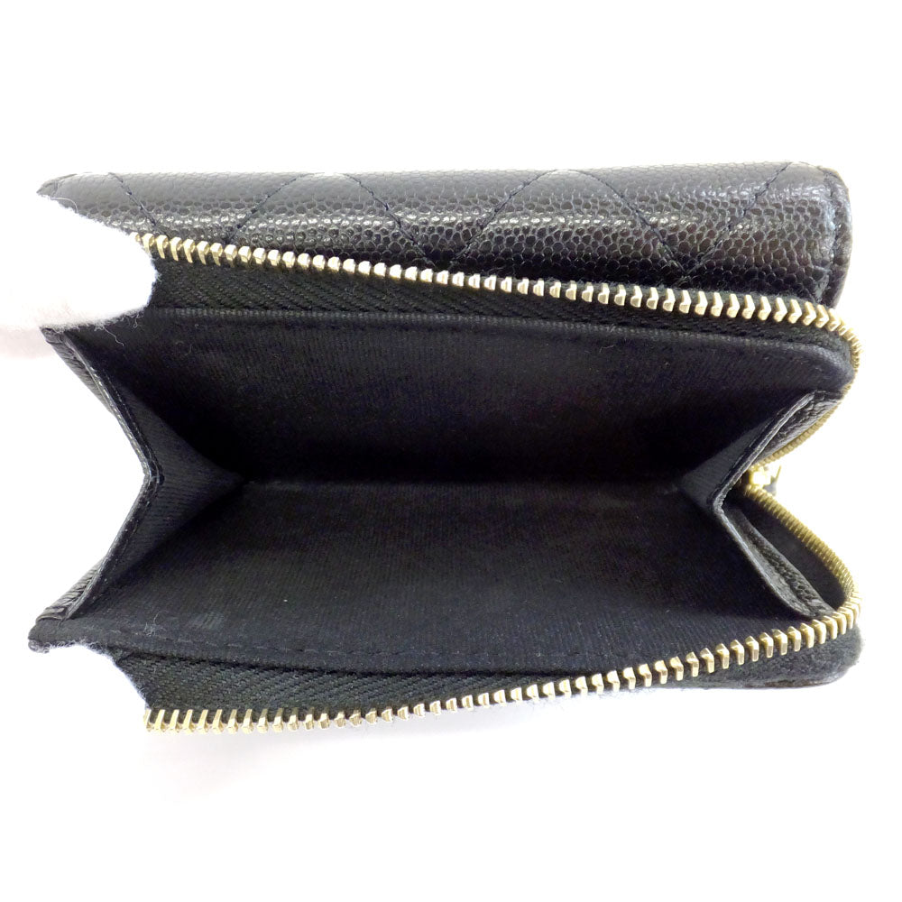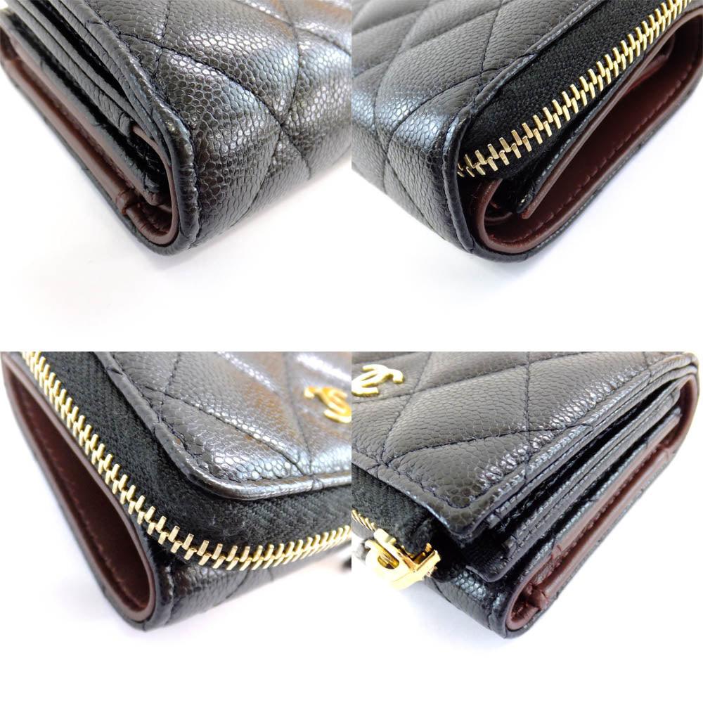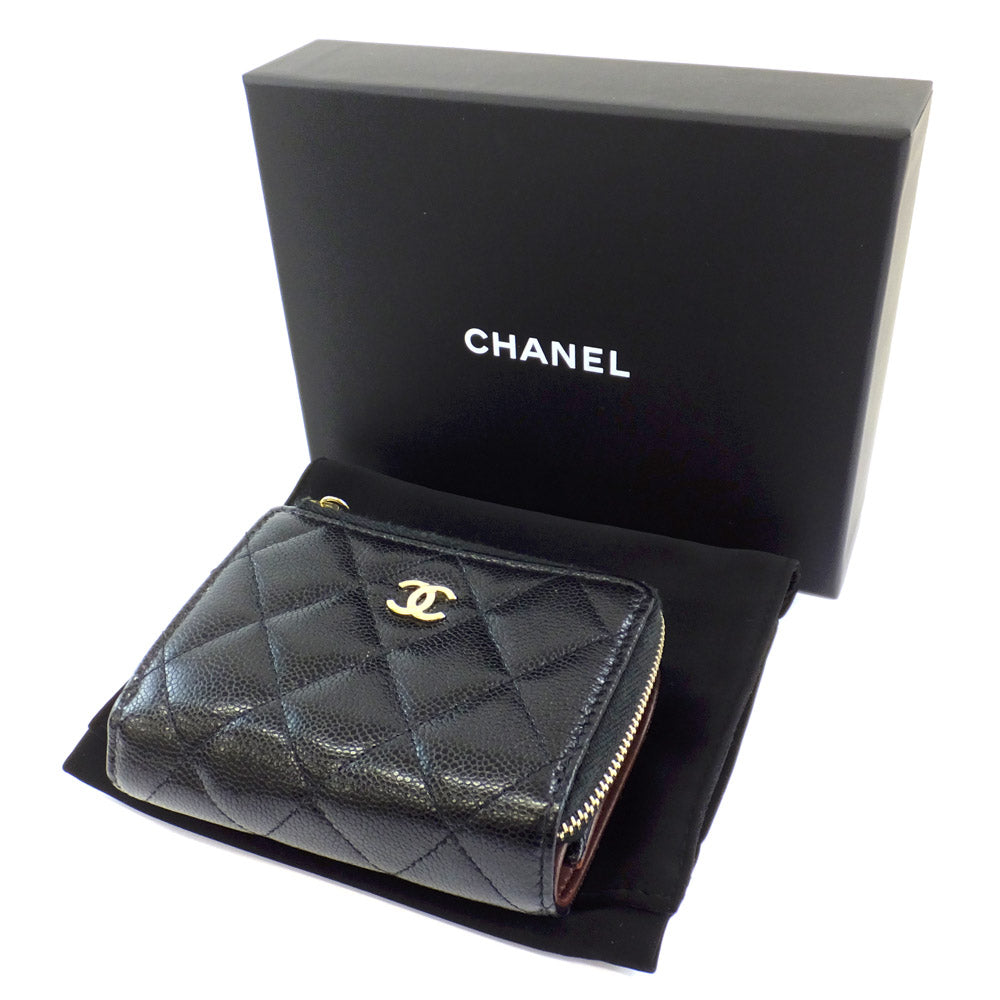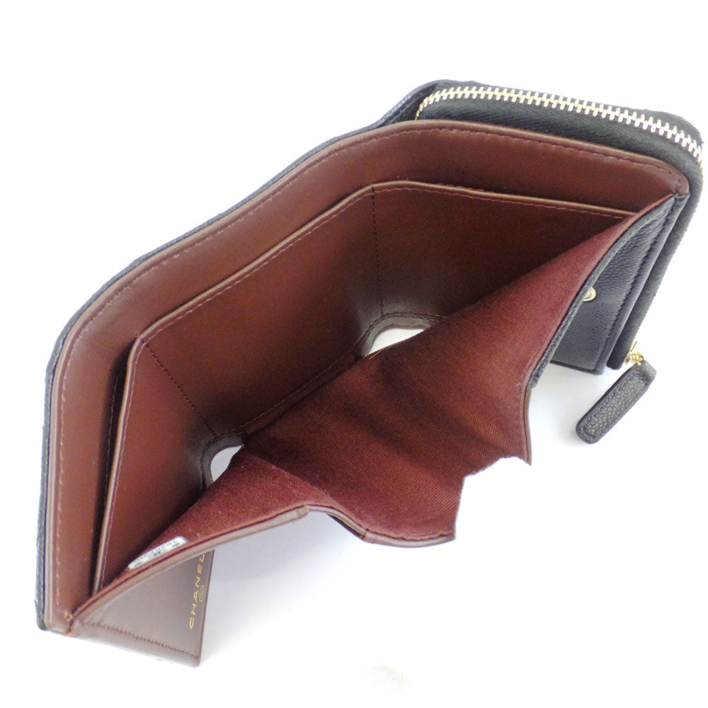 Chanel Three Fold Wallet Black Gold L Coco Mark AP3177 B10583 Wallet