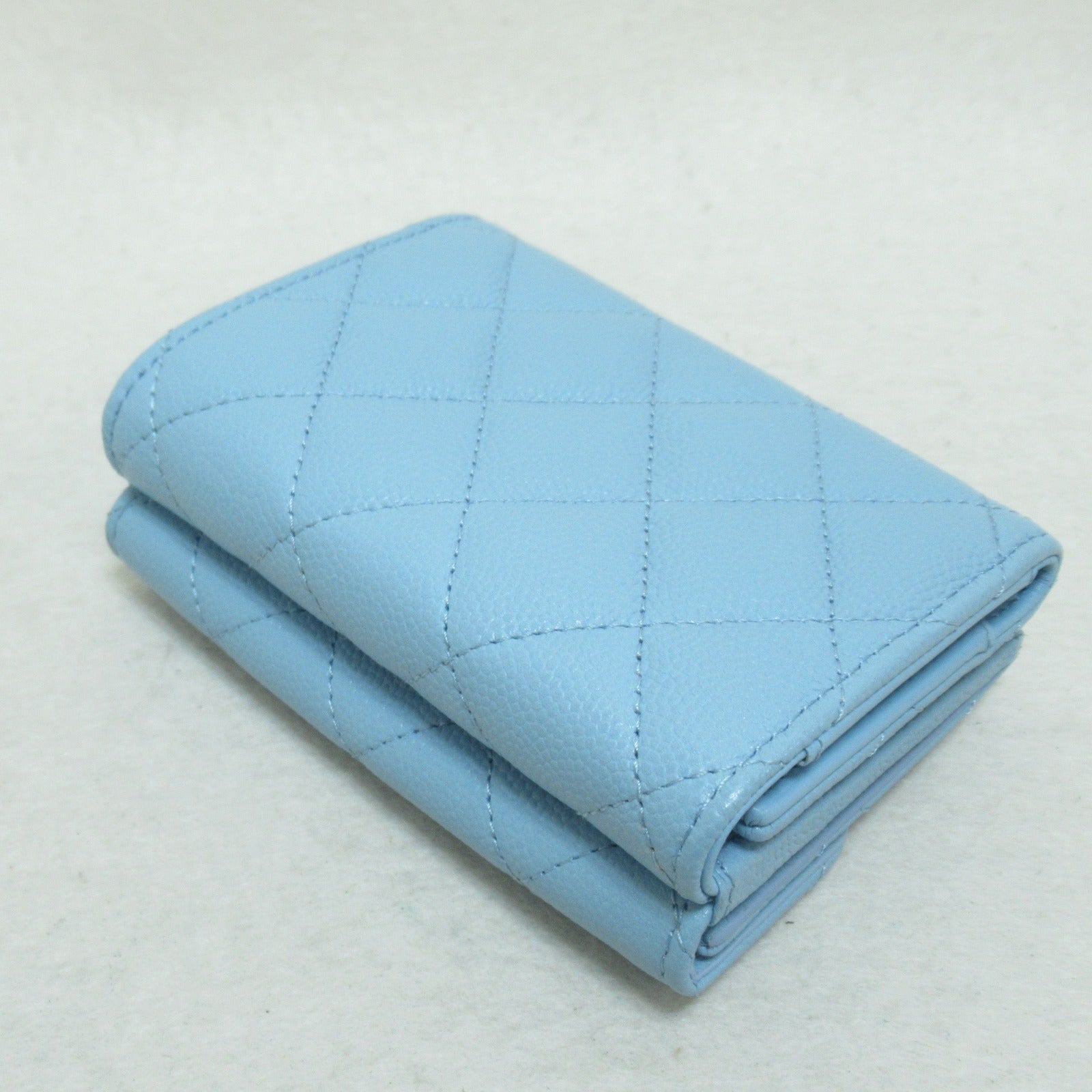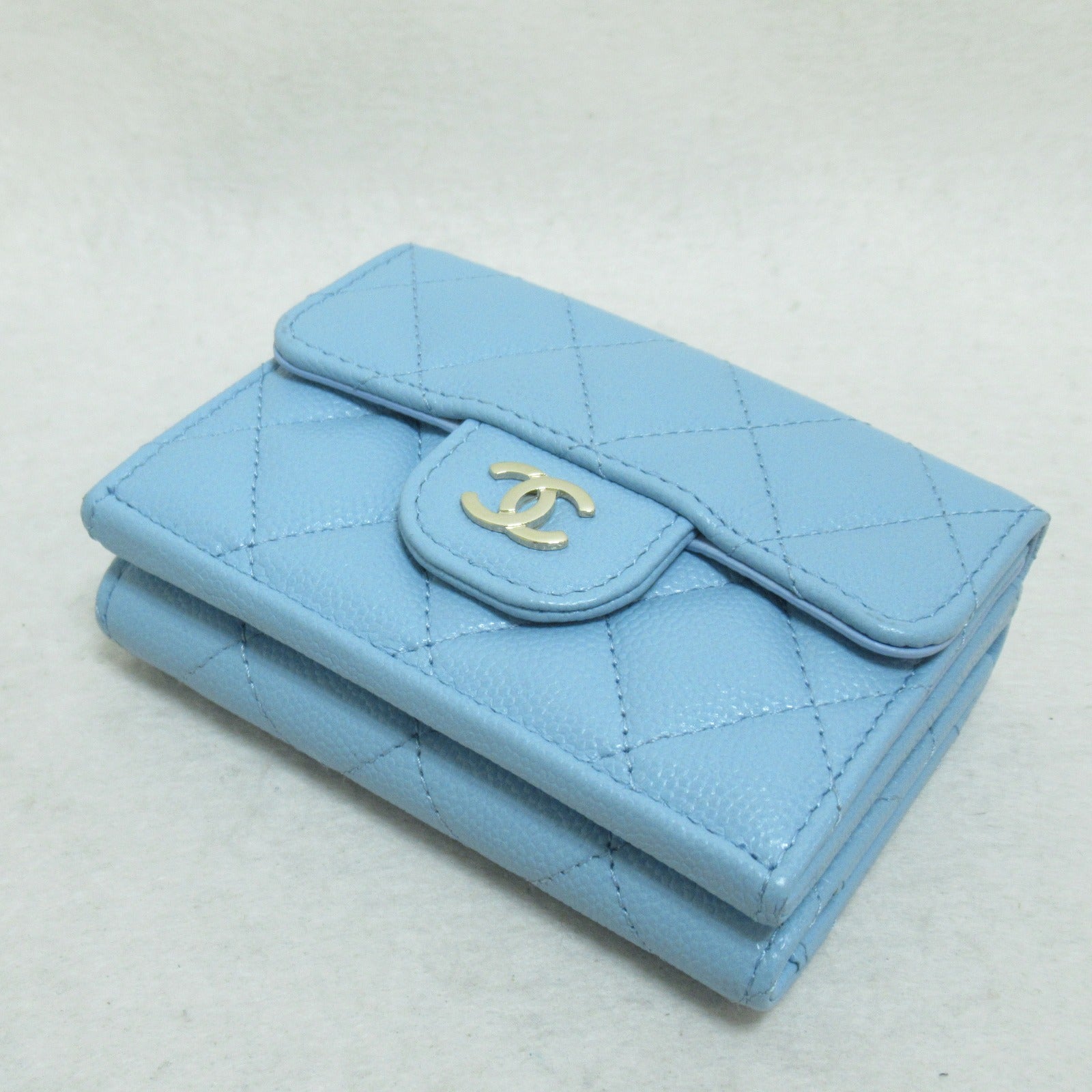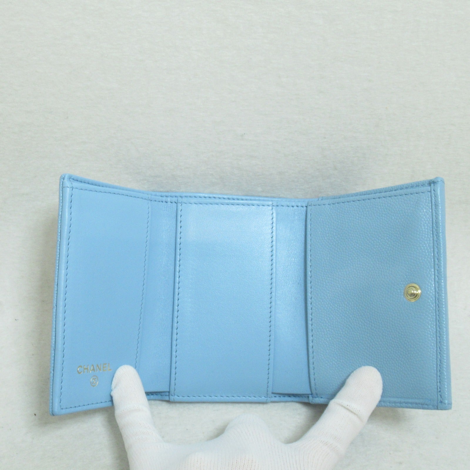 Chanel Three Fold Wallet Three Folded Wallet Caviar S (Green ) Blue
