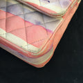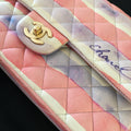This chic shoulder bag is constructed lambskin leather in multicolor pastel pink lilac and beige, with matte gold hardware