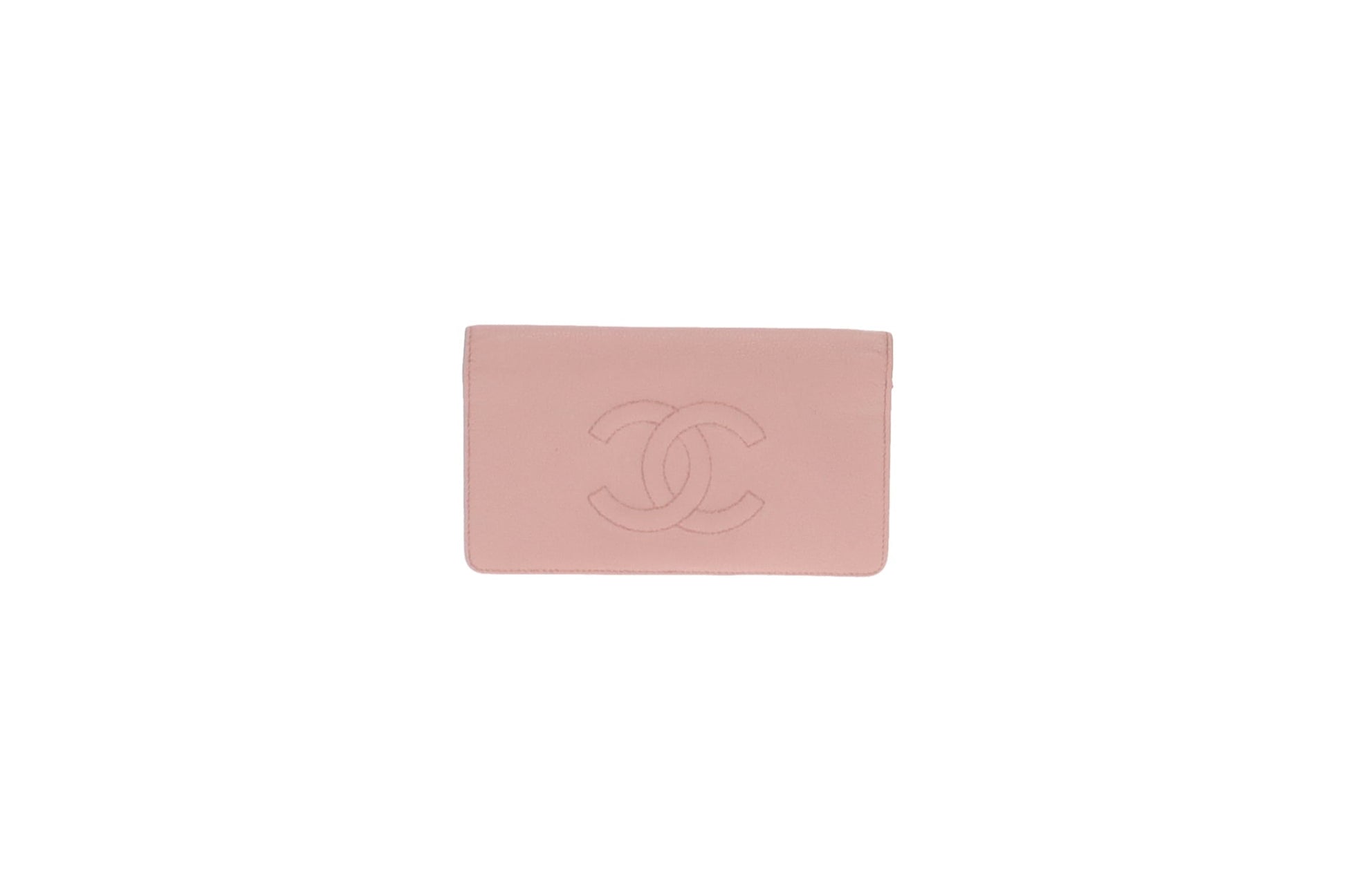 Keep your money stylish and secure with the Chanel Timeless Pink Caviar Flap wallet. Made with durable caviar leather, this wallet features a classic pink design that never goes out of style. With multiple compartments and a flap closure, you can keep all your essentials organized and protected. Money management has never been so chic!