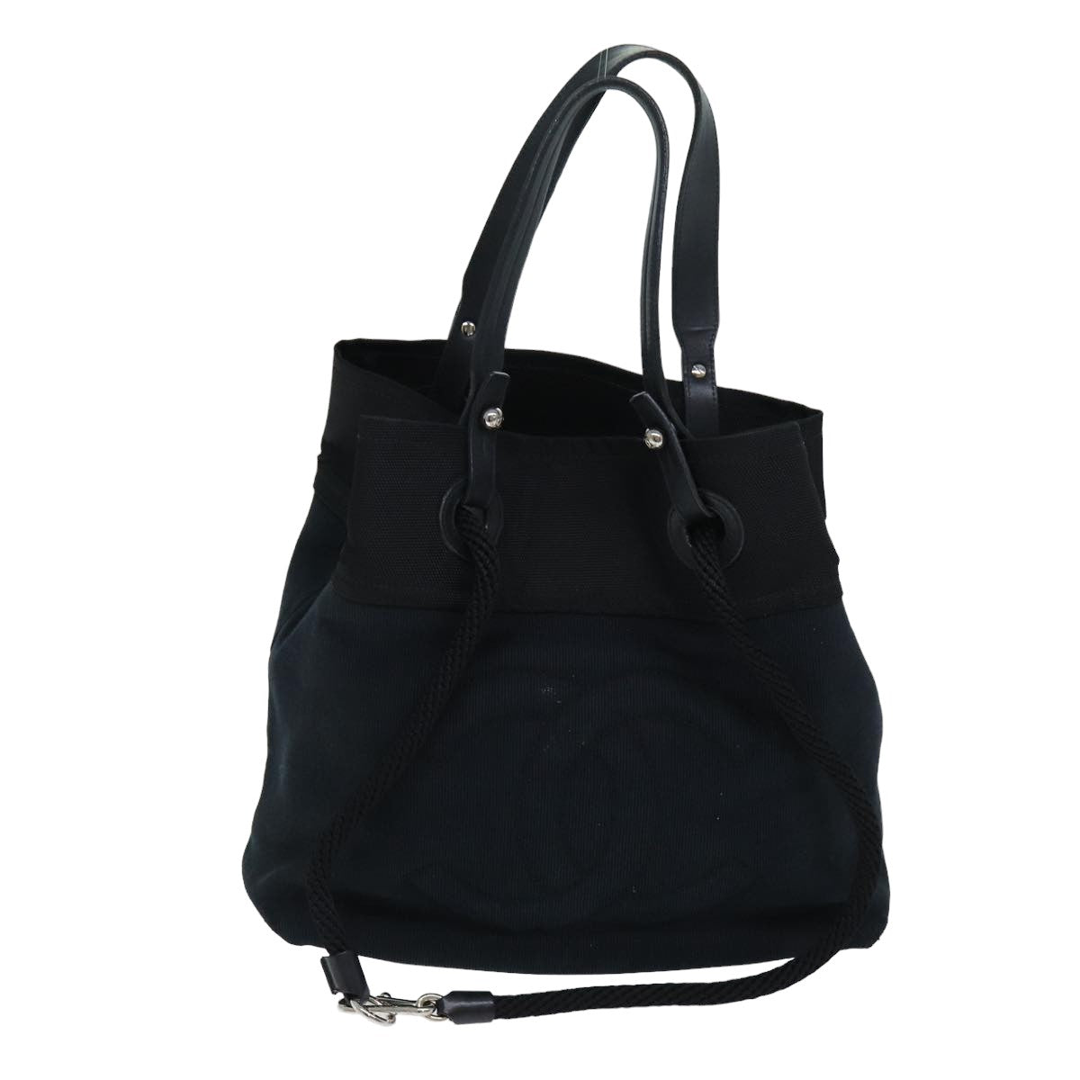 CHANEL Tote Bag Canvas Black CC Auth bs14726