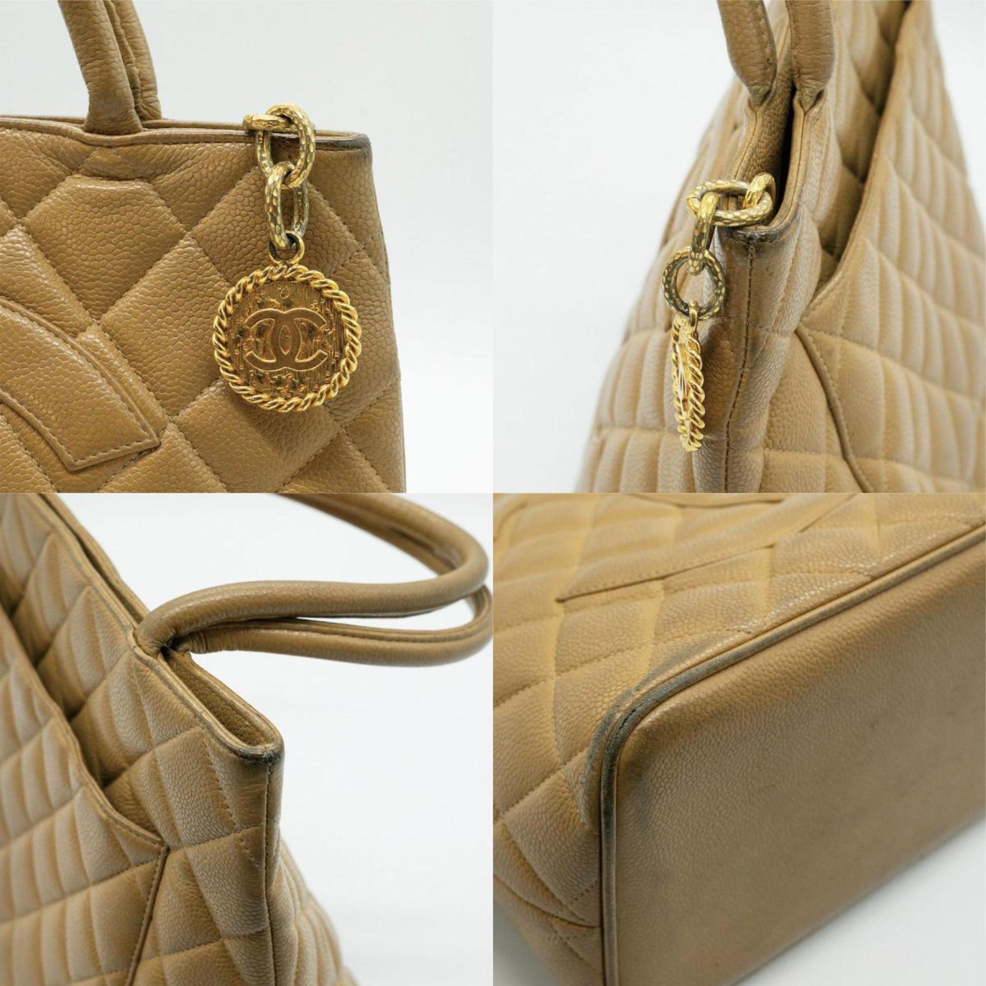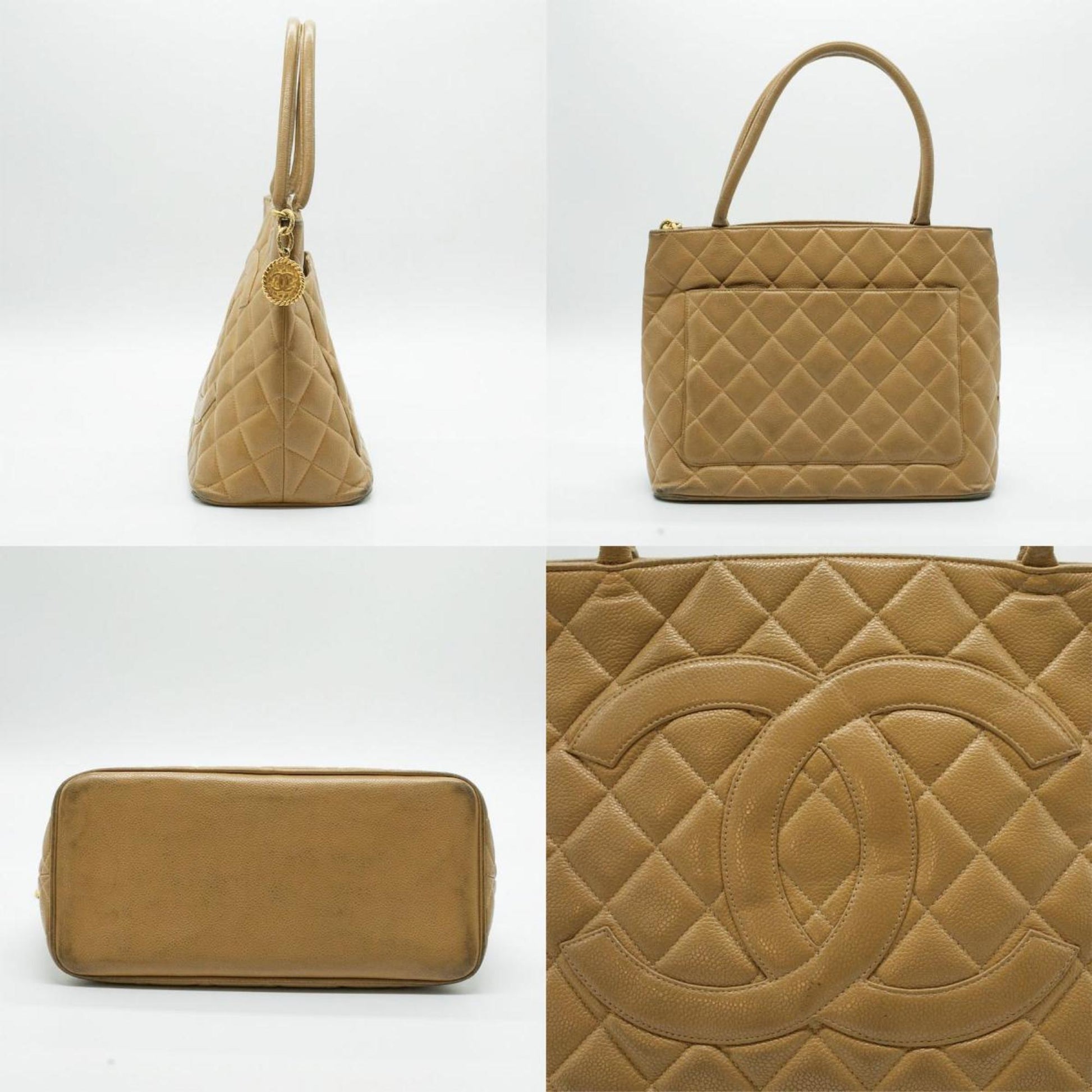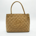 CHANEL Tote Bag Coco Mark Leather Beige Gold Women's A01804 PD32