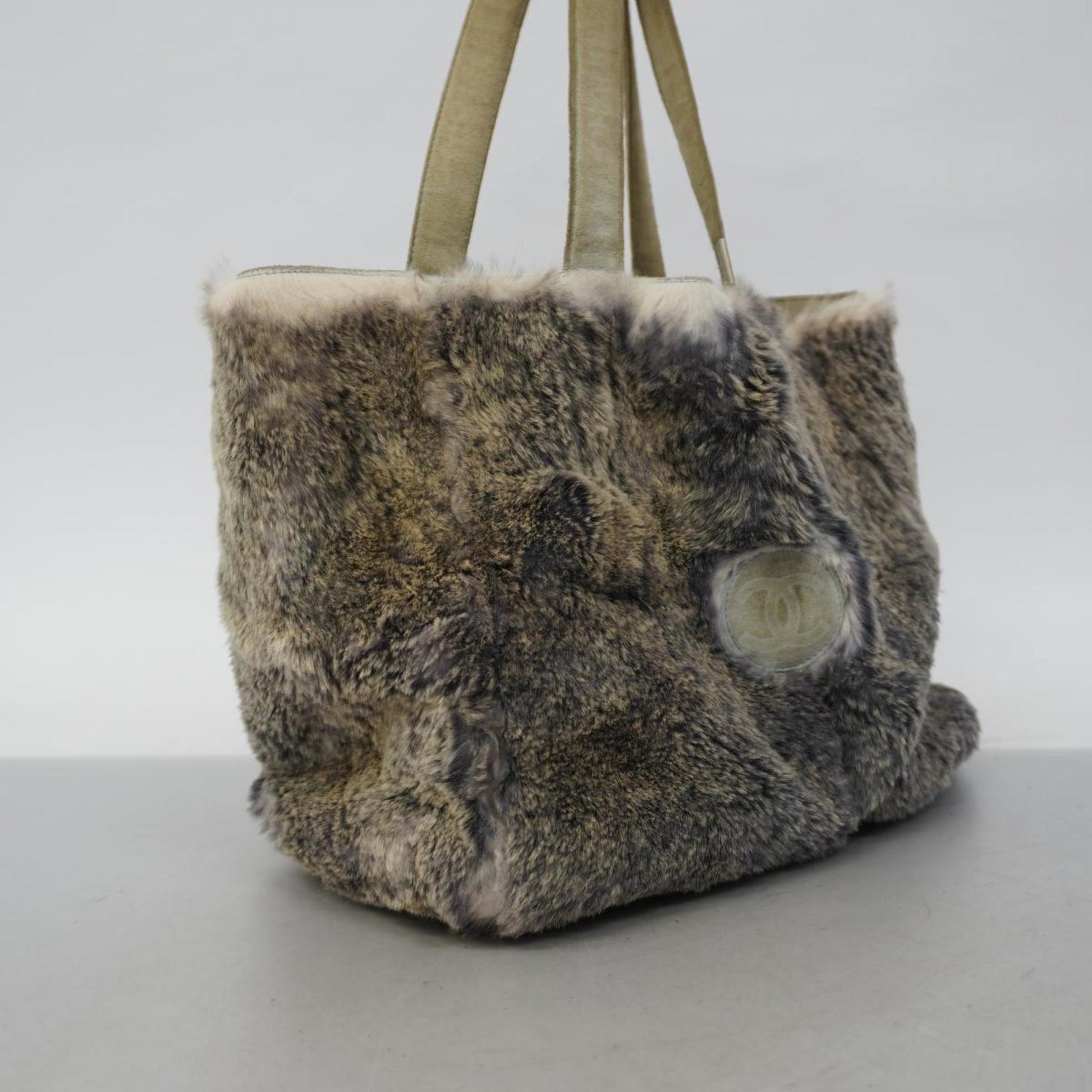 chanel tote bag fur grey ladies