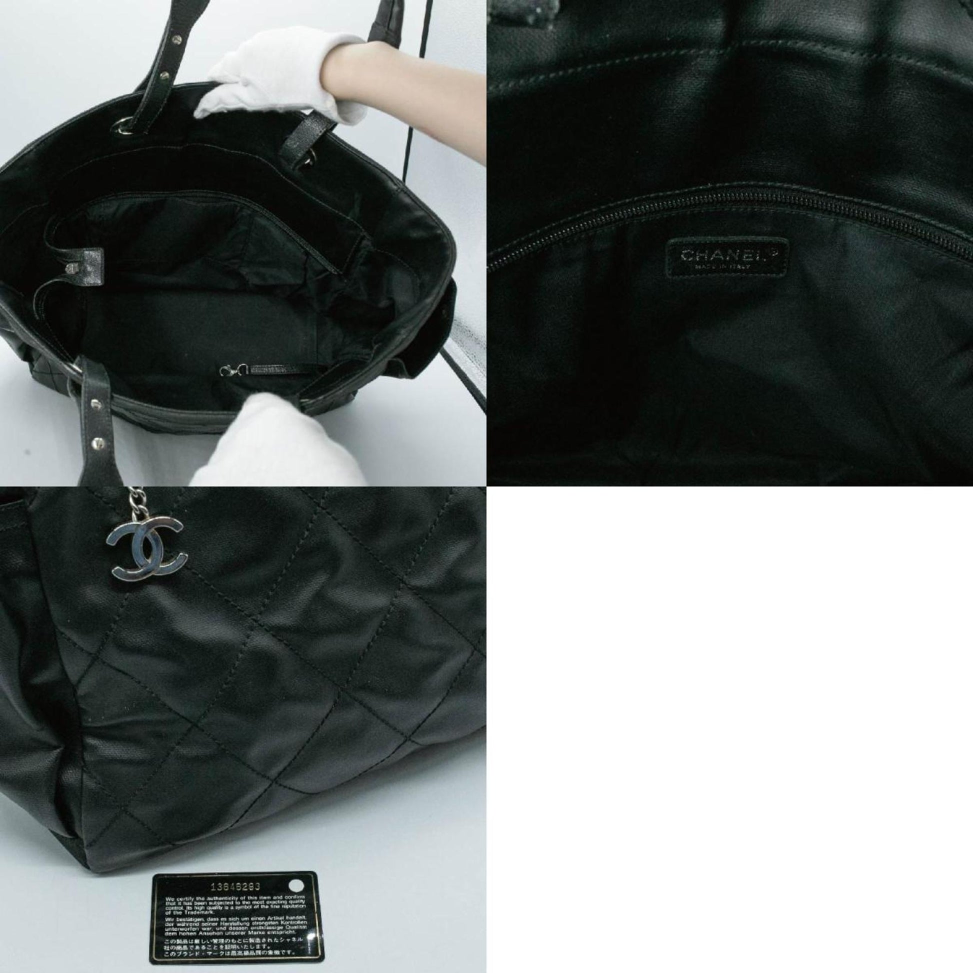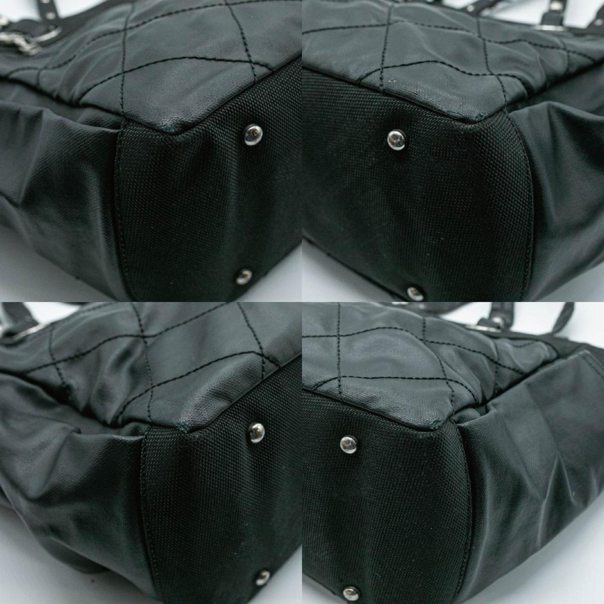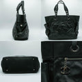 CHANEL Tote Bag Paris Biarritz GM Leather Coated Canvas Black Silver Men's Women's A34210 16th Series PD1