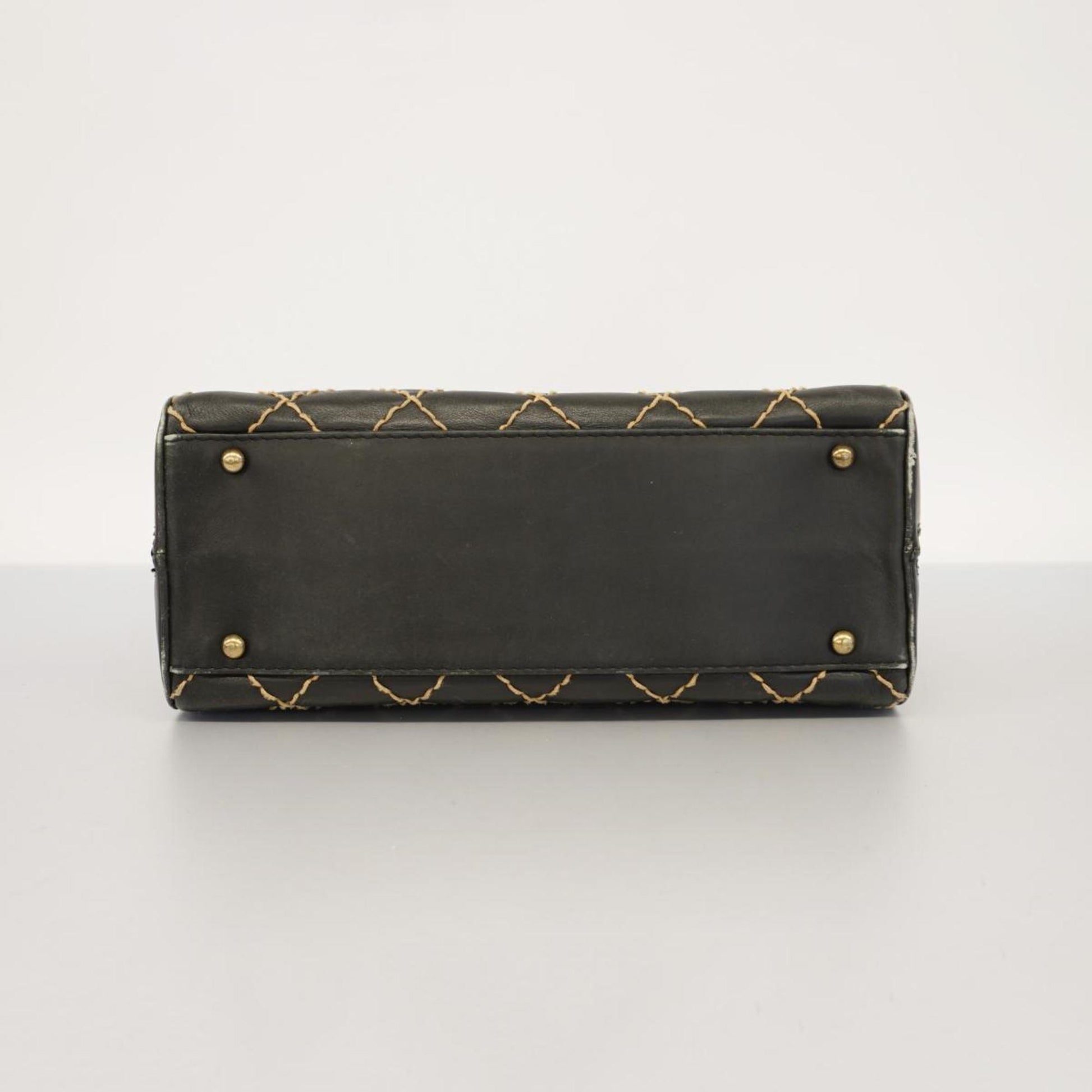 Chanel Tote Bag Wild Stitch Leather Black Women's