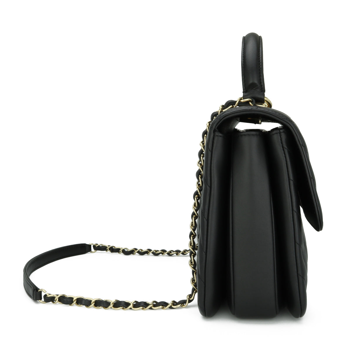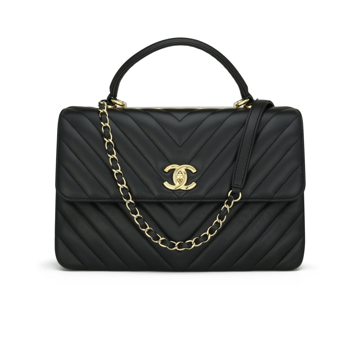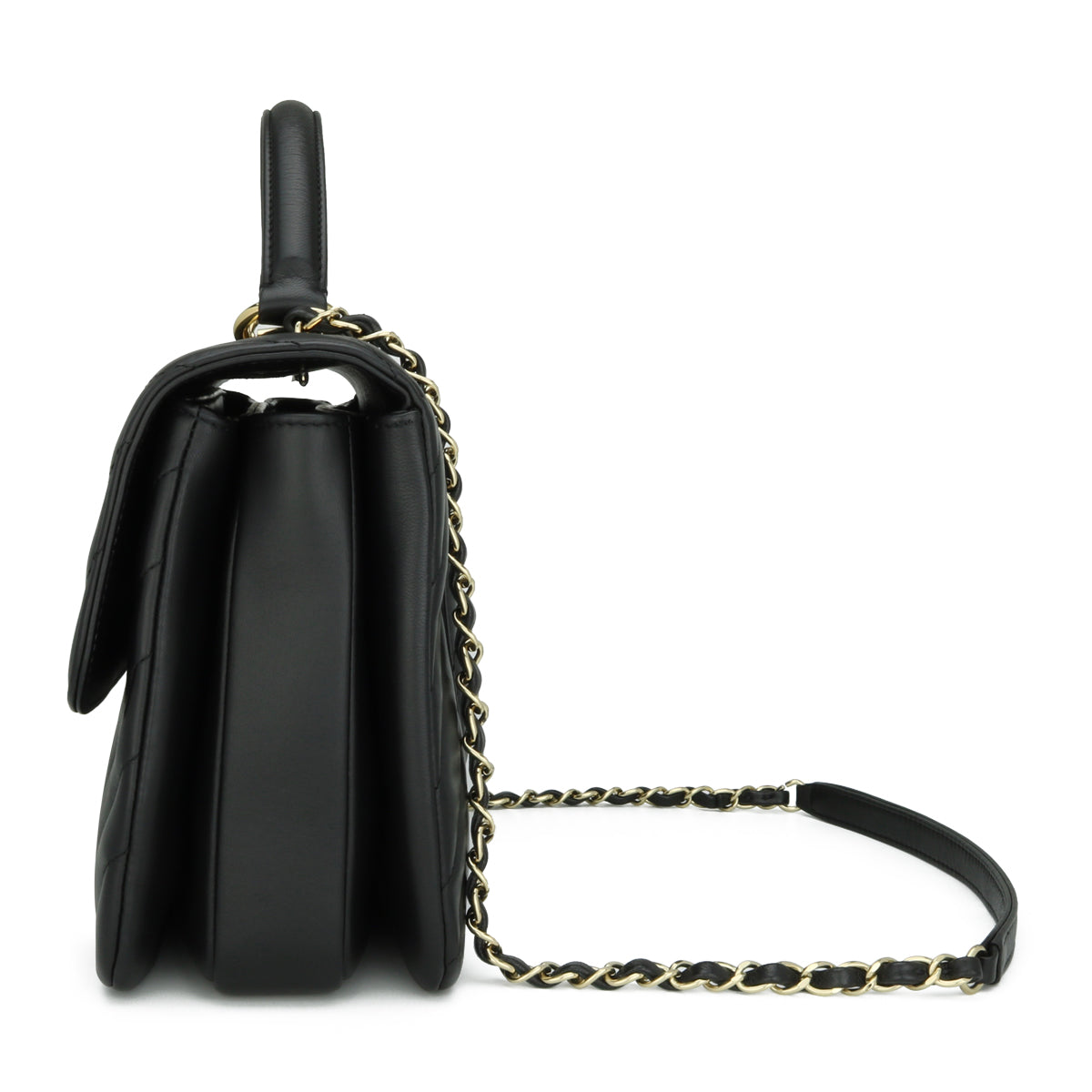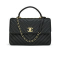 CHANEL Trendy CC Chevron Top Handle Bag Medium Black Lambskin with Light Gold-Tone Hardware 2018 - 18P.