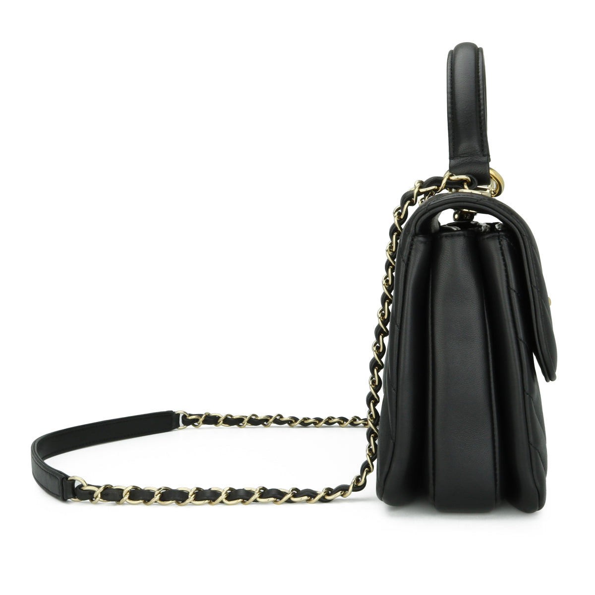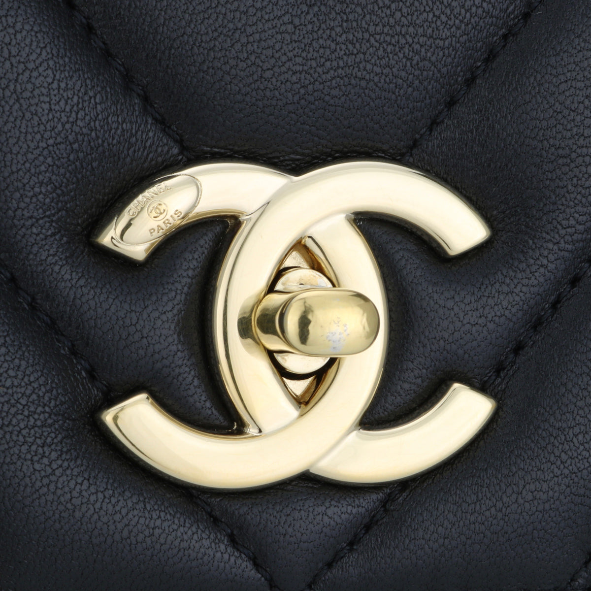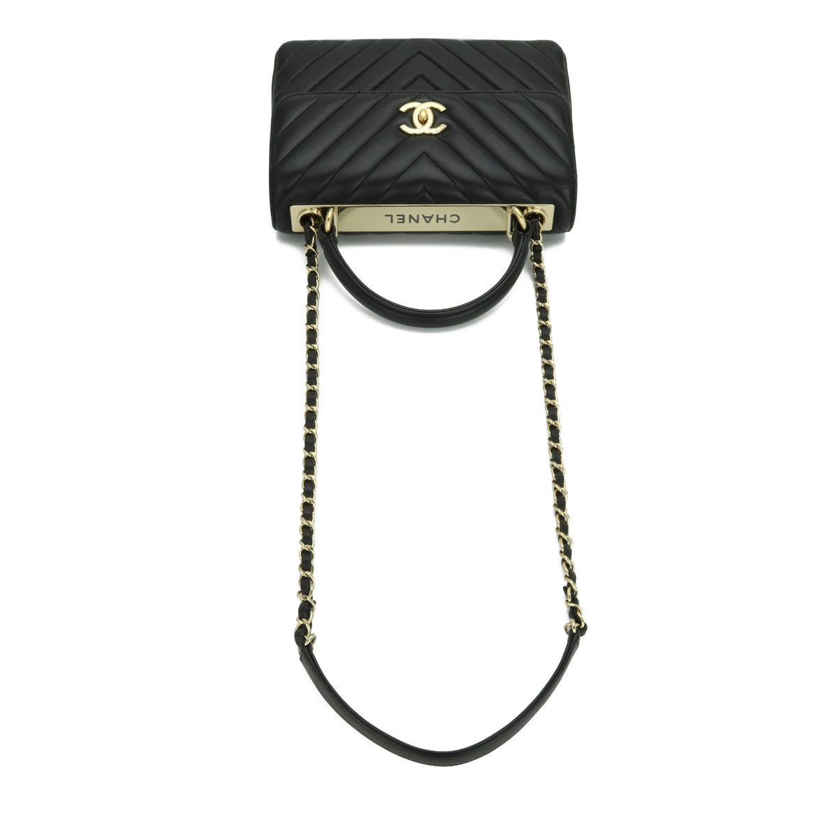CHANEL Trendy CC Top Handle Chevron Bag Small Black Lambskin with Light Gold-Tone Hardware 2019 - 19C.