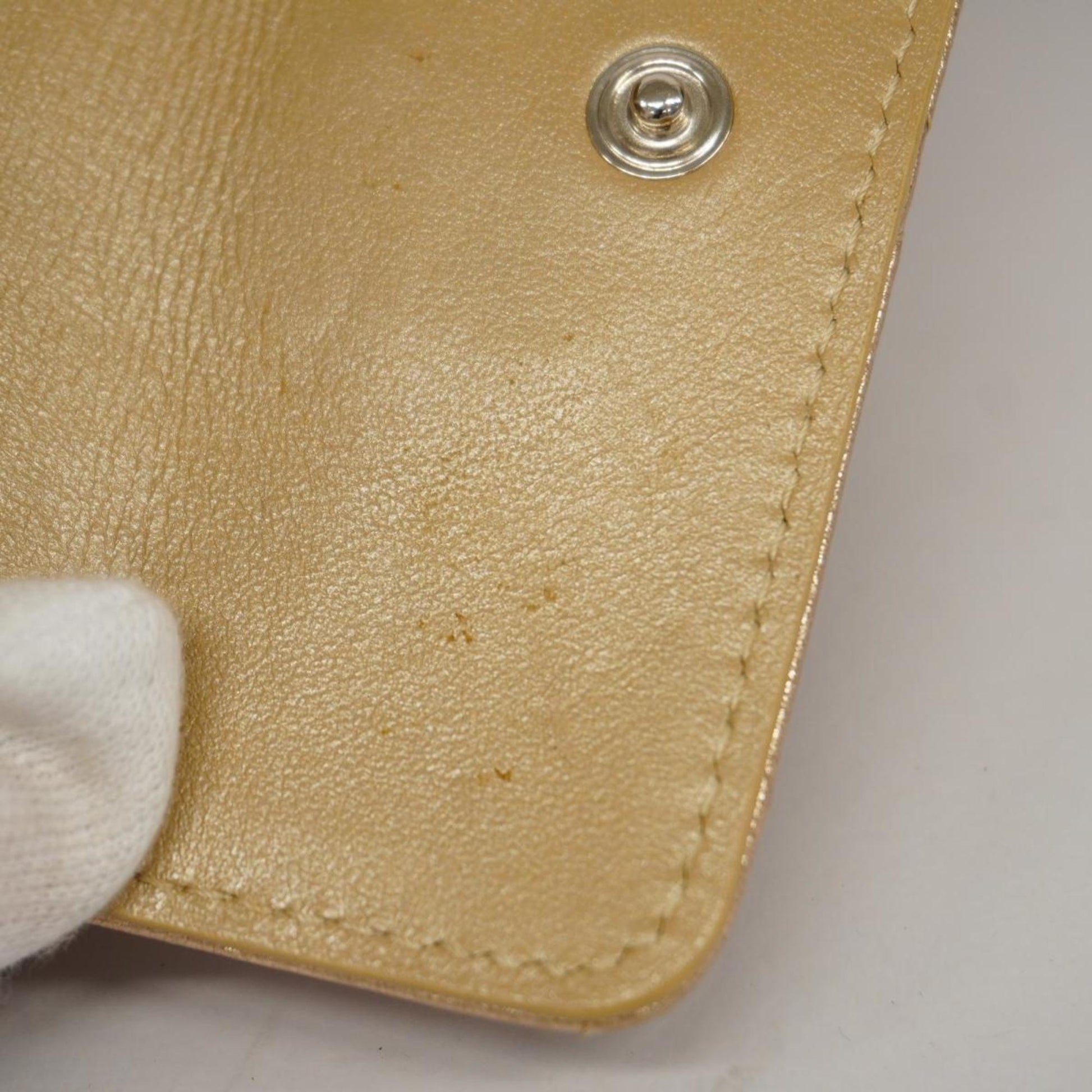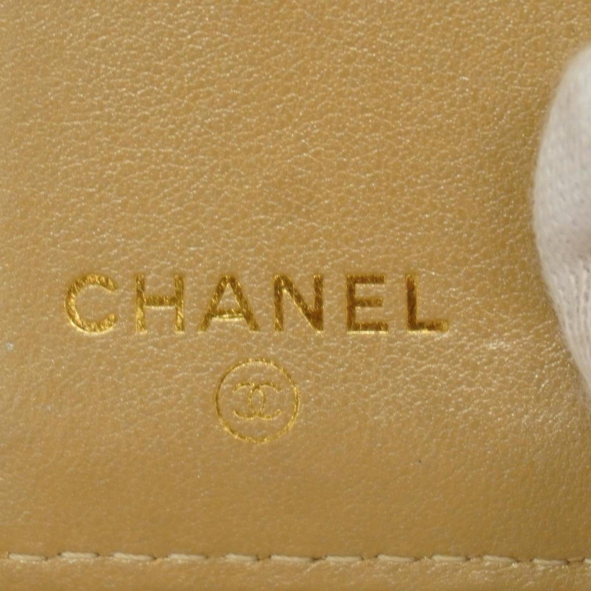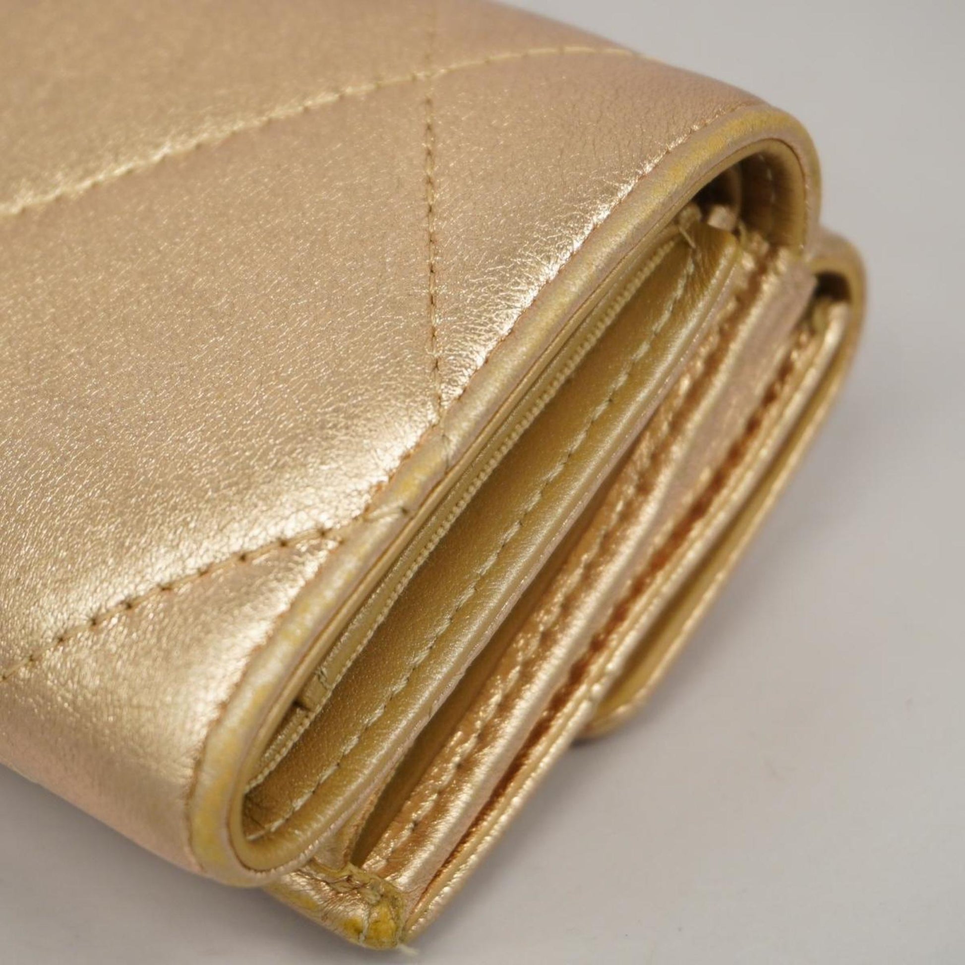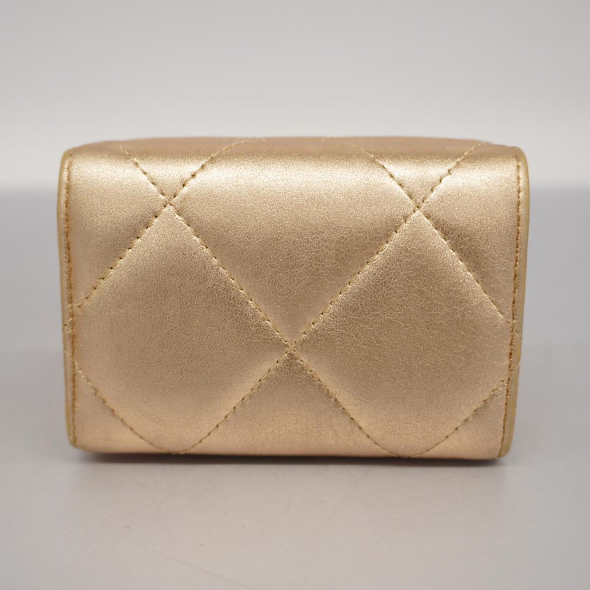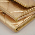 Chanel Tri-fold Wallet Matelasse Lambskin Champagne Gold Women's