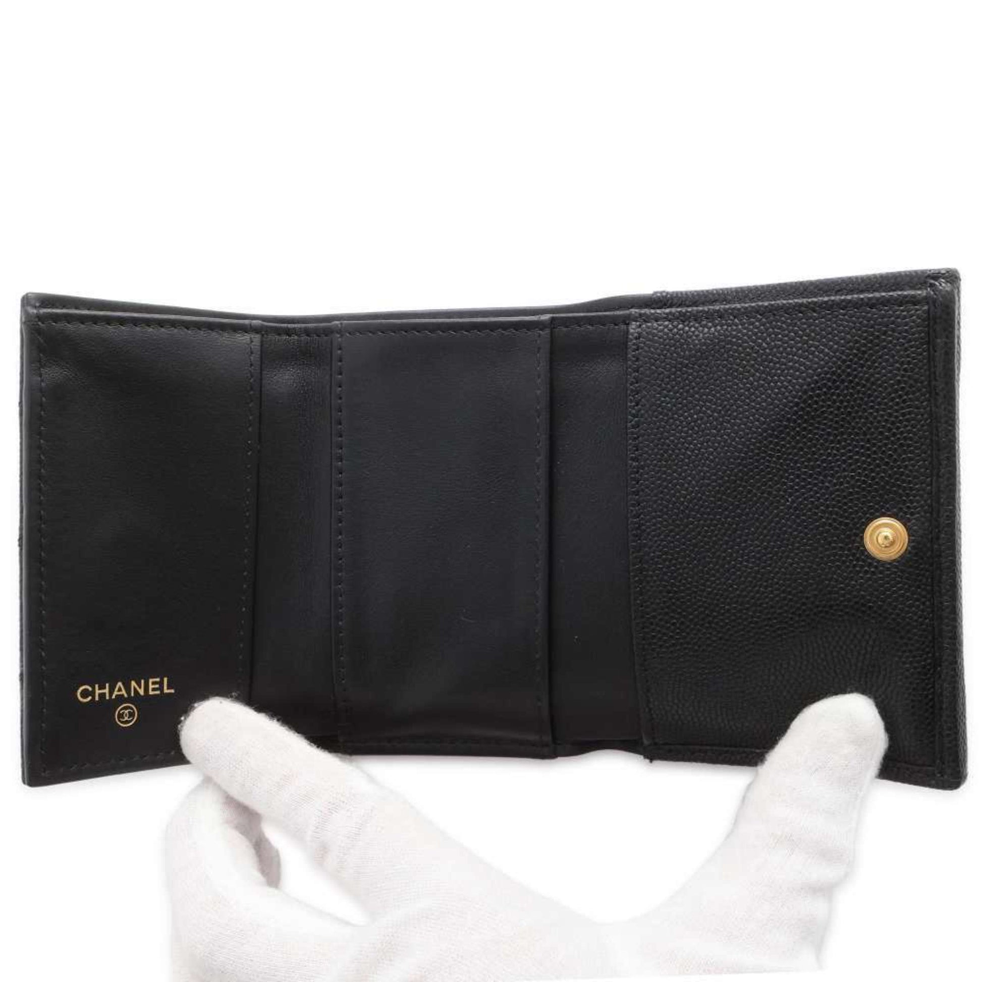 Chanel Tri-fold Wallet Matelasse Small Flap Caviar Skin AP3081 Black