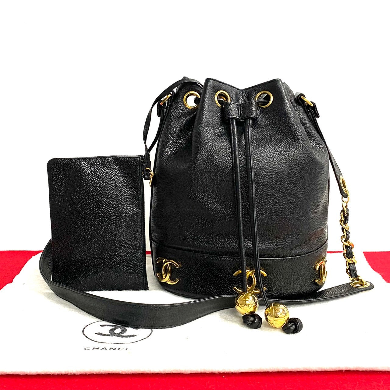 Chanel Triple CC Caviar Bucket Bag Leather Crossbody Bag in Excellent condition