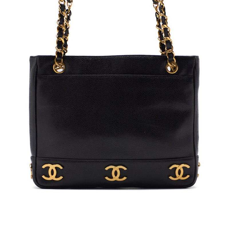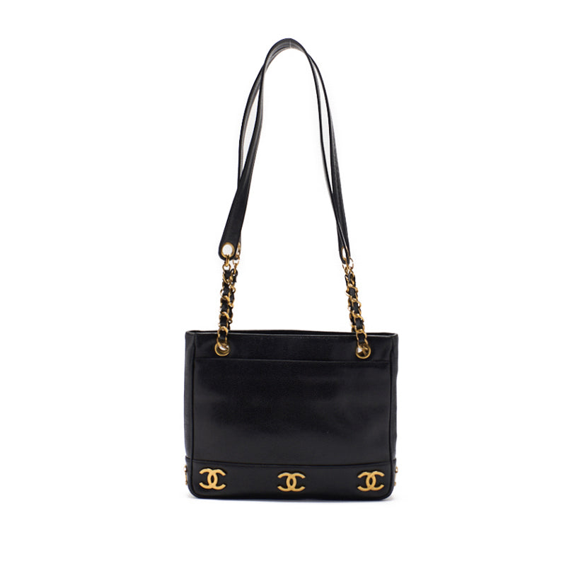 CHANEL Triple Coco Double Chain Shoulder Ball Charm Caviar S Black Shoulder Bag Mini Shoulder Bag Shoulder Bag Hybrid Ship