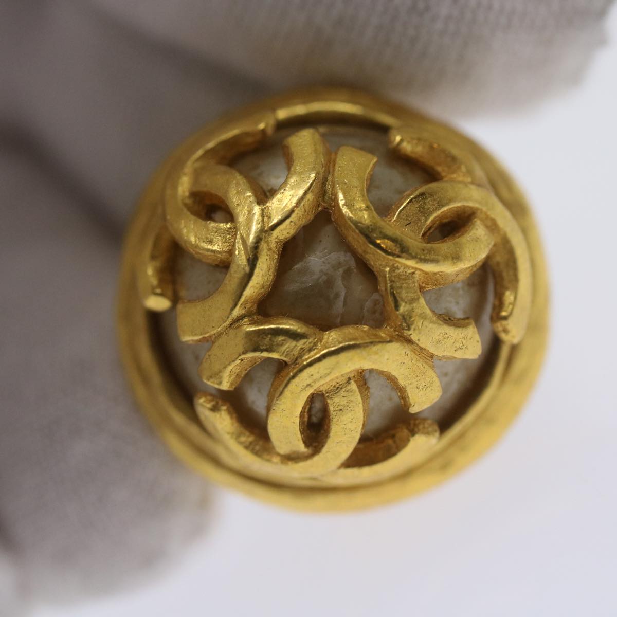 CHANEL Triple Coco Earring Gold CC Auth ar11464B