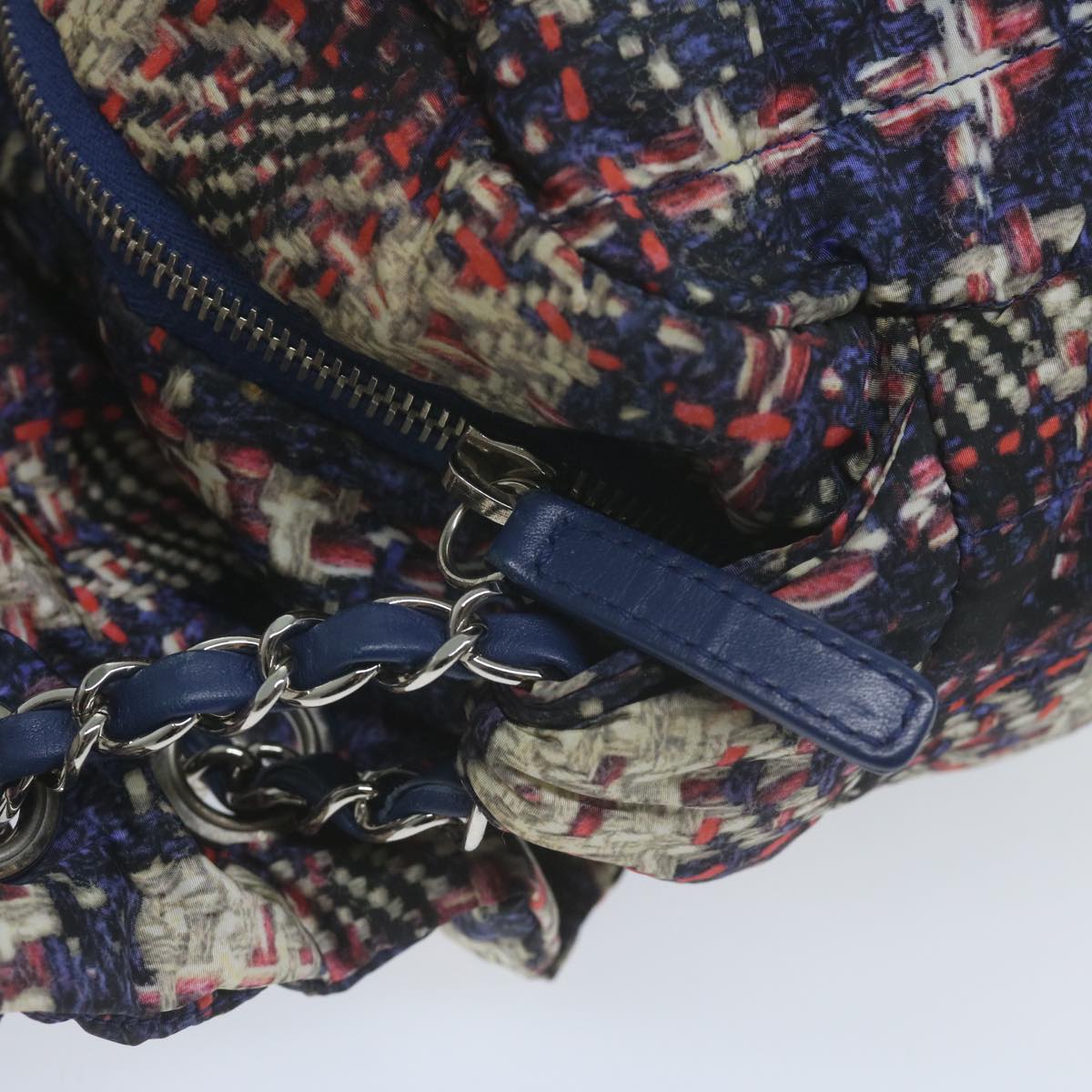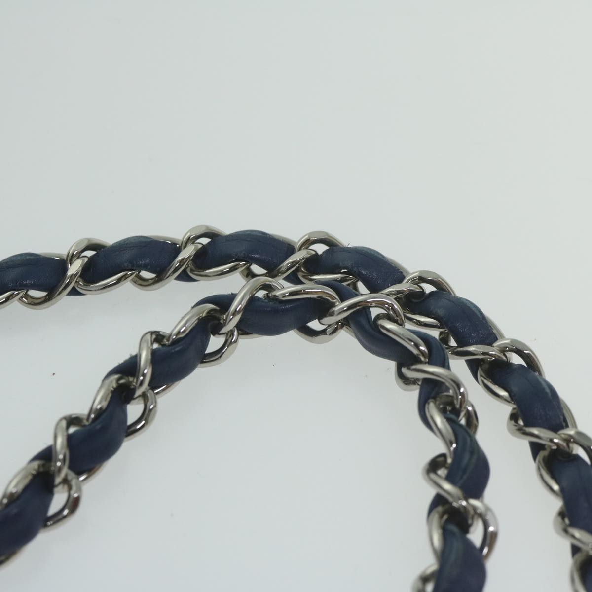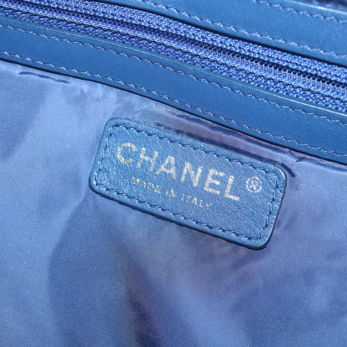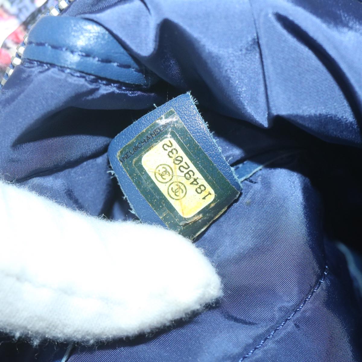 CHANEL Turn Lock Chain Shoulder Bag Nylon Navy White CC Auth 65724A