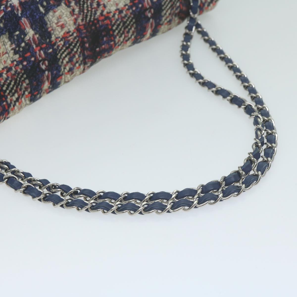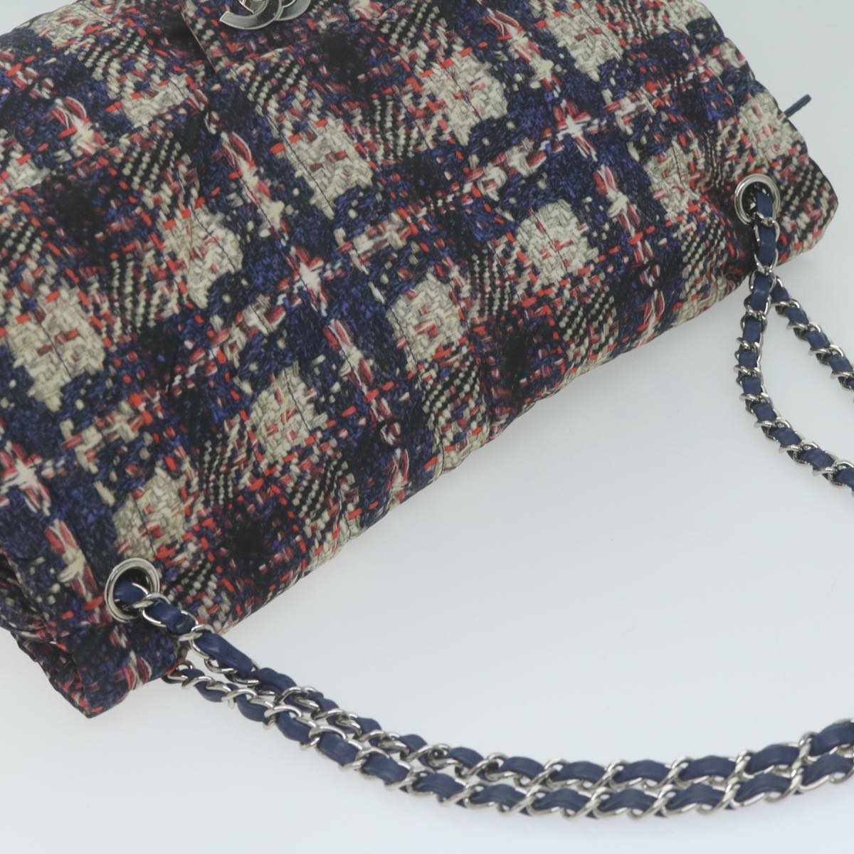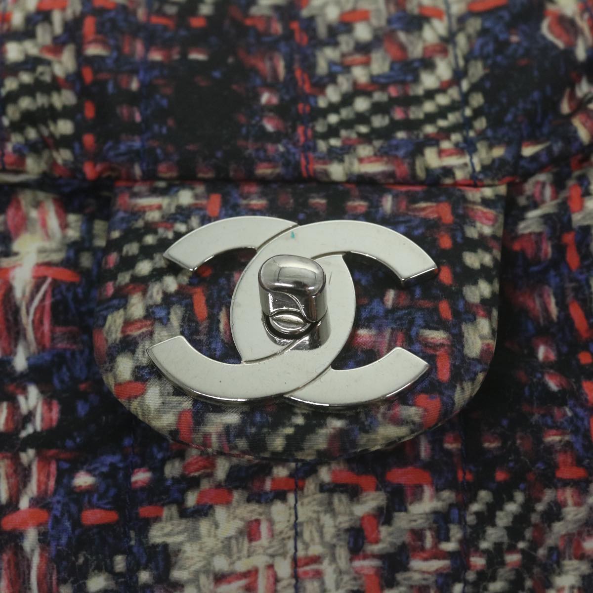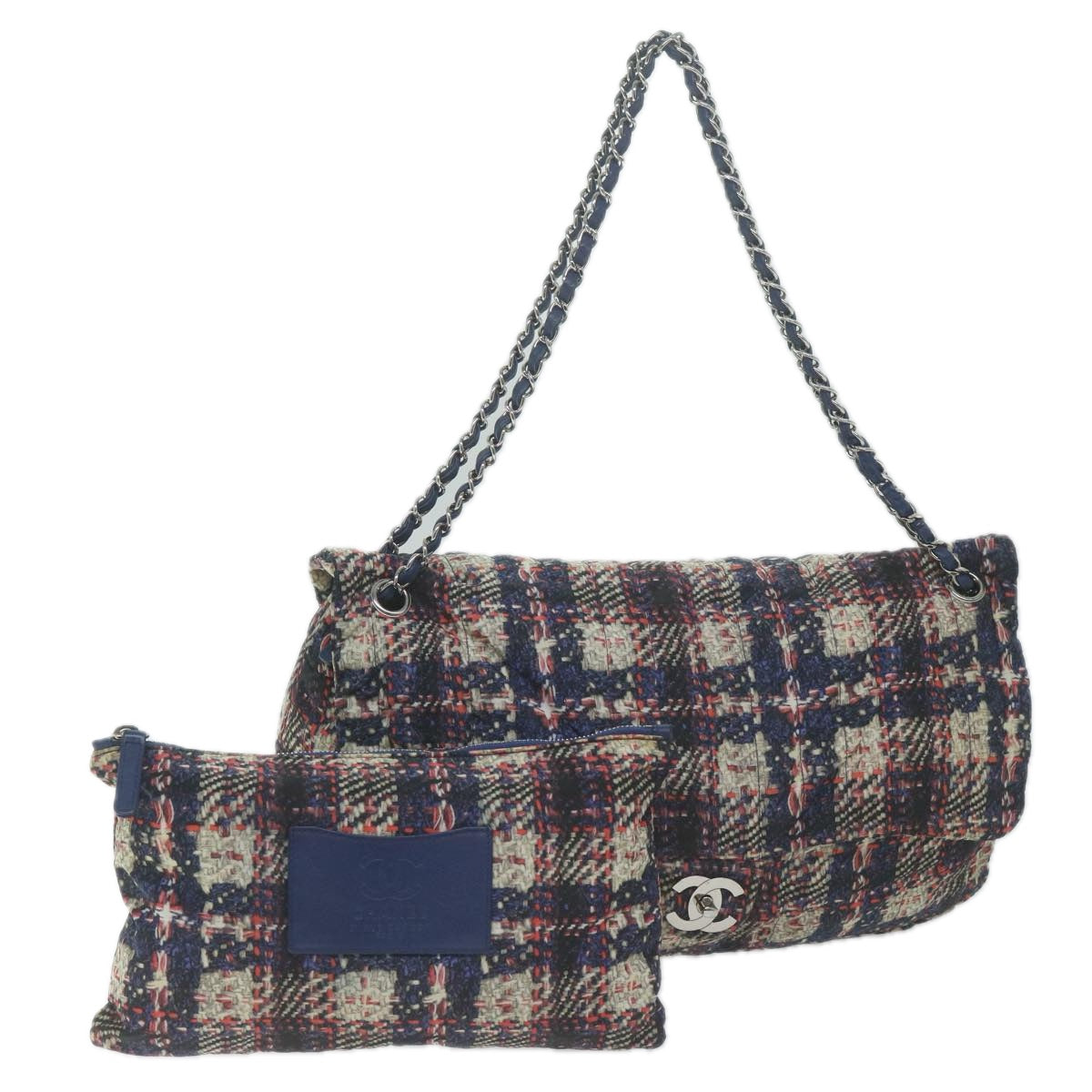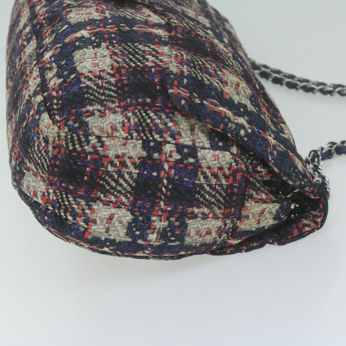 CHANEL Turn Lock Chain Shoulder Bag Nylon Navy White CC Auth 65724A