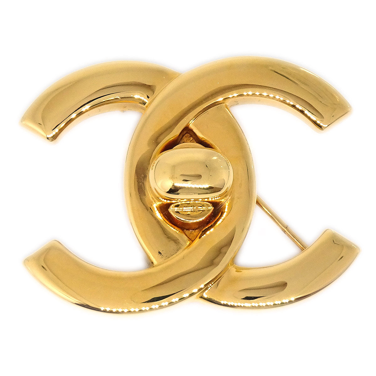 CHANEL Turnlock Brooch Pin Corsage Gold 96P 75076