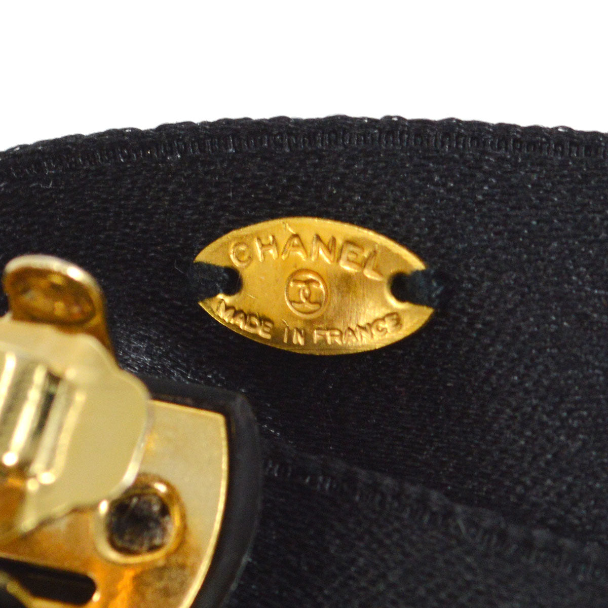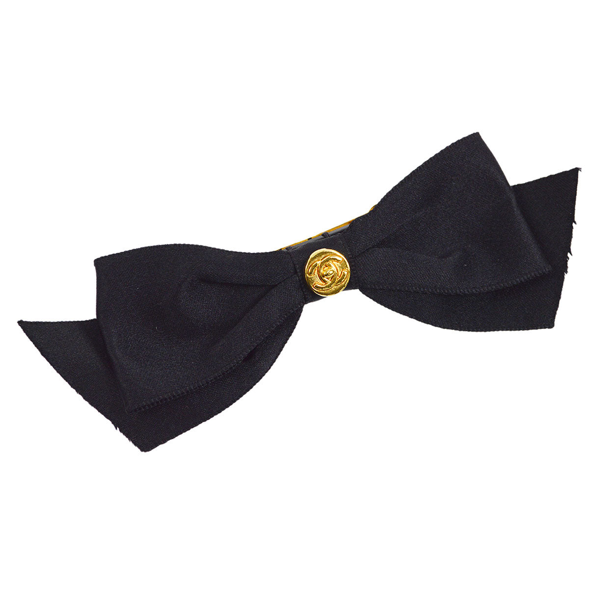 CHANEL Turnlock CC Bow Barrette Black Satin 61 47878