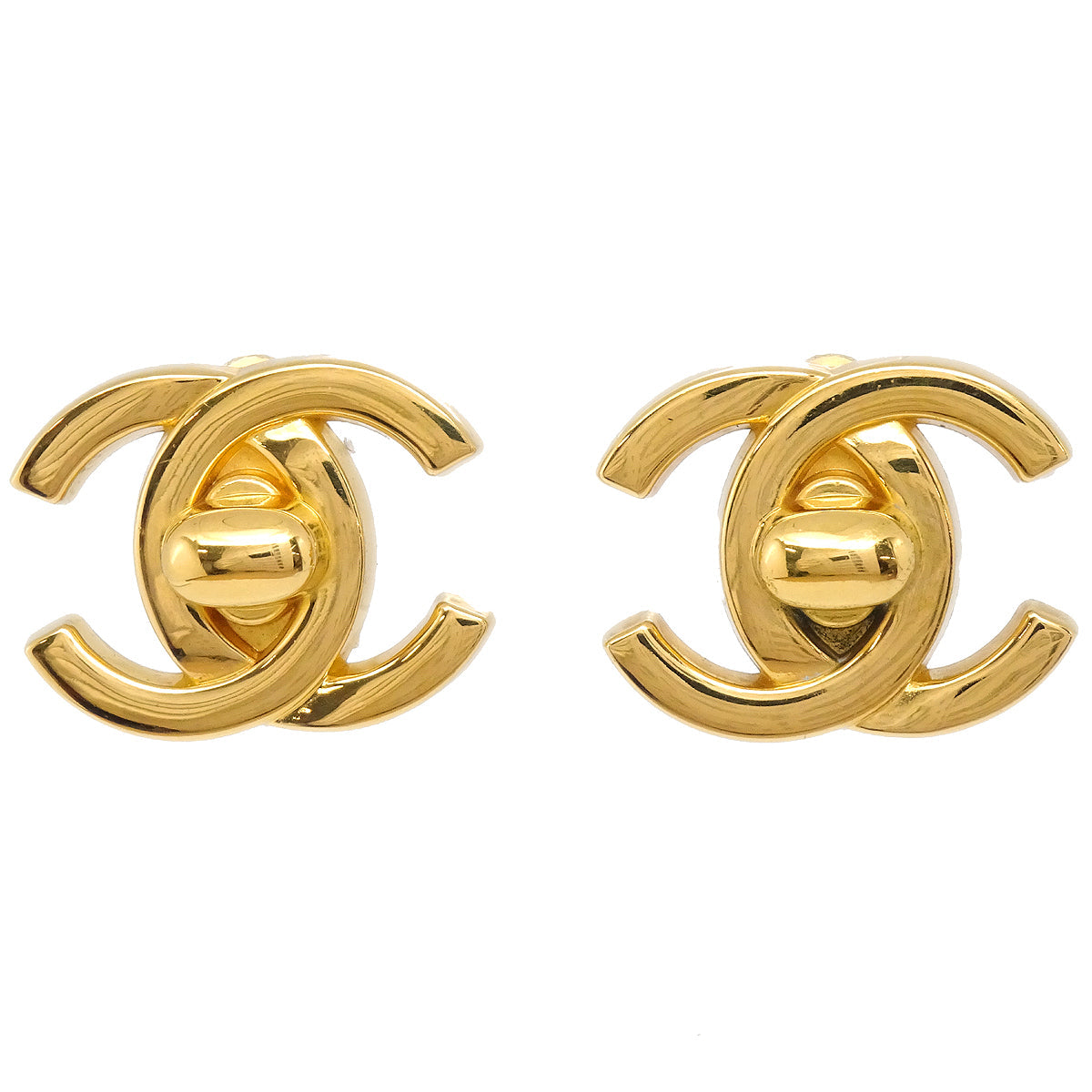 Chanel Turnlock Earrings Clip-On Gold 96A