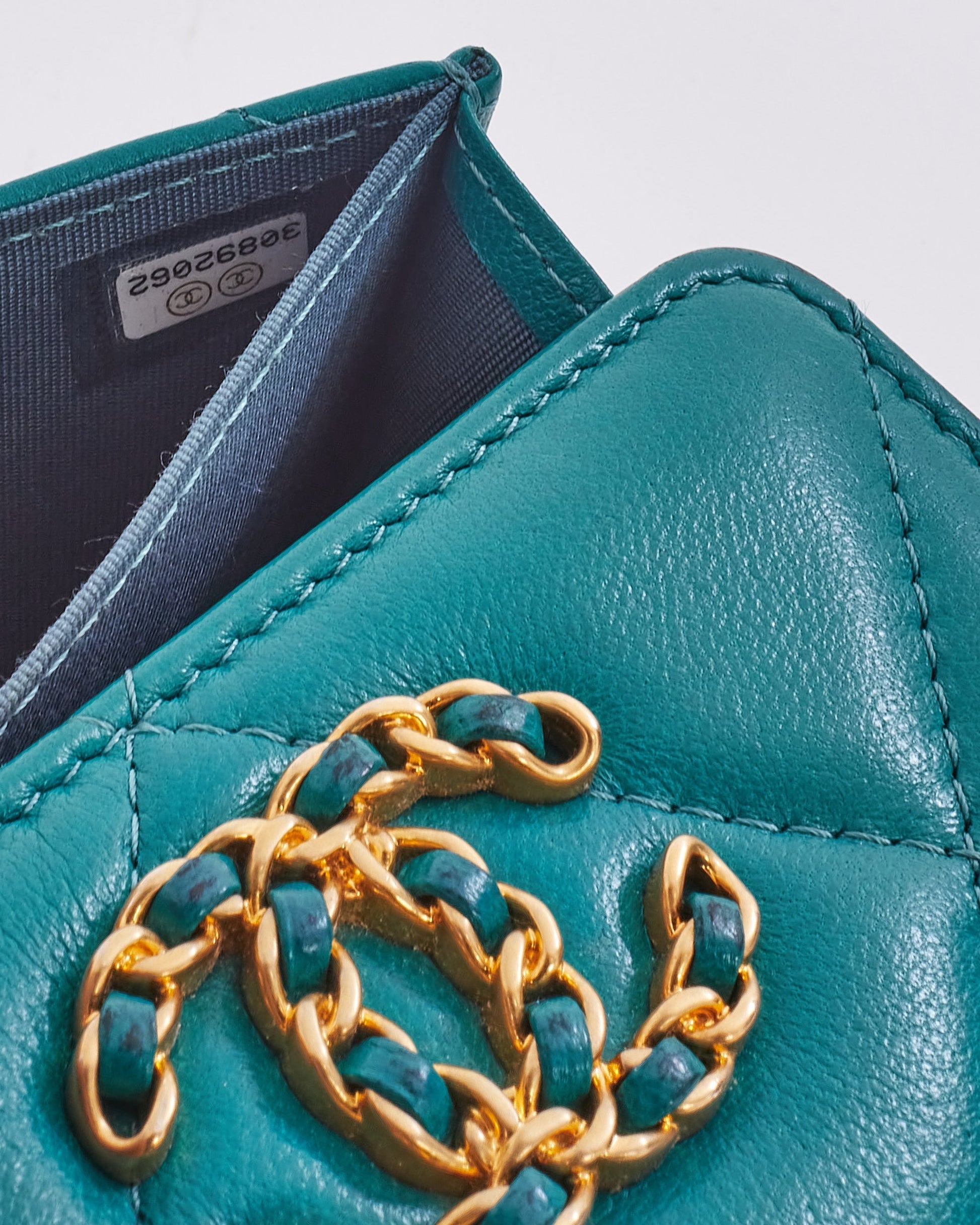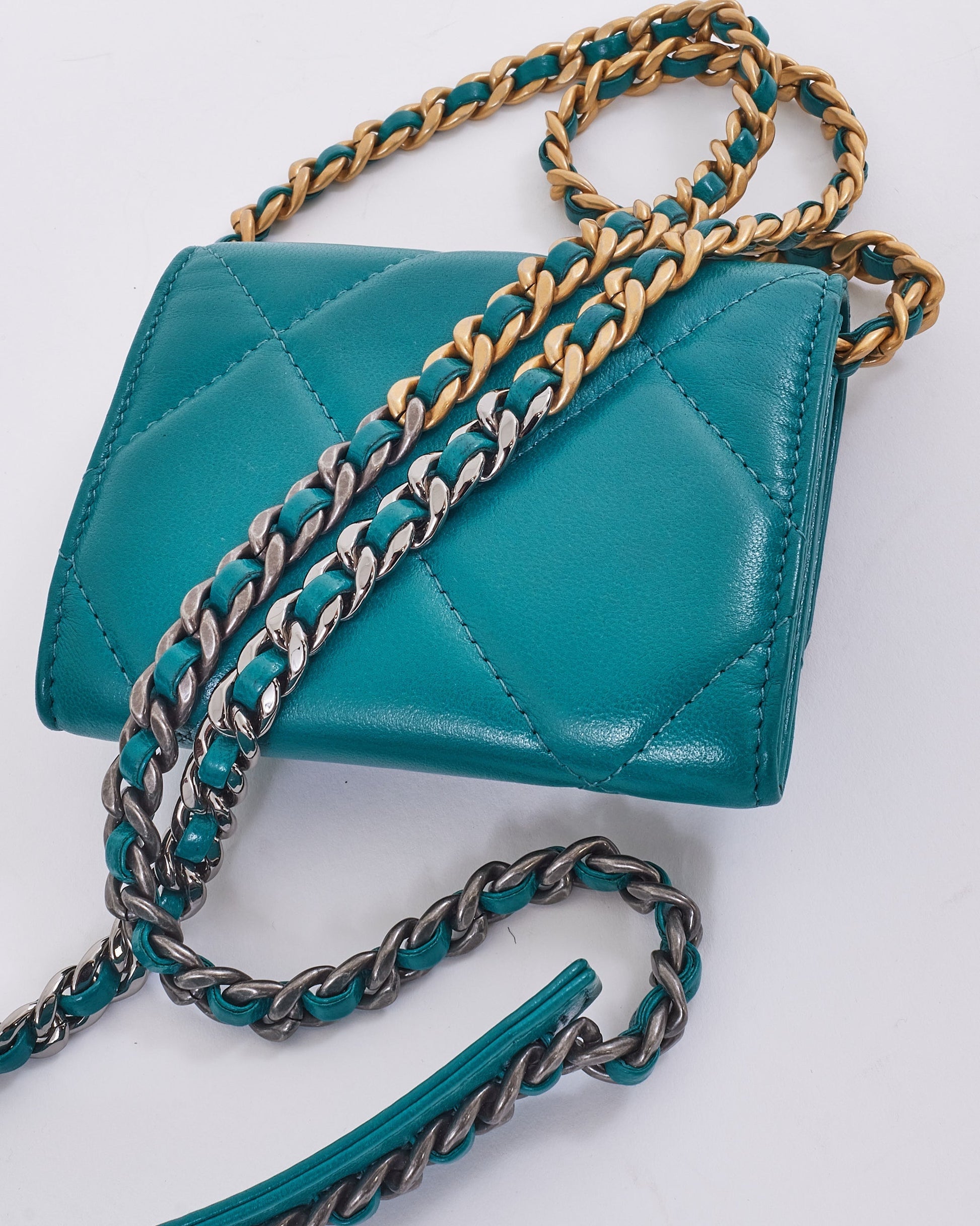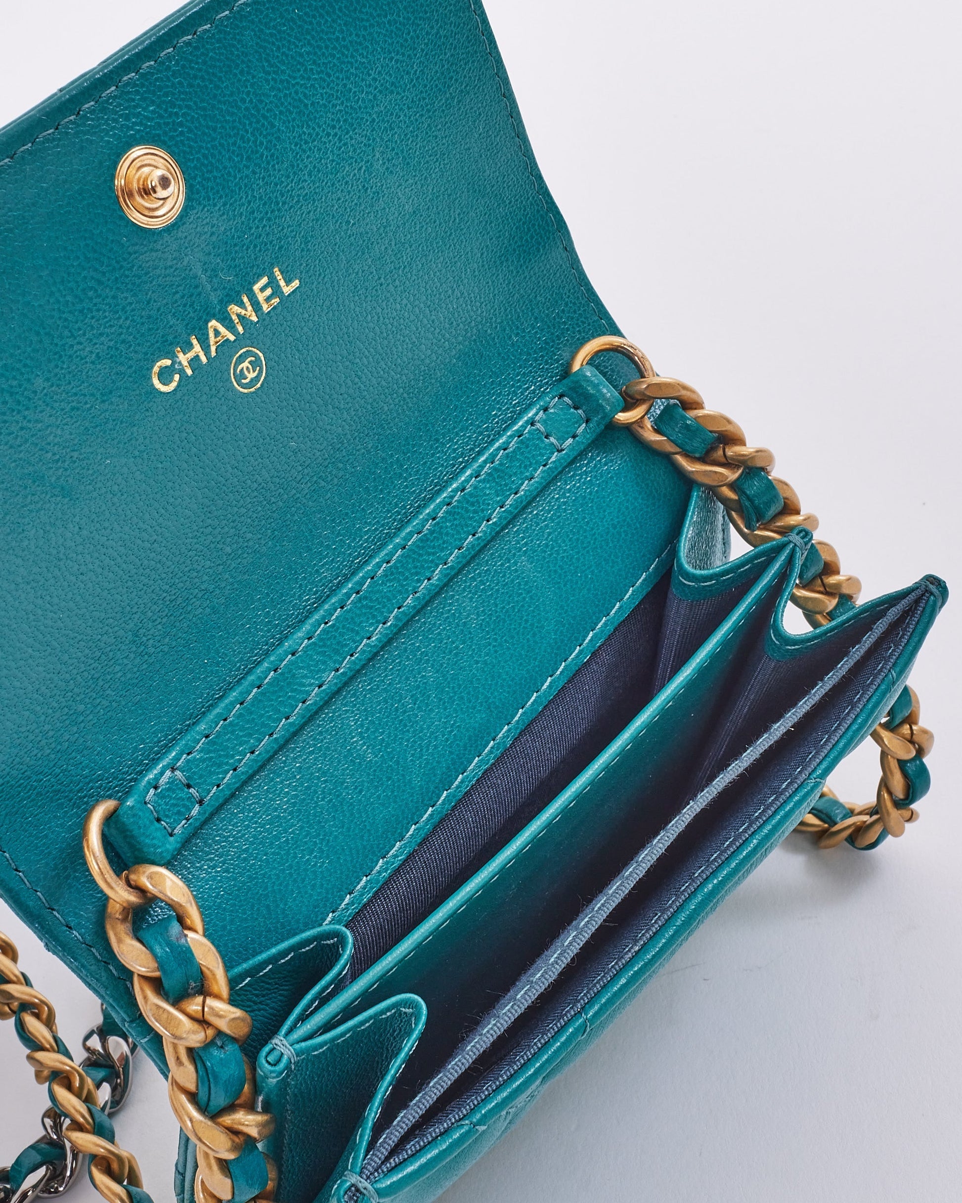 Chanel Turquoise Green 19 Coin Pouch on Chain