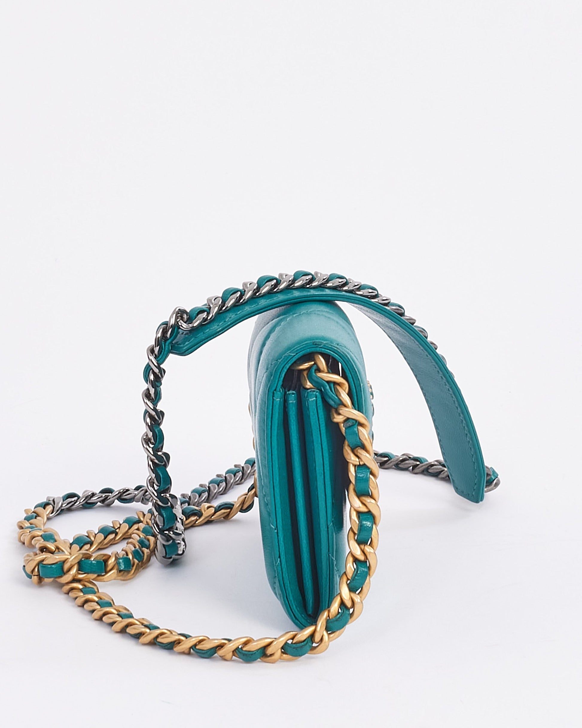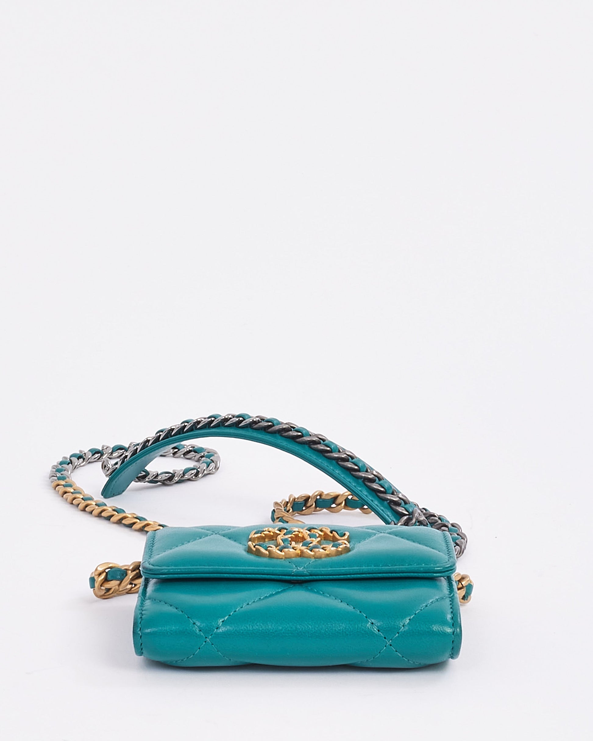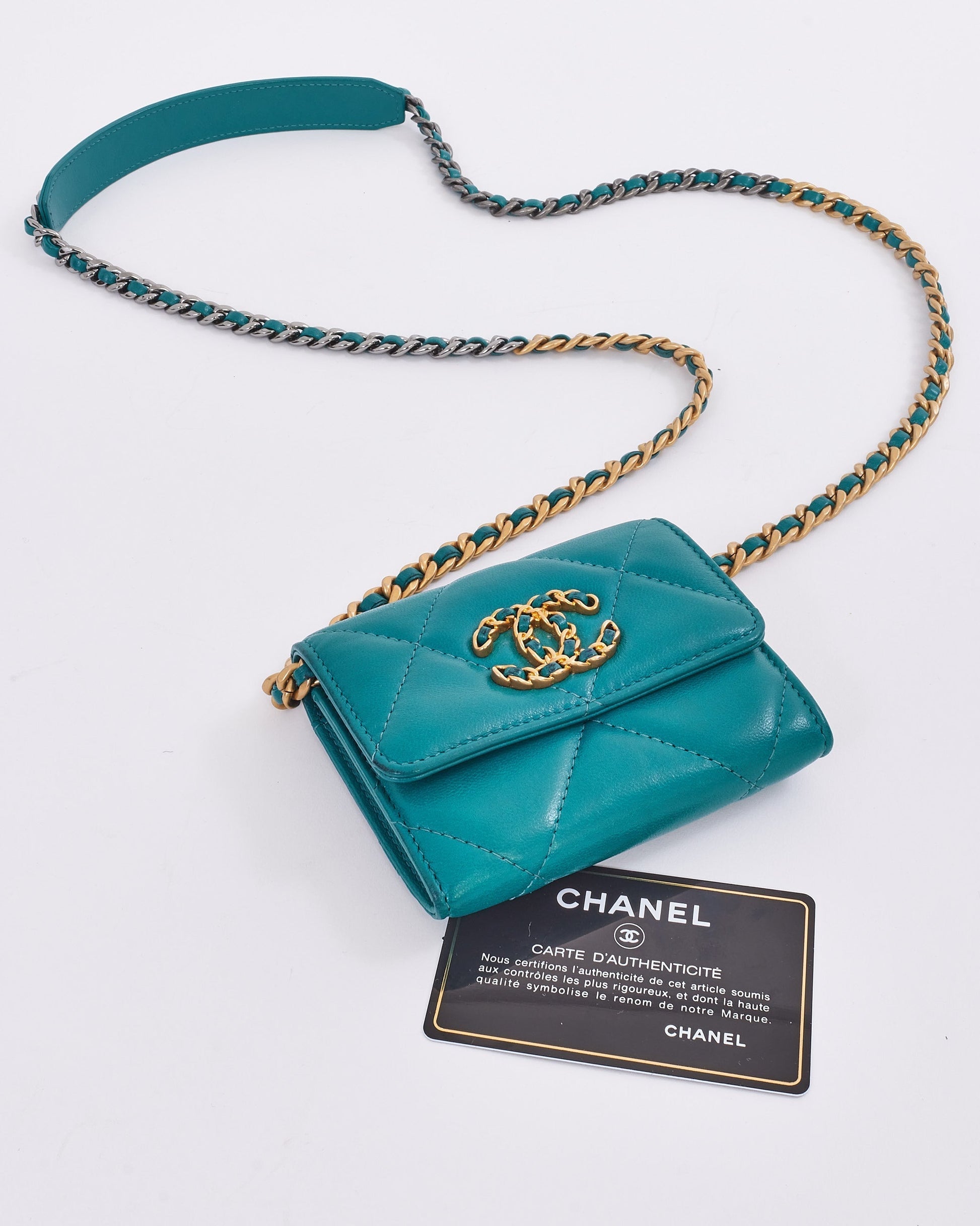 Chanel Turquoise Green 19 Coin Pouch on Chain