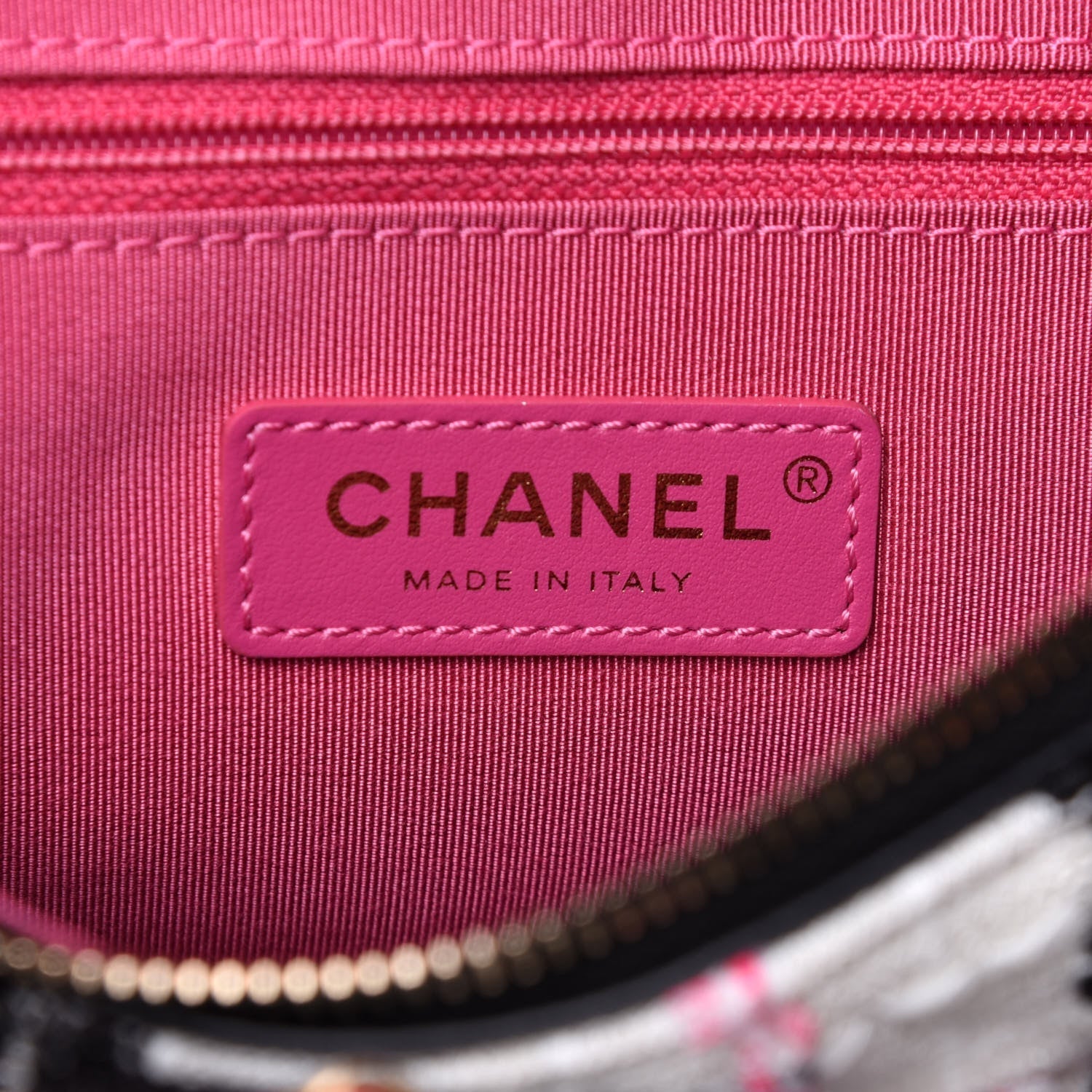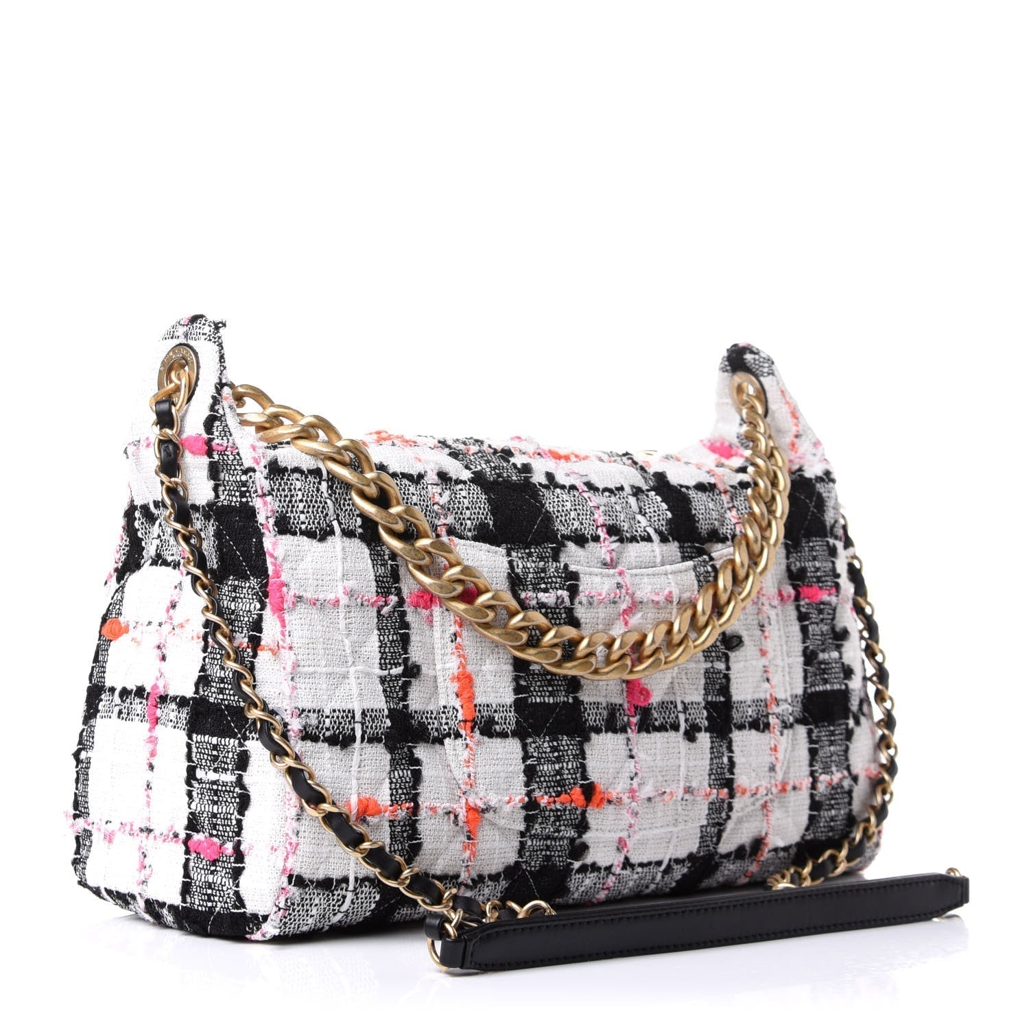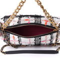 Tweed Chain 20s Signature Hobo in white, black, pink and orange with Chanel cursive lettering.